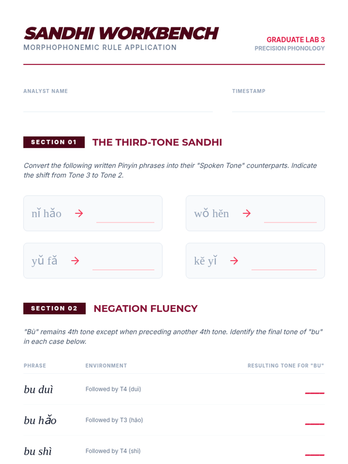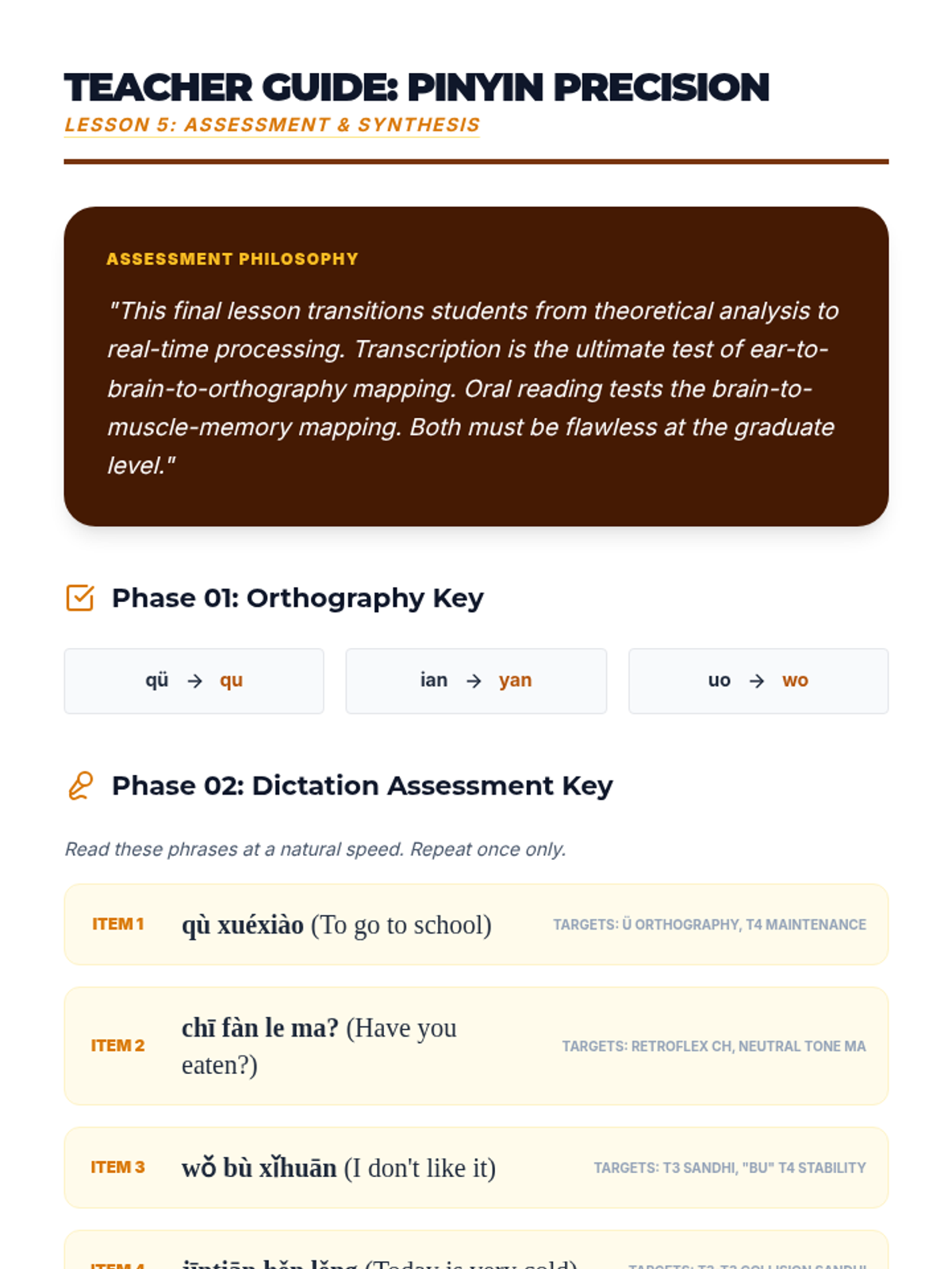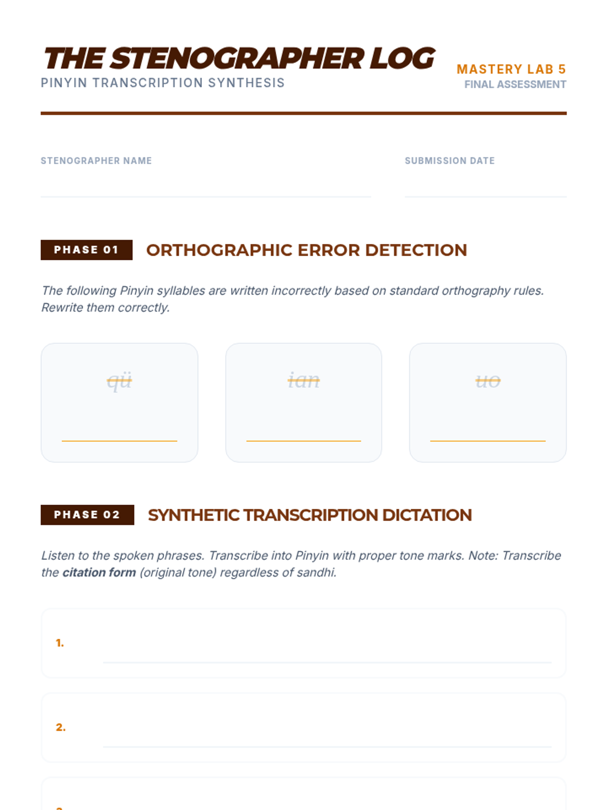 A graduate-level intensive on Mandarin Chinese phonology, focusing on the physiological production of initials and finals, the mastery of the four lexical tones, and the application of complex tone sandhi rules. Students will transition from acoustic discrimination to high-accuracy Pinyin transcription and reading.