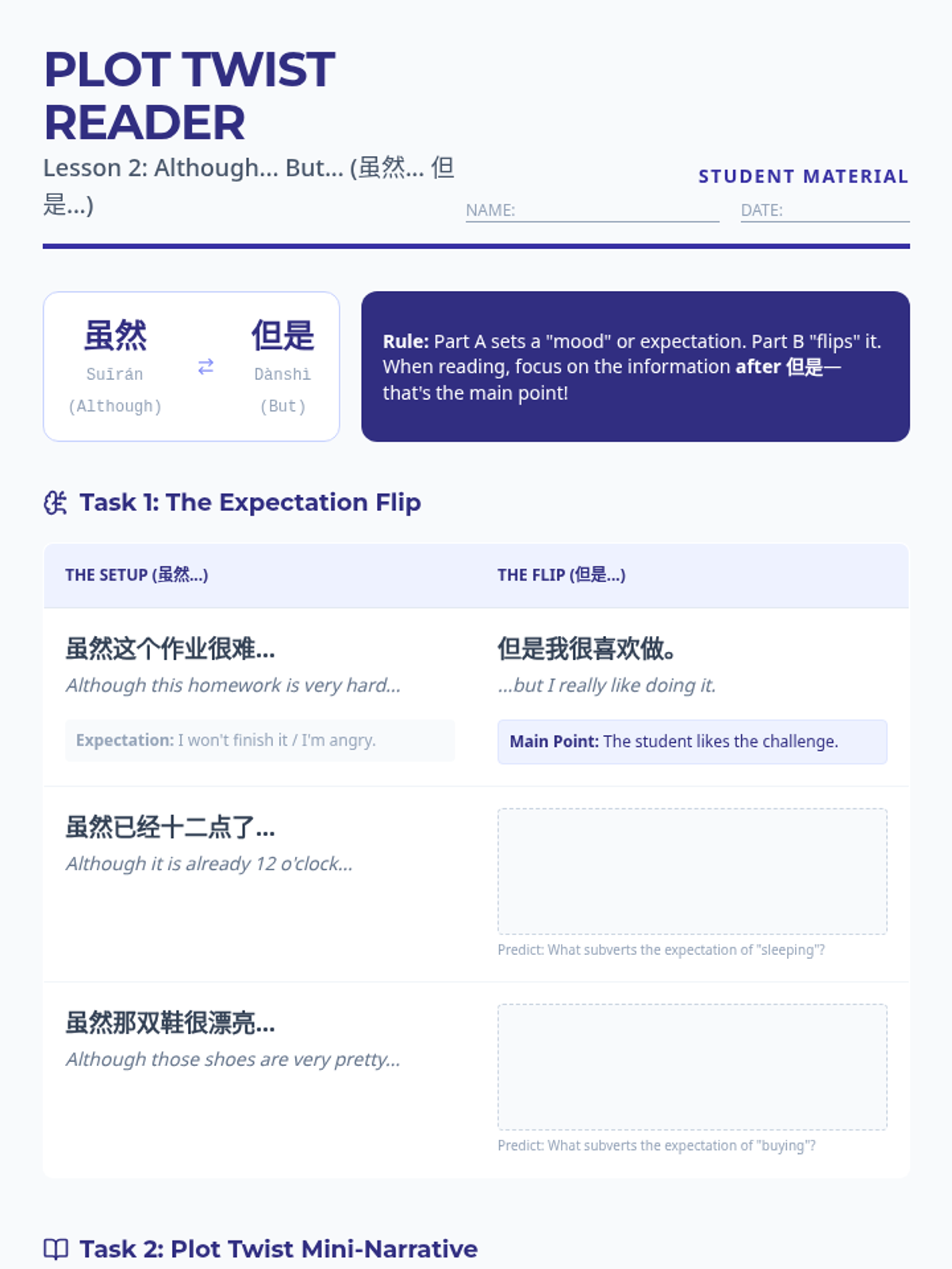 This intermediate Mandarin Chinese sequence focuses on identifying and analyzing complex sentence structures (sequential, concessive, causal, conditional, and simultaneous) to improve reading fluency and logical comprehension in 8th-grade students.