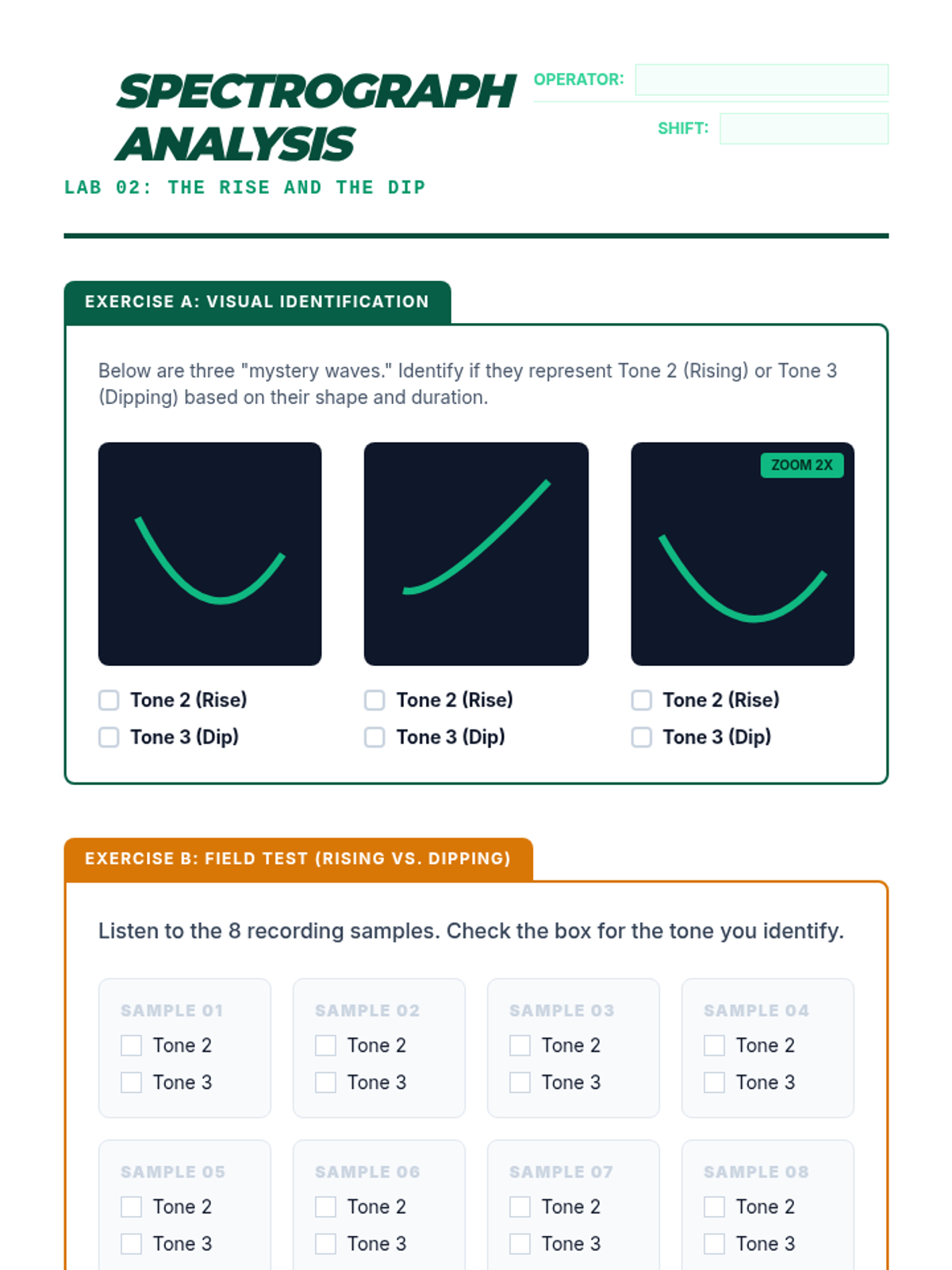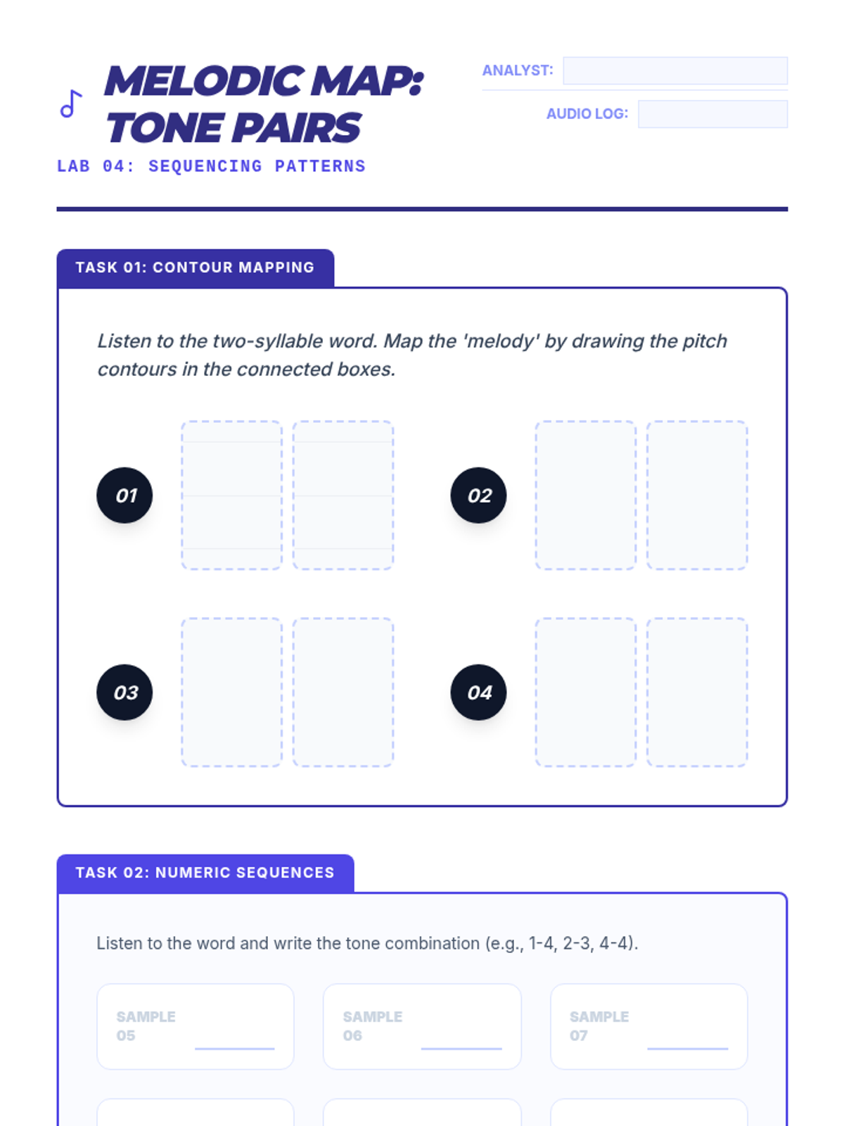 A 5-lesson sequence for 8th grade Mandarin students focused on auditory discrimination of the four Mandarin tones. Students progress from distinguishing broad contrasts to identifying subtle nuances in tone pairs through game-based and inquiry-based learning.