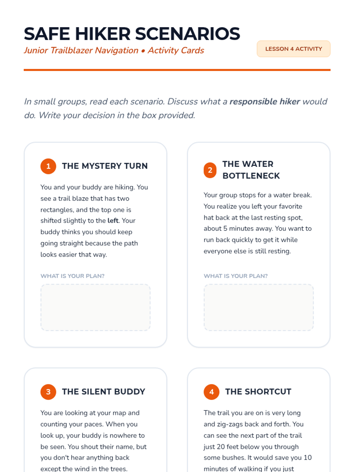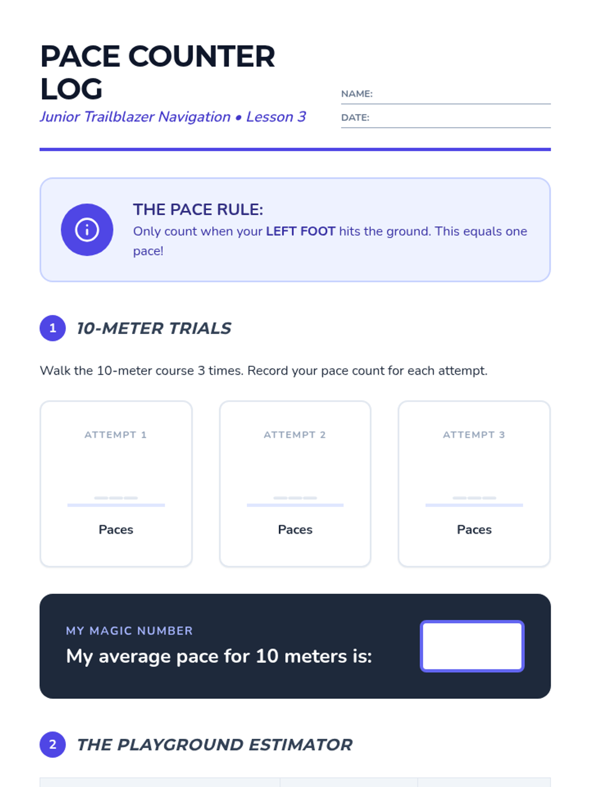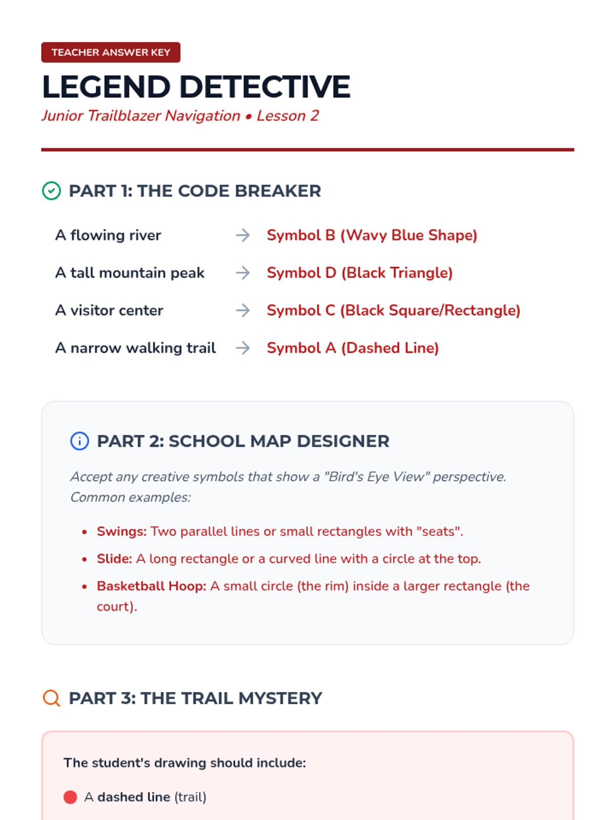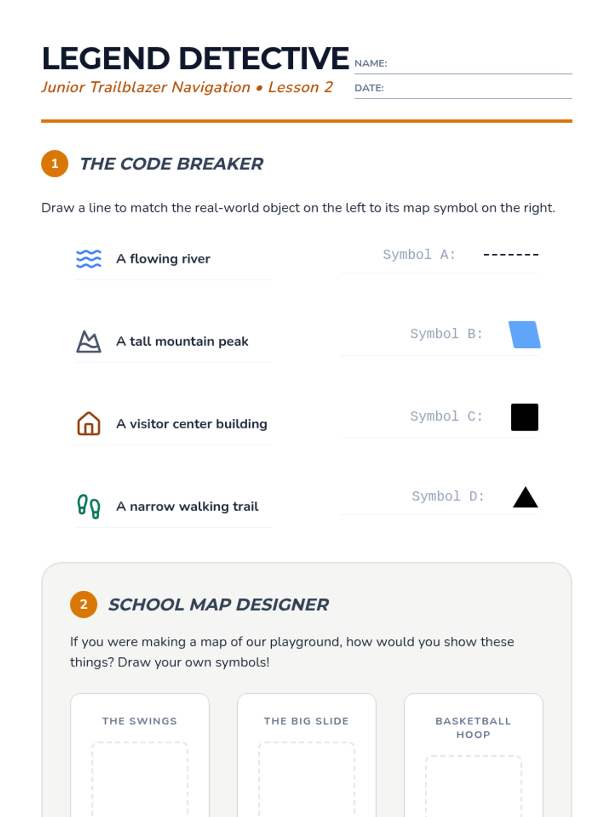 This 5-lesson sequence introduces 3rd-grade students to the fundamental skills of outdoor navigation and safety. Students progress from learning cardinal directions and map symbols to physical skills like pacing and identifying trail markers, culminating in a schoolyard orienteering challenge.