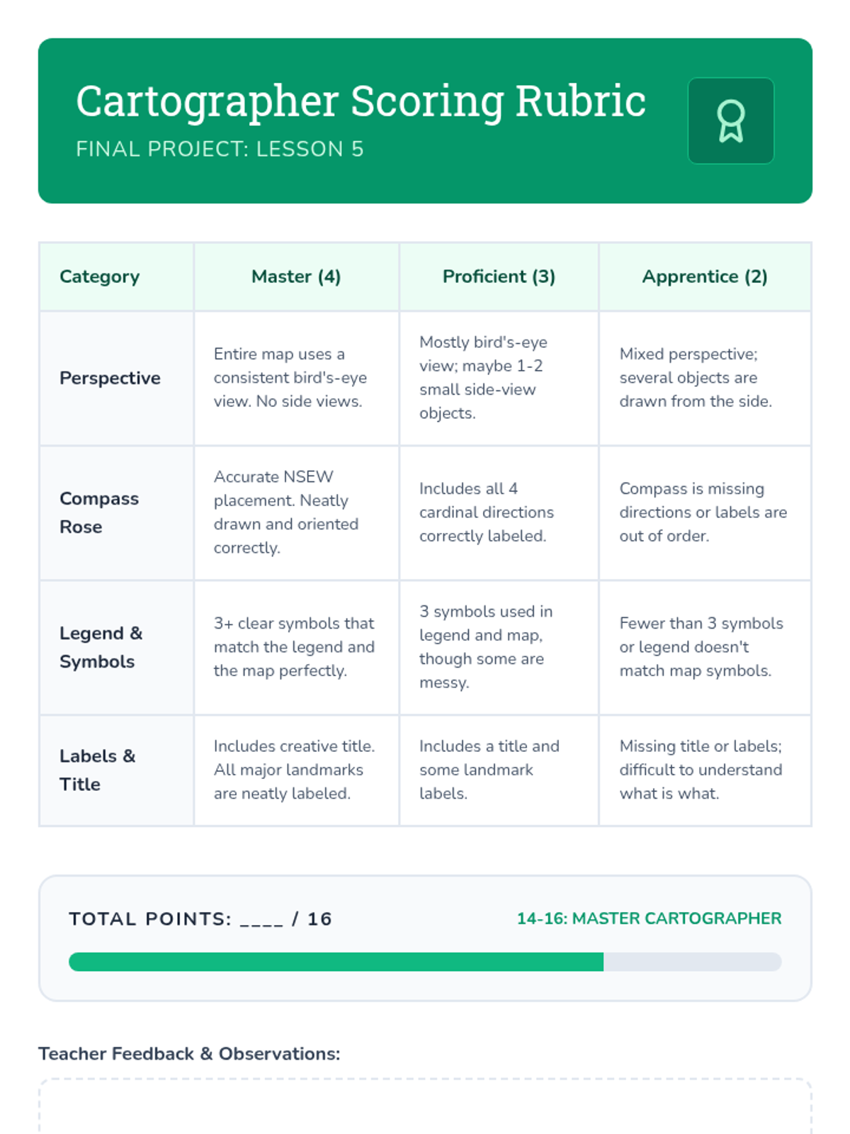 A 5-lesson sequence for 3rd grade students to master the fundamentals of map reading, spatial reasoning, and cardinal directions. Students progress from understanding bird's-eye perspective to creating their own accurate maps of familiar spaces.