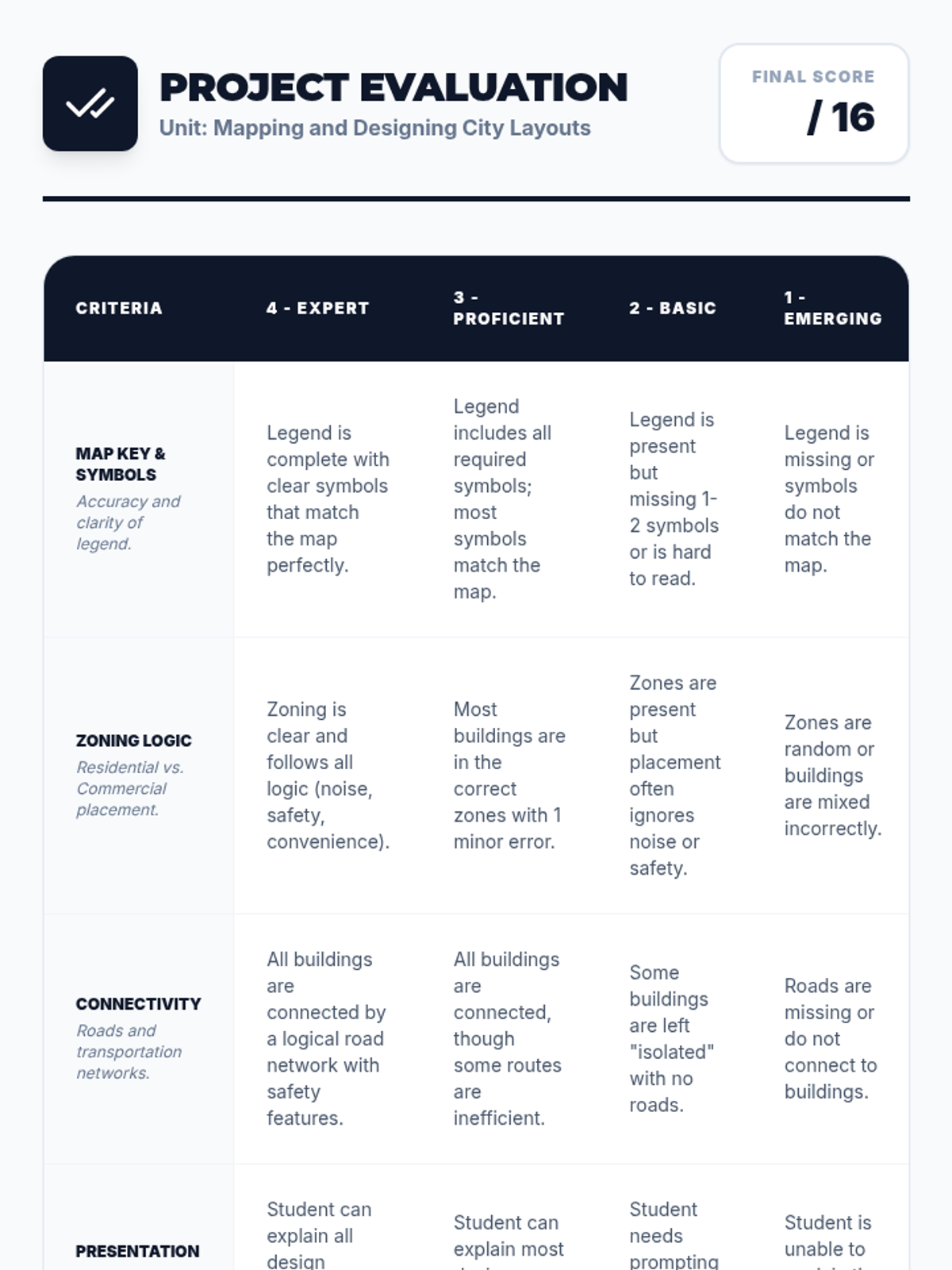 A project-based unit where 2nd-grade students learn city planning fundamentals, map symbols, and urban zoning to design their own logical and functional city maps.