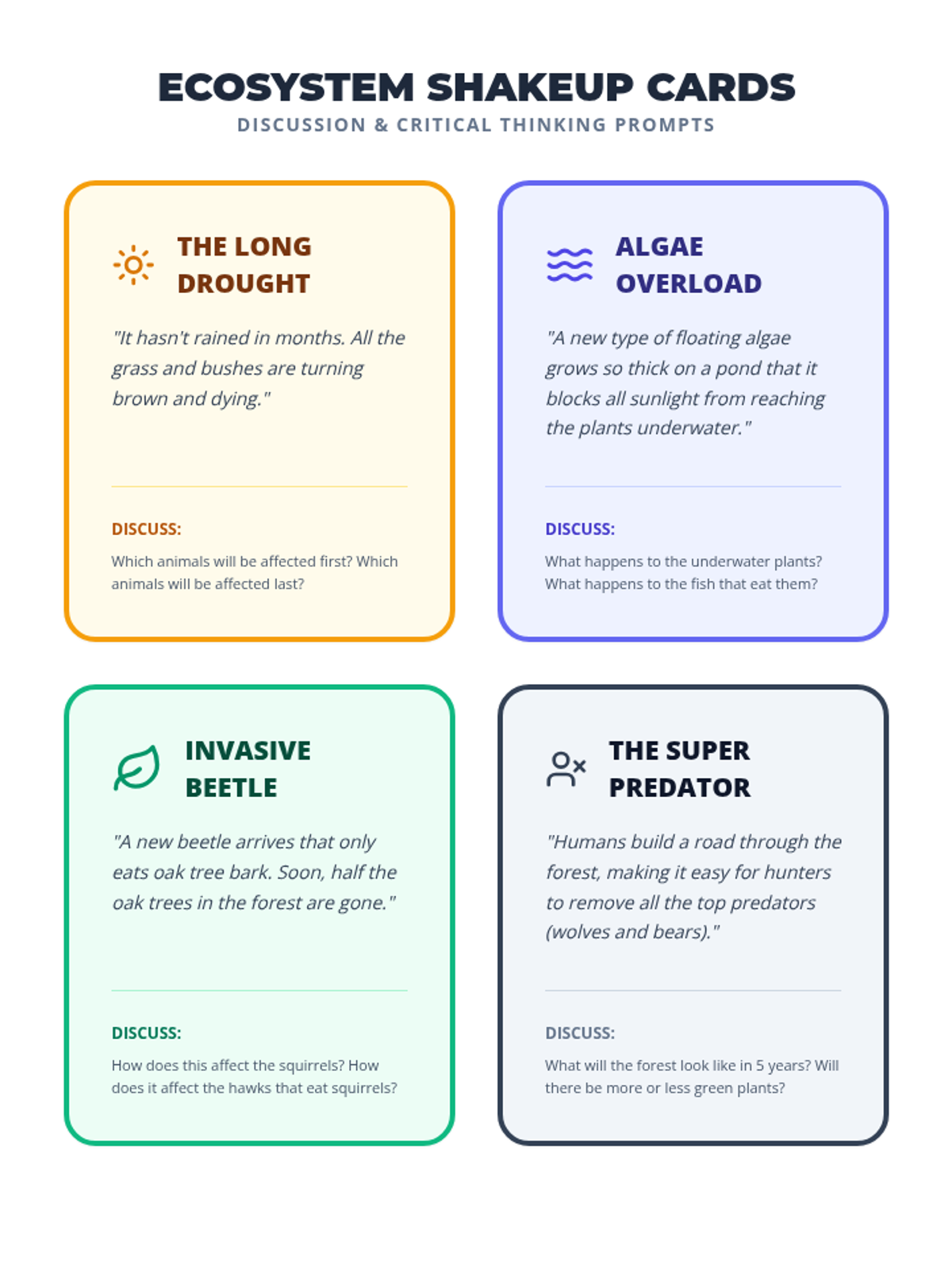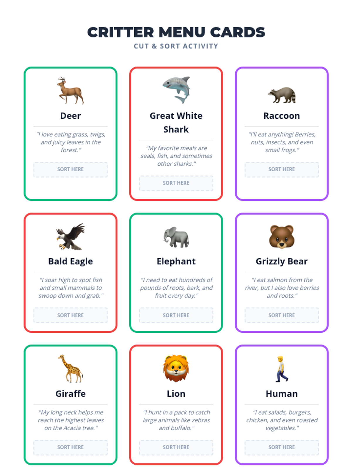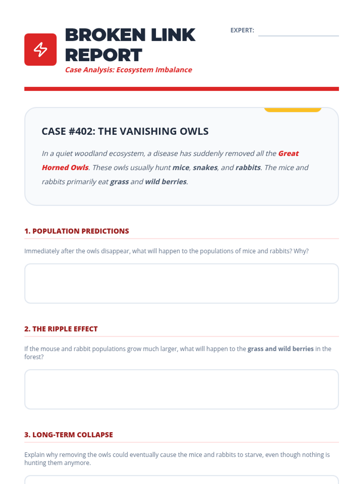 This sequence explores the flow of energy through ecosystems, tracing it from the sun through producers and various levels of consumers to decomposers. Students will analyze animal diets, construct complex food webs, and predict the consequences of species removal within an ecosystem.
