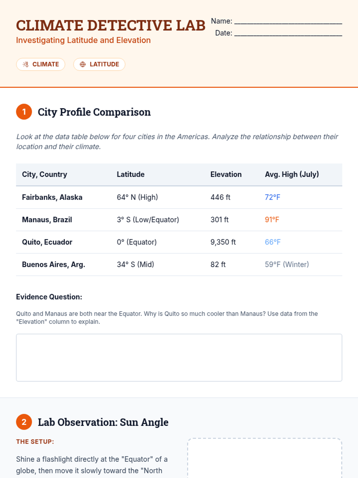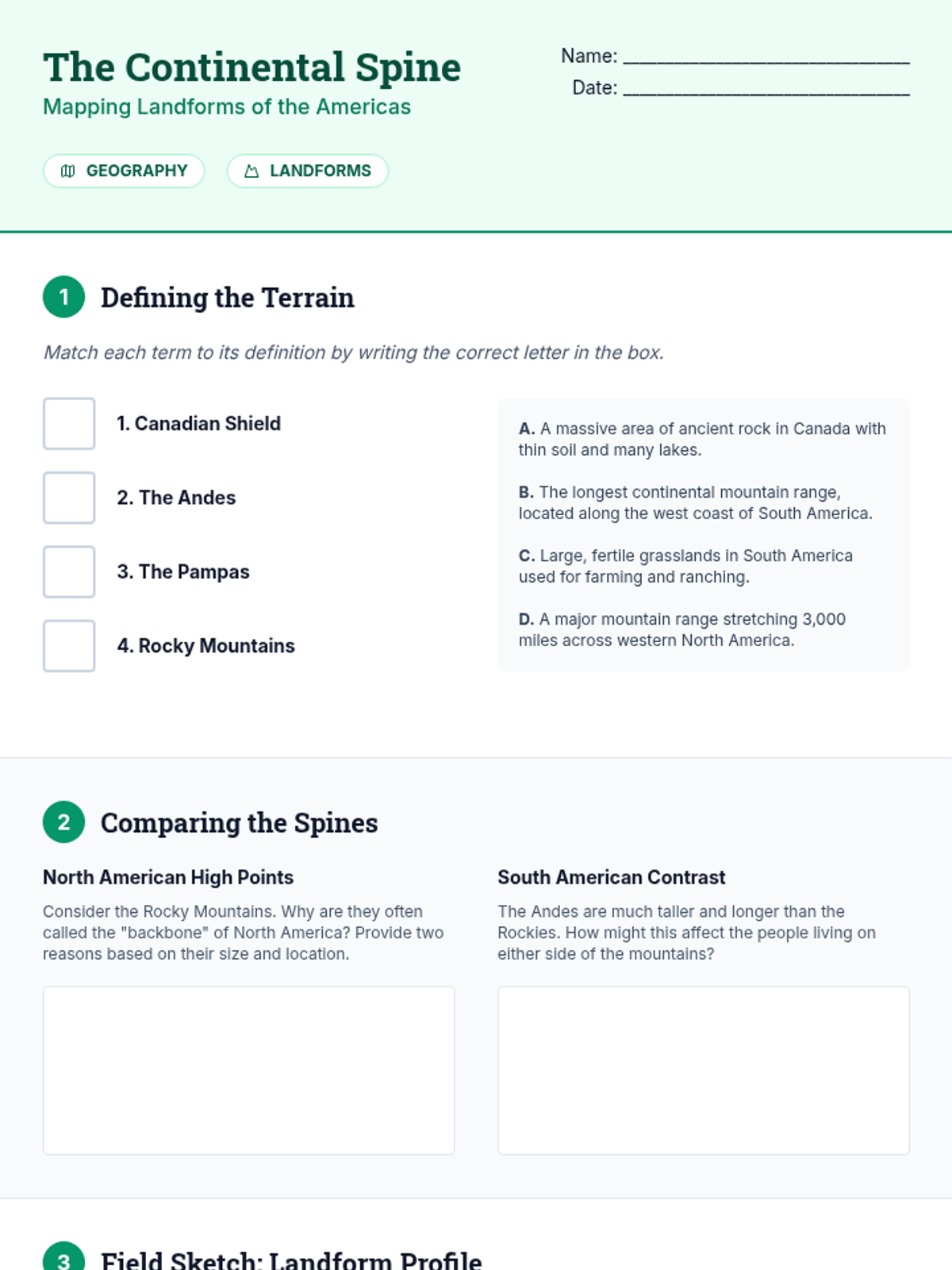 Students explore the diverse physical geography of North, Central, and South America, investigating the relationship between landforms, climate, and biodiversity to create a comprehensive physical profile of the Western Hemisphere.