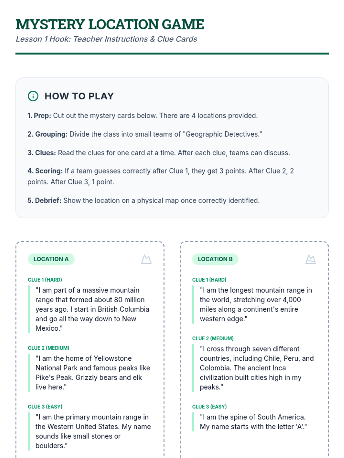 A multi-day project sequence where students design their own nation, exploring concepts of geography, governance, economics, and civil rights.