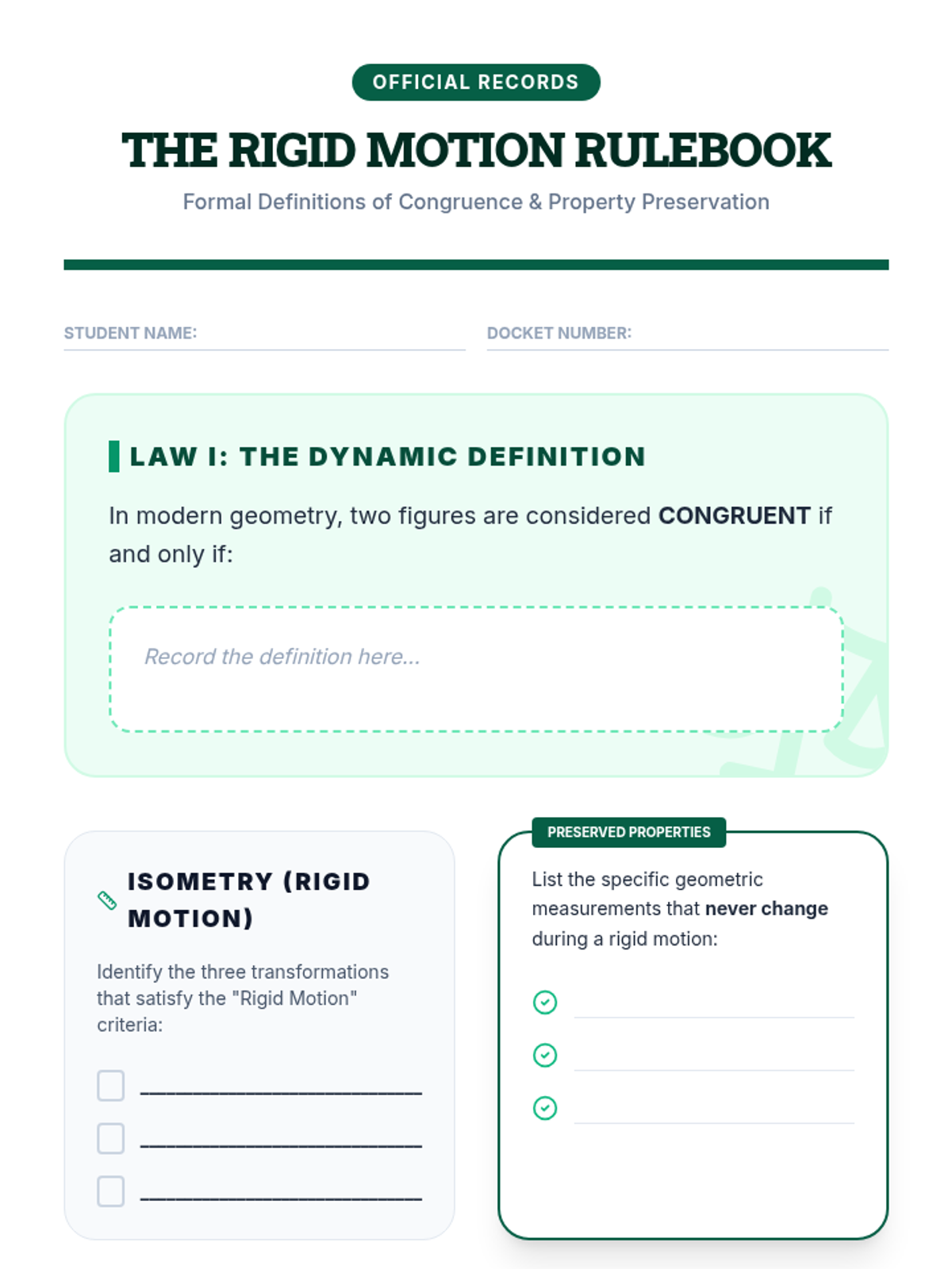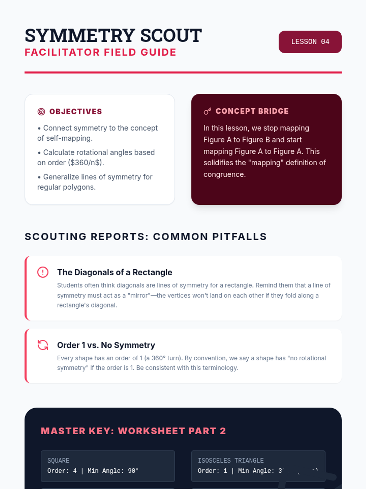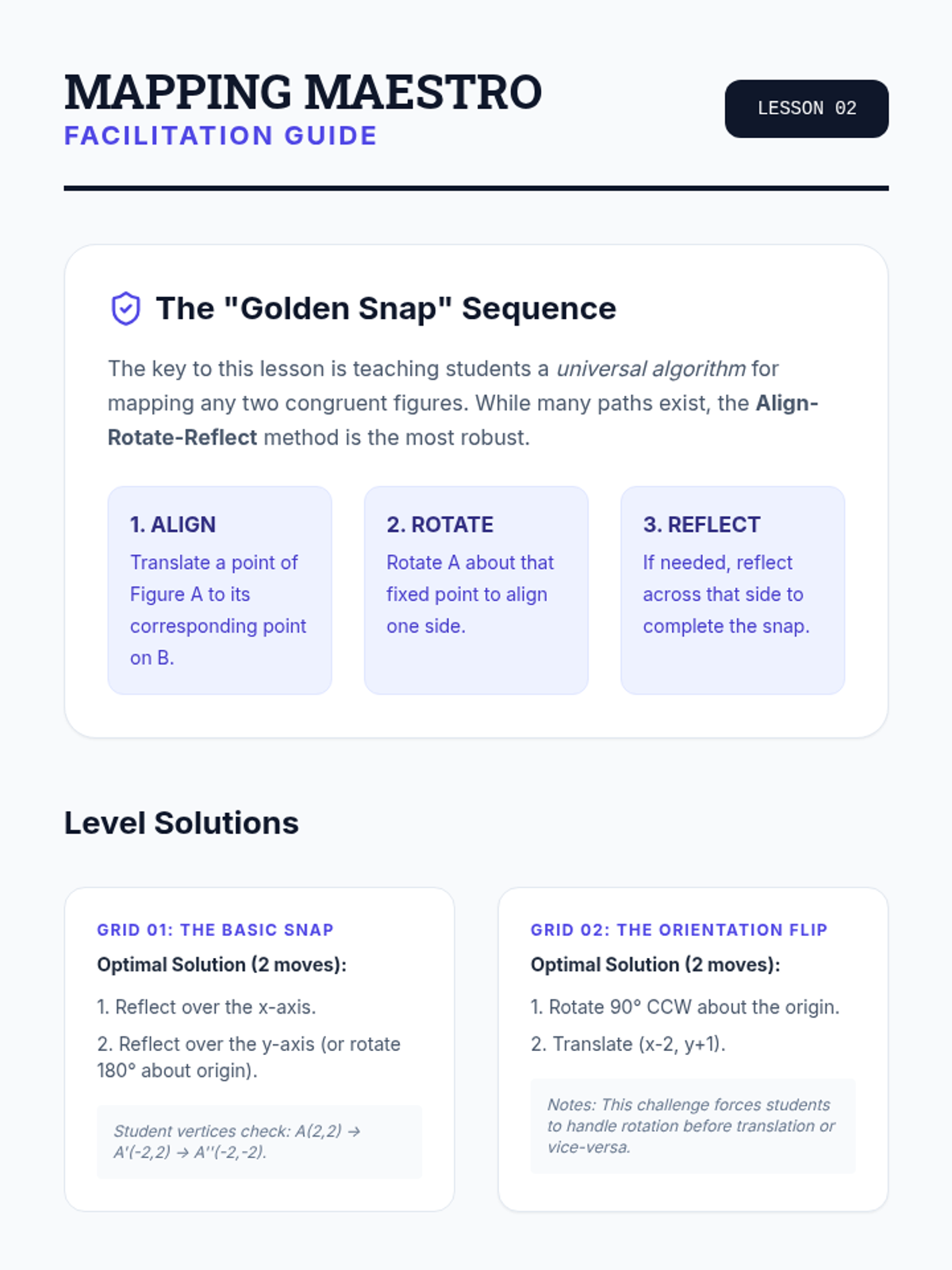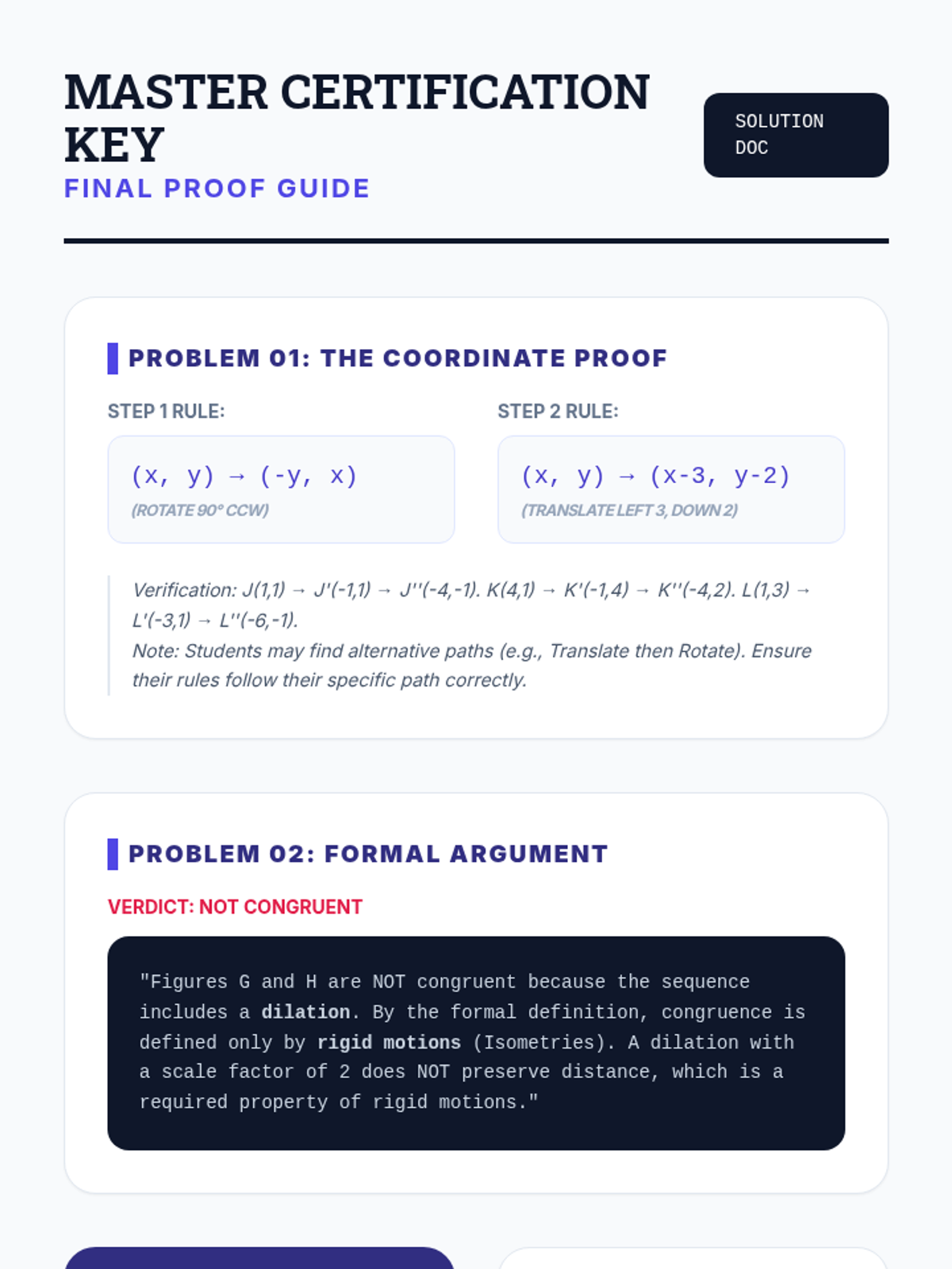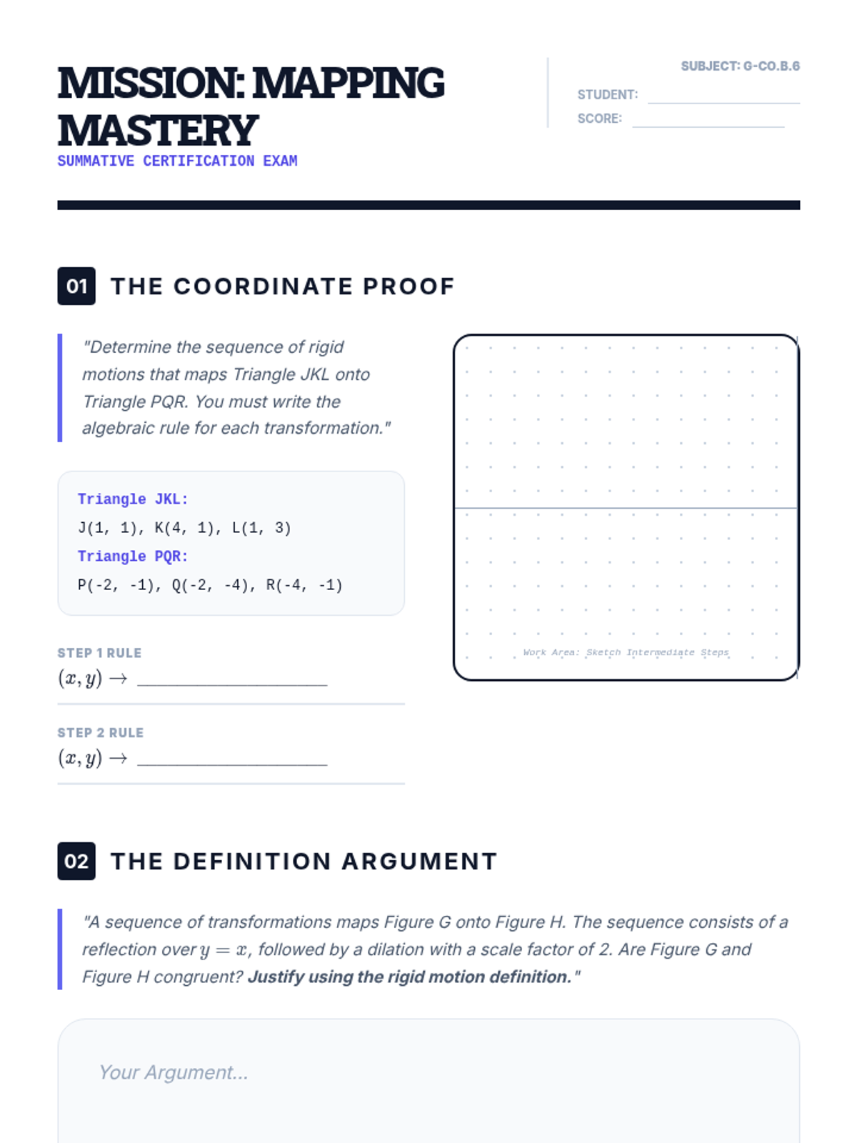 A comprehensive 9th Grade Geometry sequence on rigid transformations, focusing on composition, mapping congruence, and symmetry using a transformational approach.