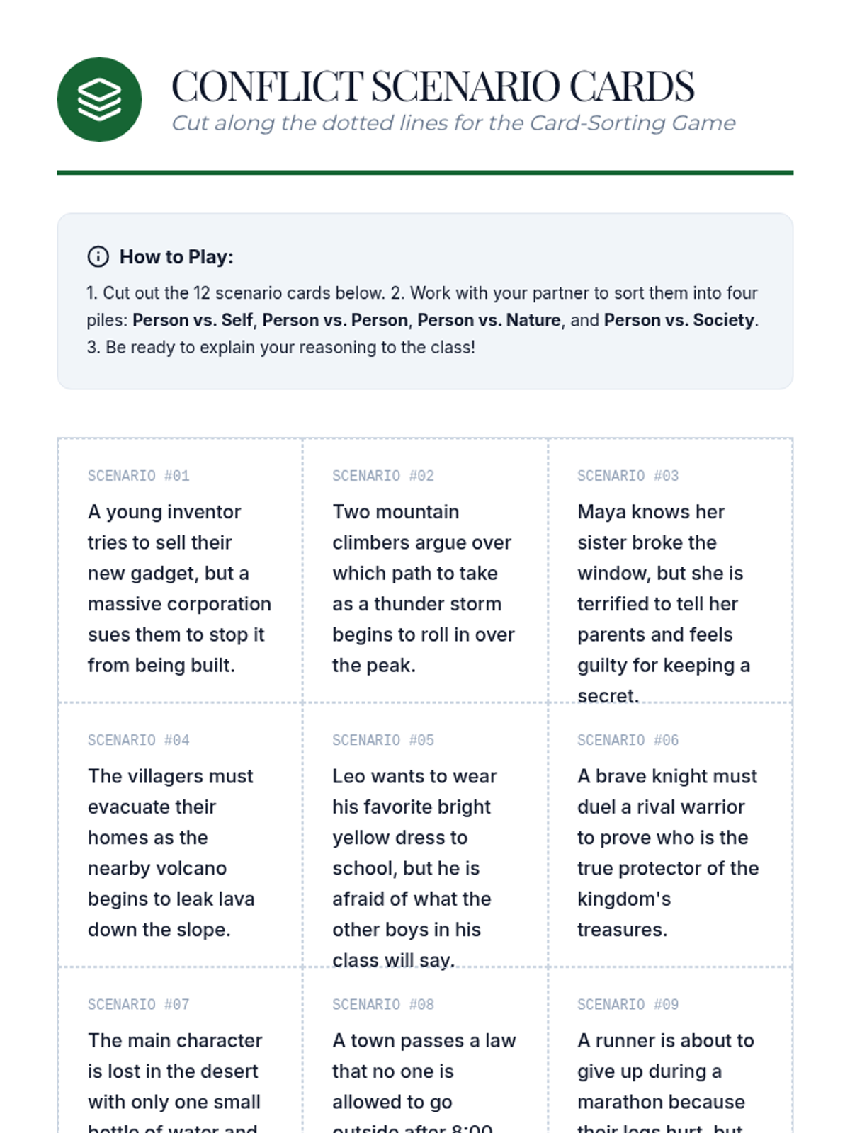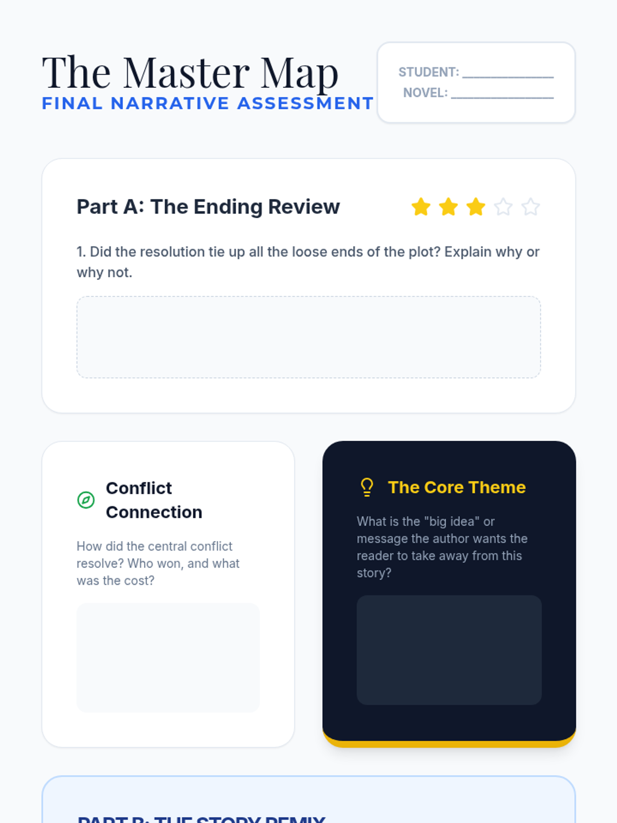 A game-based ELA sequence for 5th grade where students deconstruct narrative architecture, categorize conflict, and evaluate story resolution using a cartography theme. Students map the 'terrain' of a novel to understand how structure controls tension.
