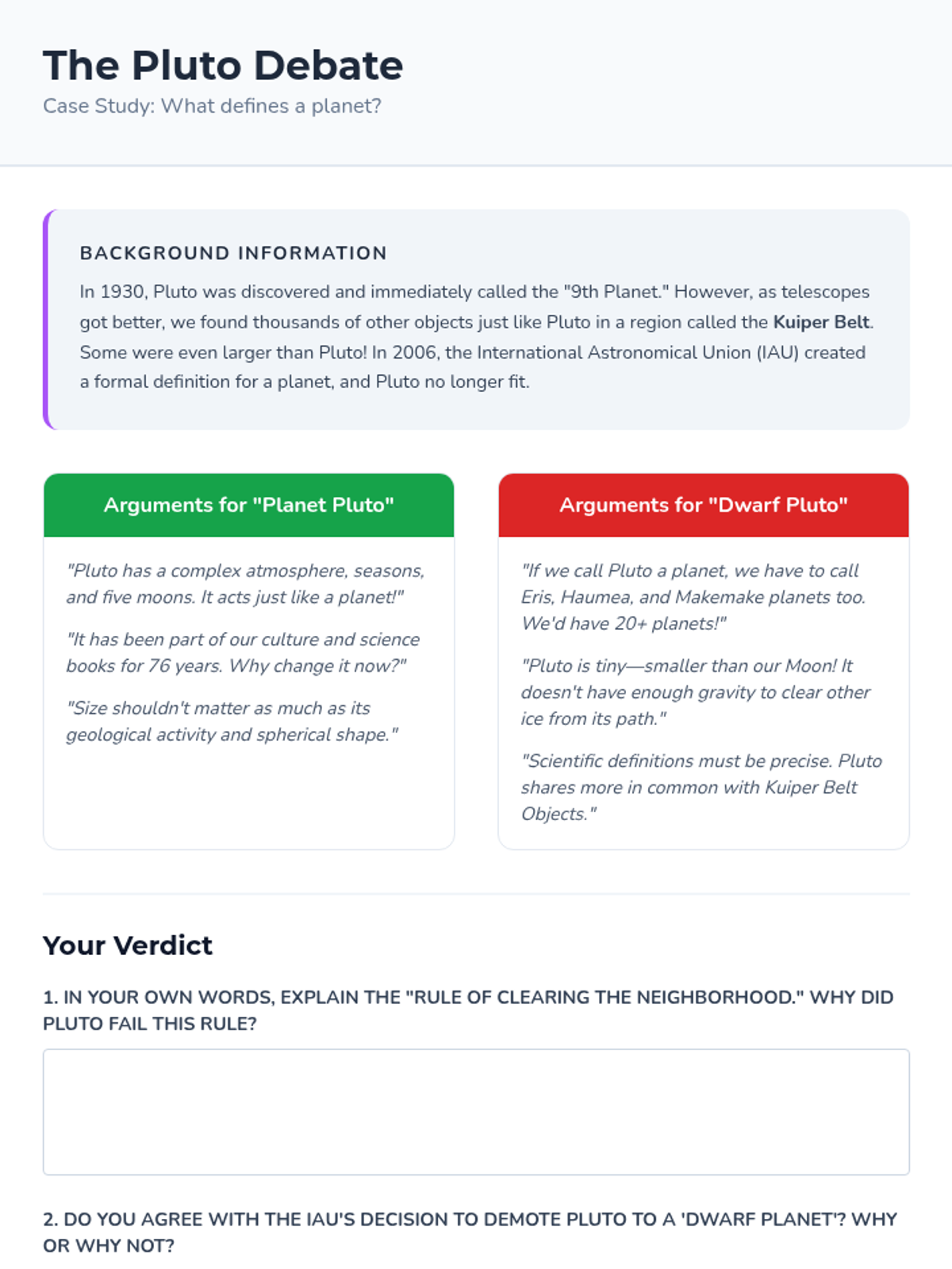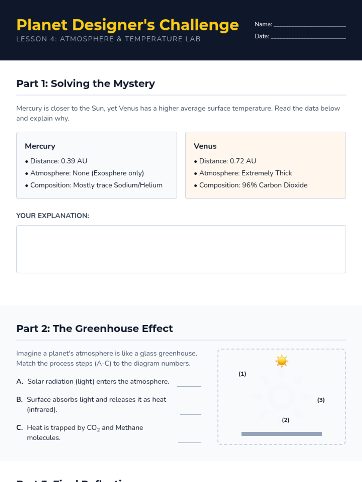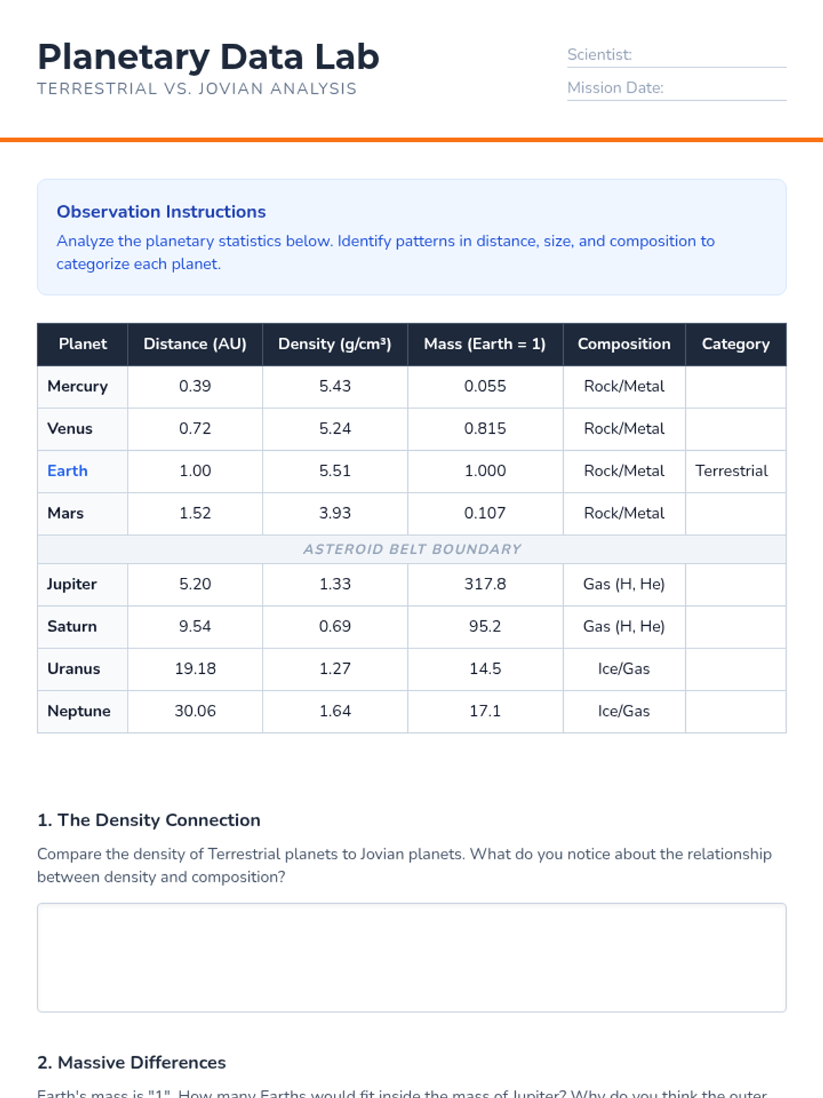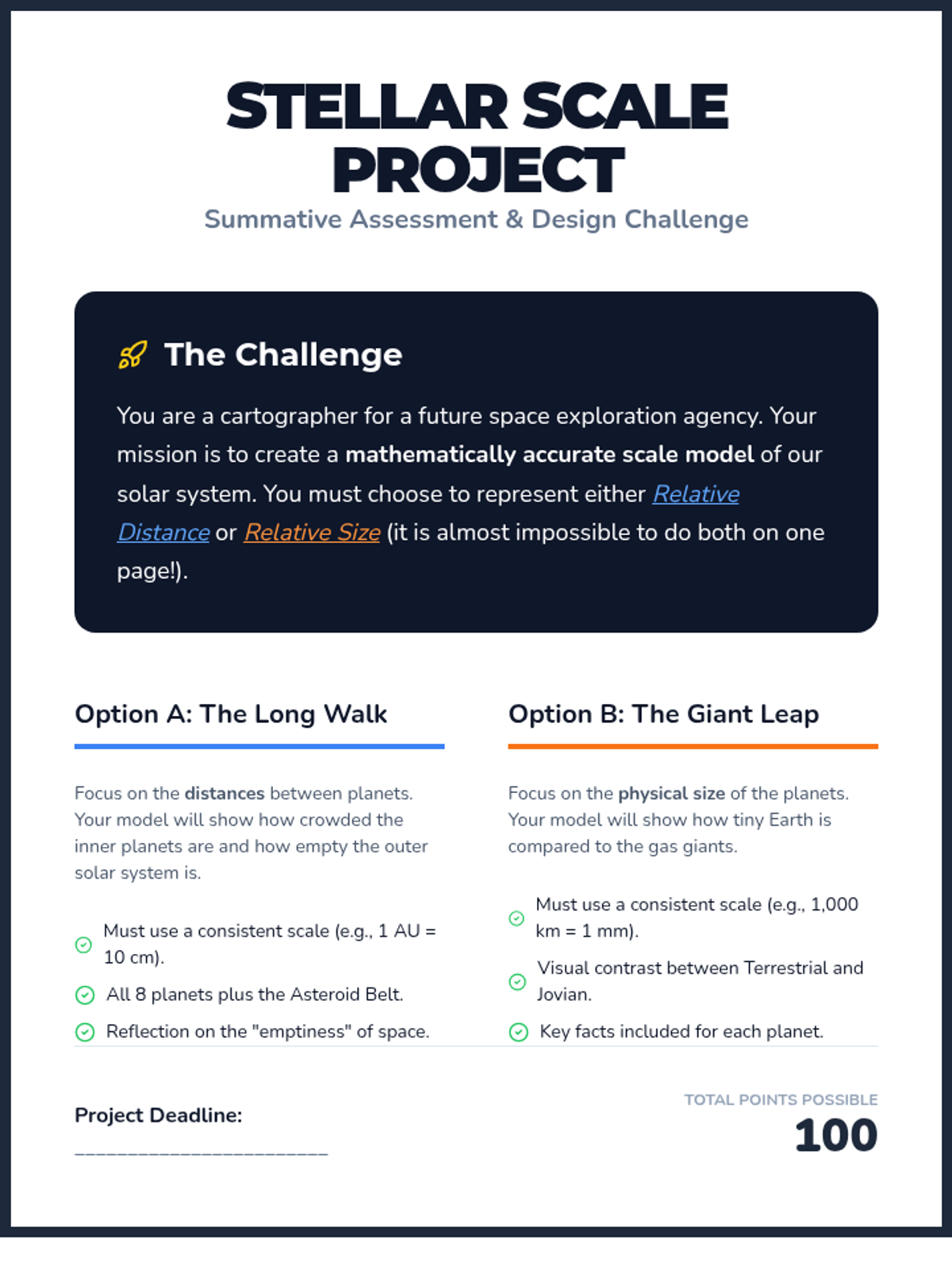 This sequence explores the vast scale and diverse composition of our solar system. Students progress from understanding astronomical units and relative distances to analyzing the physical characteristics of planets, small bodies, and atmospheric conditions, concluding with a comprehensive scale model project.