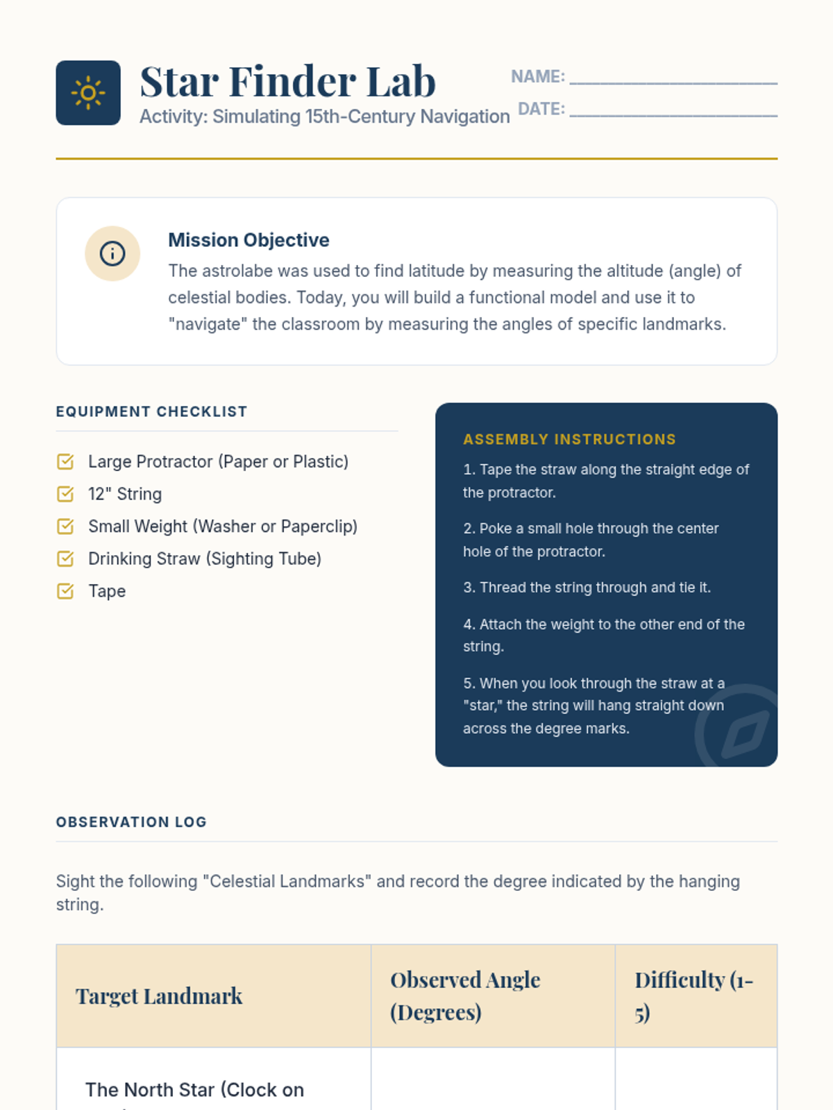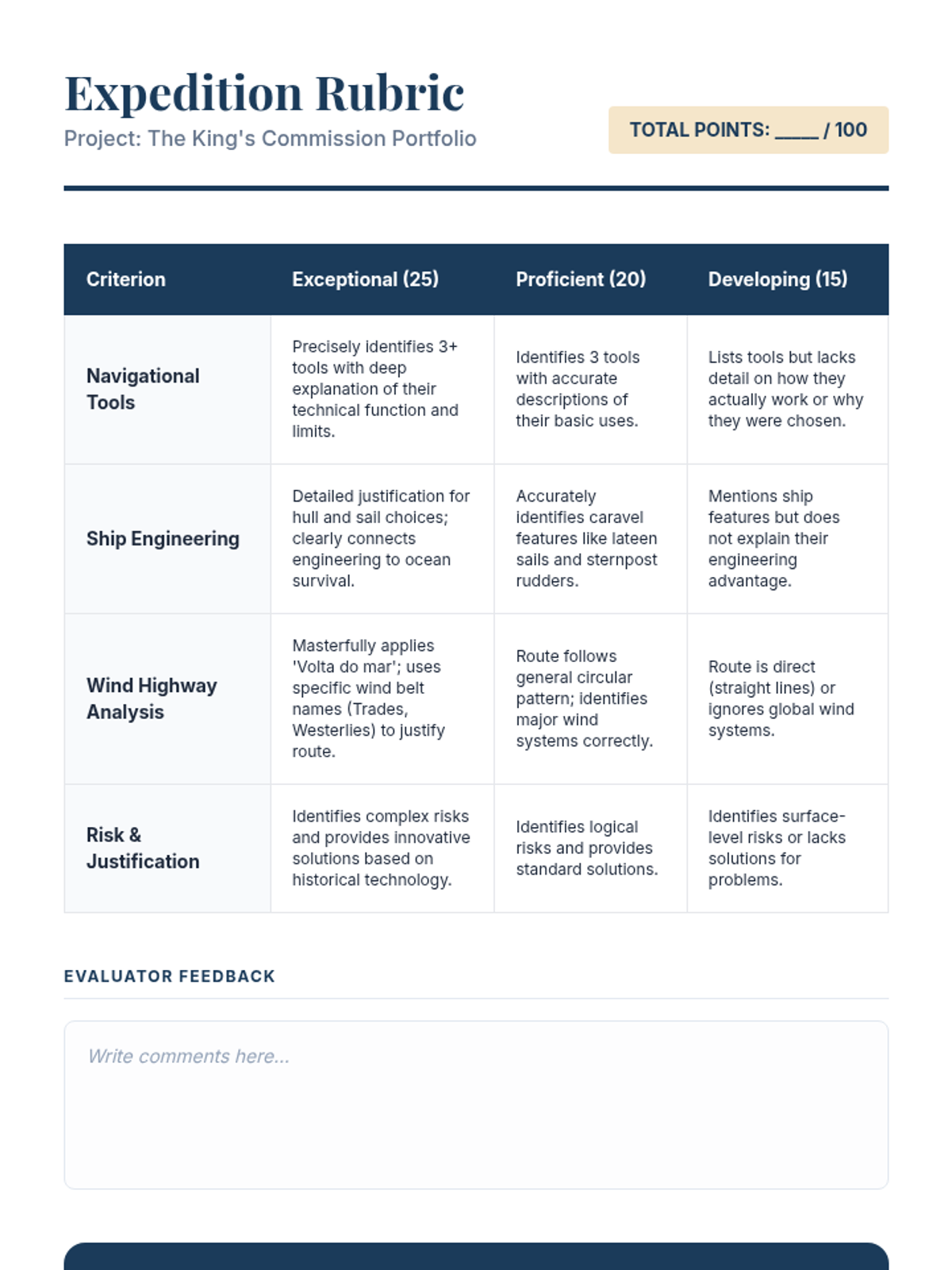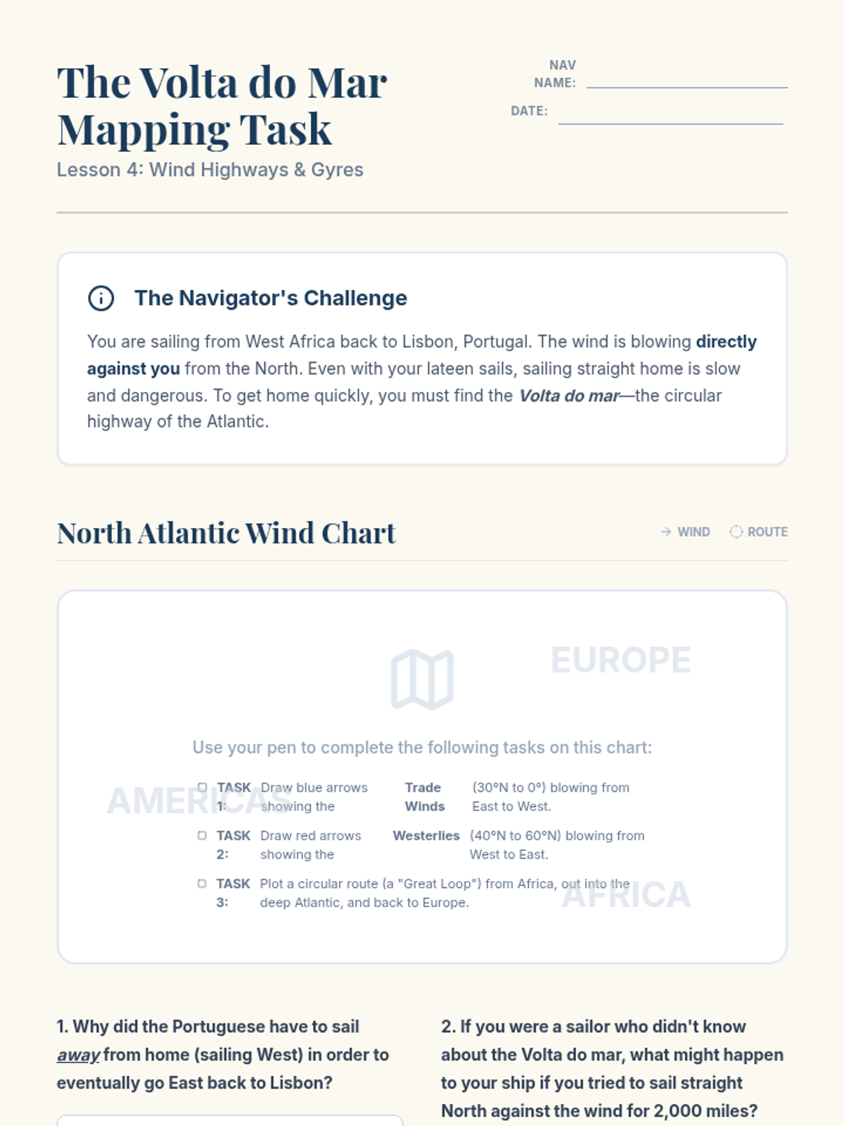 A 5-lesson sequence investigating the technological innovations that made transoceanic voyaging possible during the Age of Exploration. Students explore 15th-century cartography, navigation tools like the astrolabe, ship engineering, and global wind patterns to plan their own hypothetical expedition.