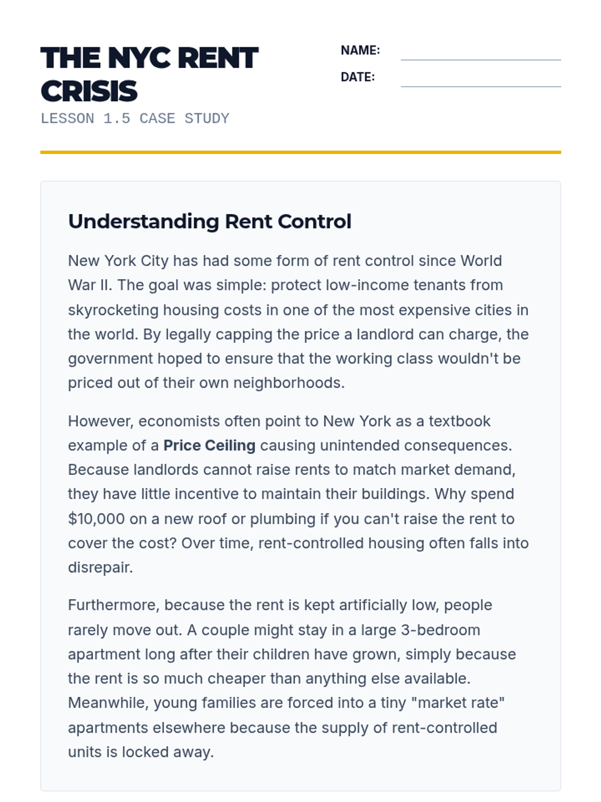 A comprehensive unit for 11th-grade microeconomics focusing on the mechanics of supply and demand, market equilibrium, and the impact of price controls. Students will master graphic literacy and analyze market-wide phenomena through technical modeling.