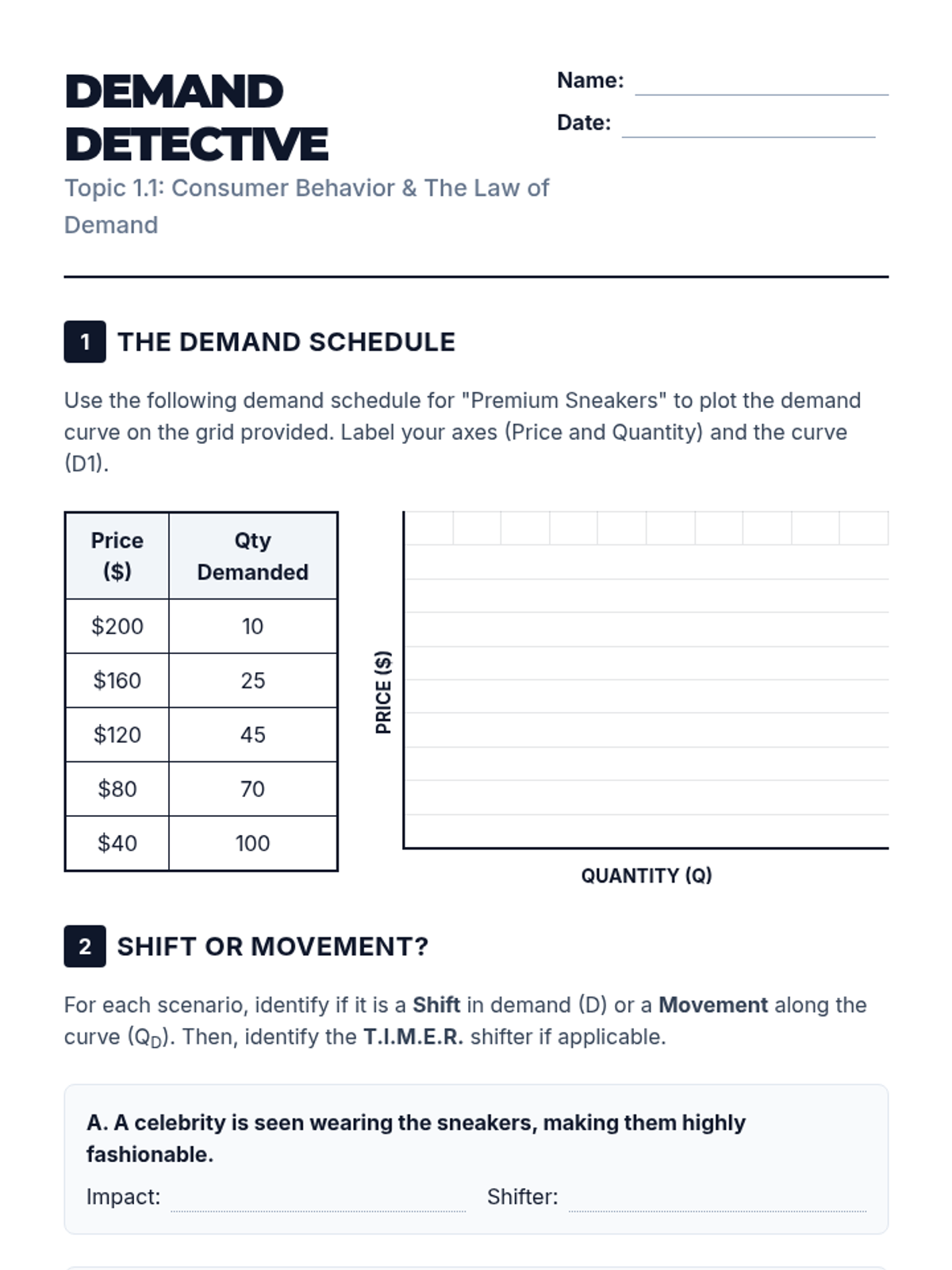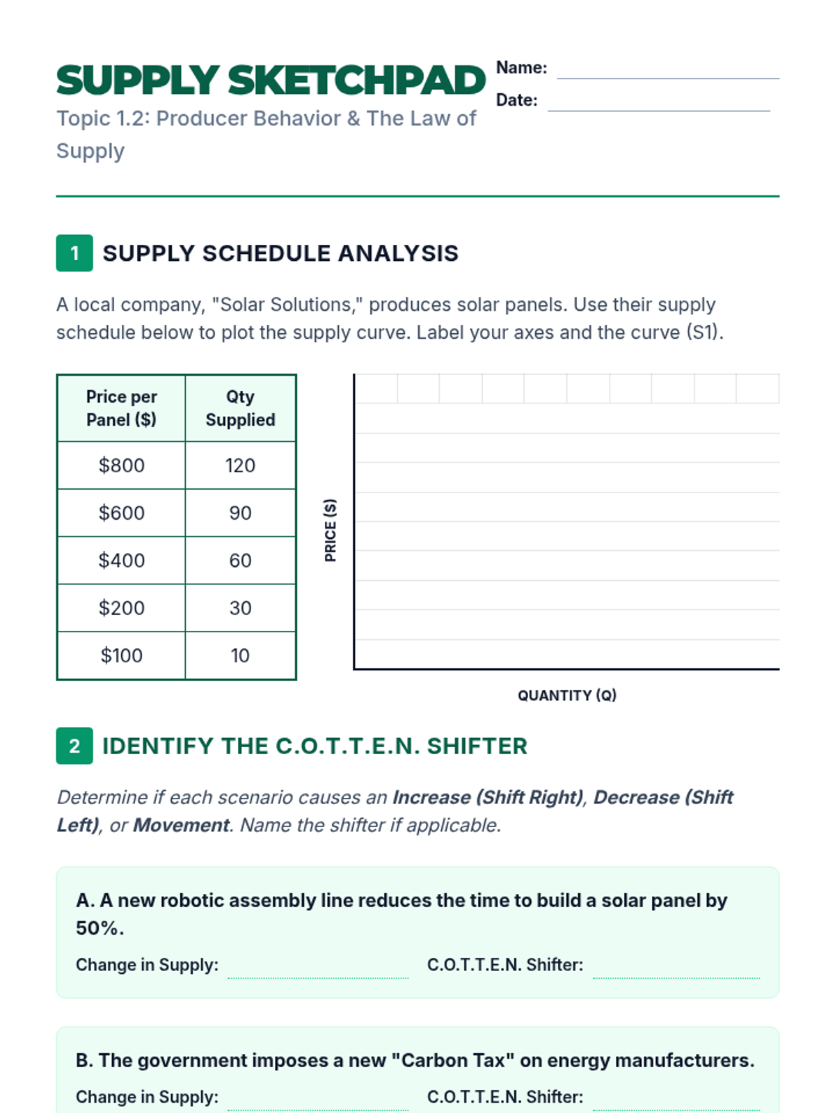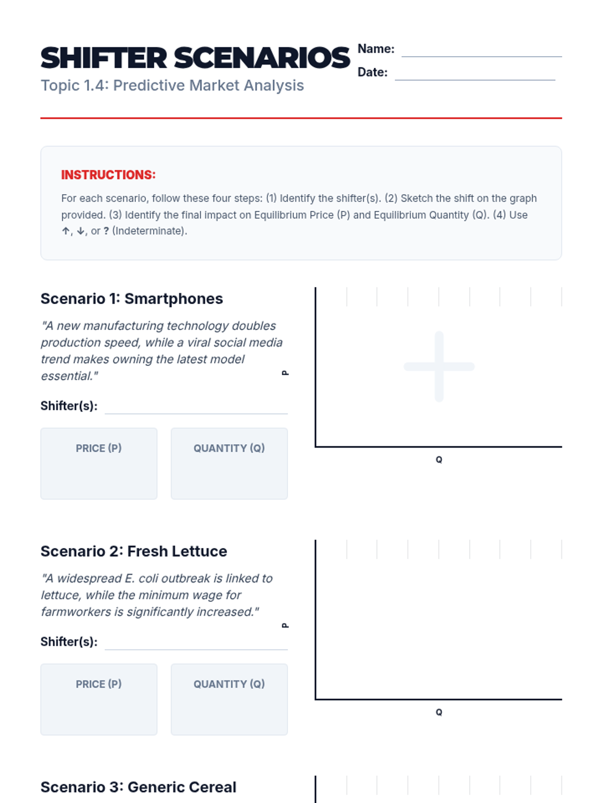A comprehensive unit for 12th-grade economics focused on supply, demand, and market equilibrium. Students develop technical graphing skills and analytical frameworks to predict how market forces and government policies determine prices and quantities in a market economy.