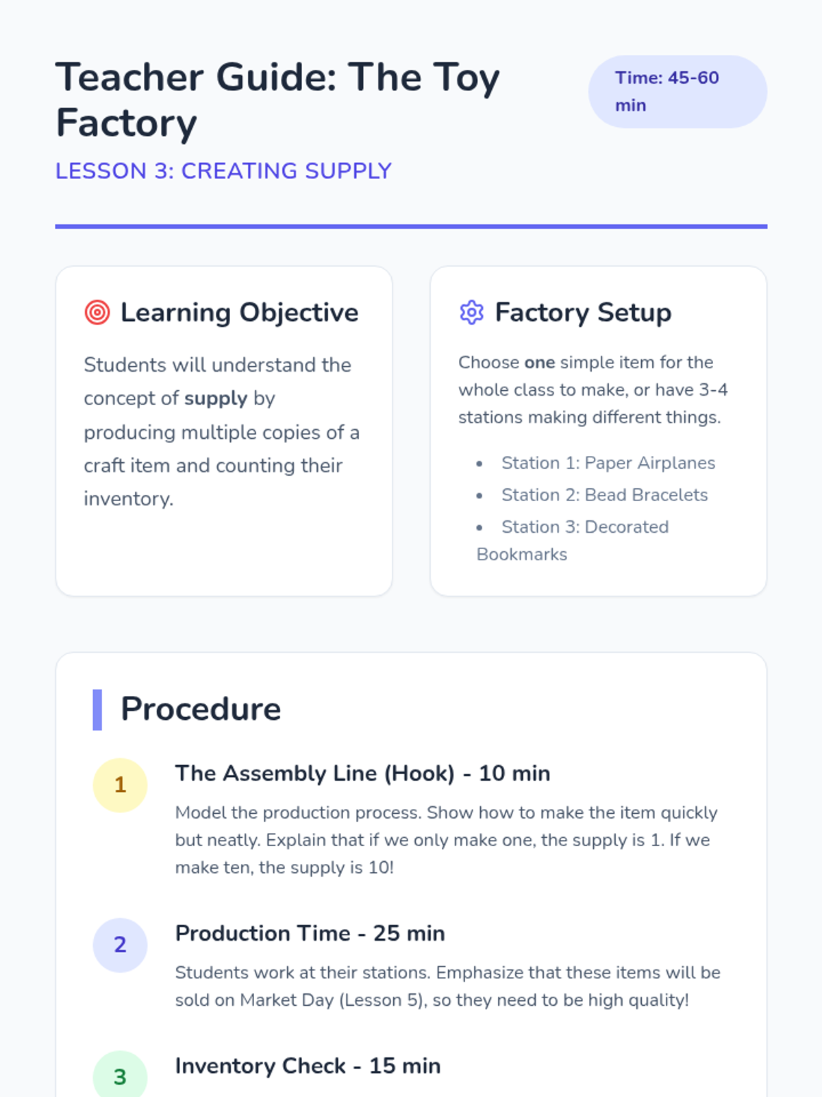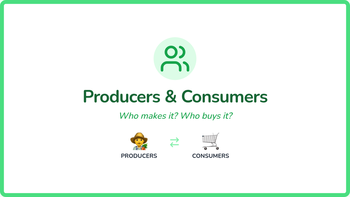 A hands-on introduction to economics for 1st graders, covering goods, services, producers, consumers, and the basic forces of supply and demand through a classroom 'Market Town' simulation.
