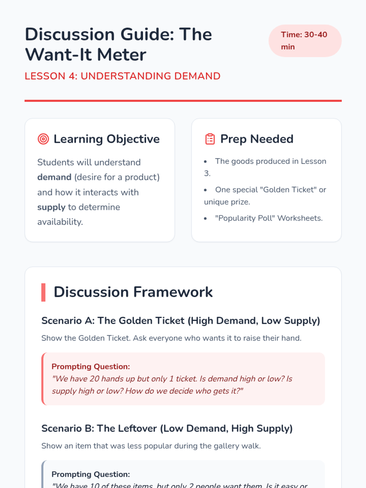 A foundational sequence for 1st graders exploring needs, wants, and scarcity. Students learn to differentiate survival essentials from desires and understand why resources are limited through simulations, games, and creative projects.