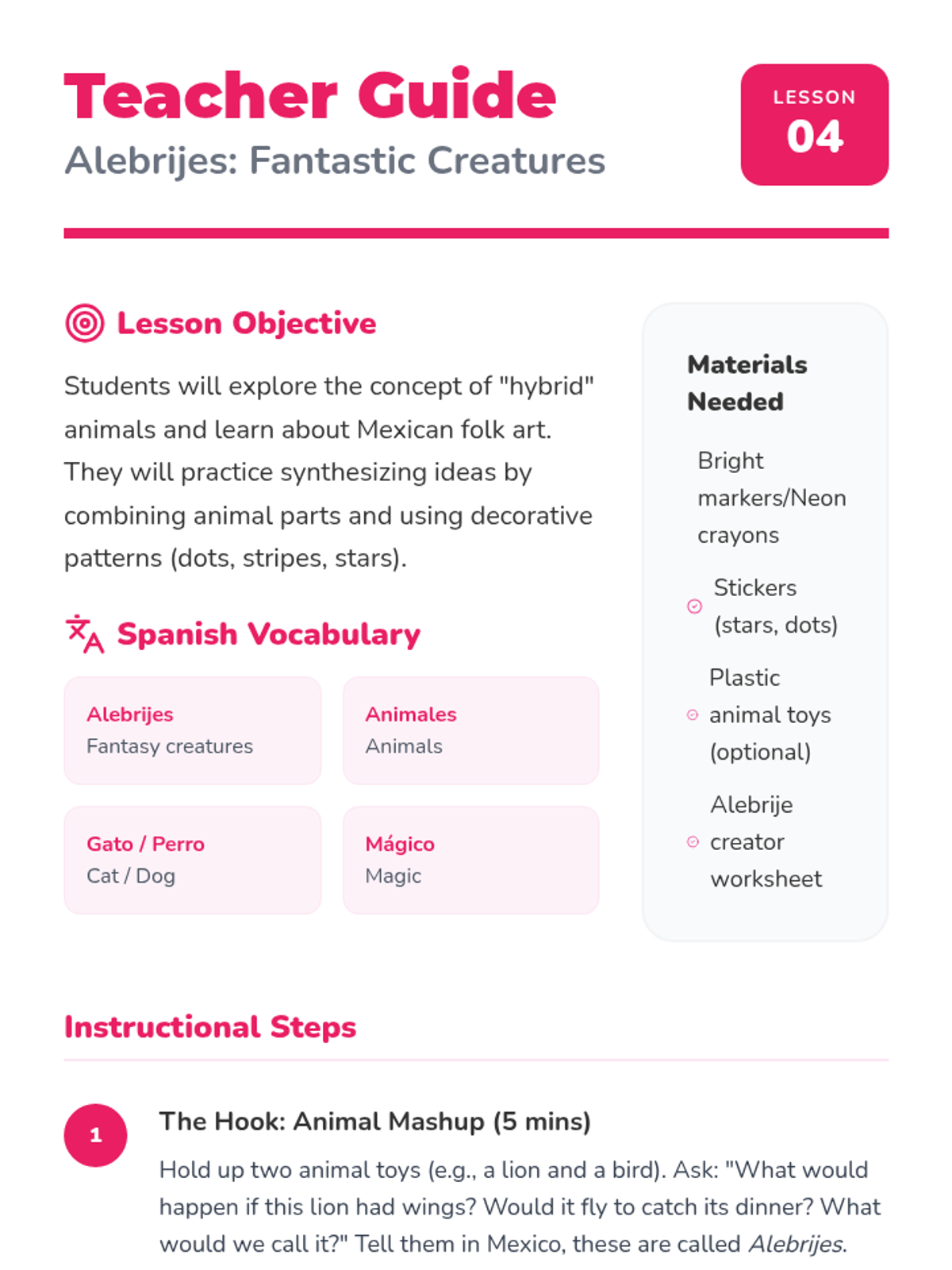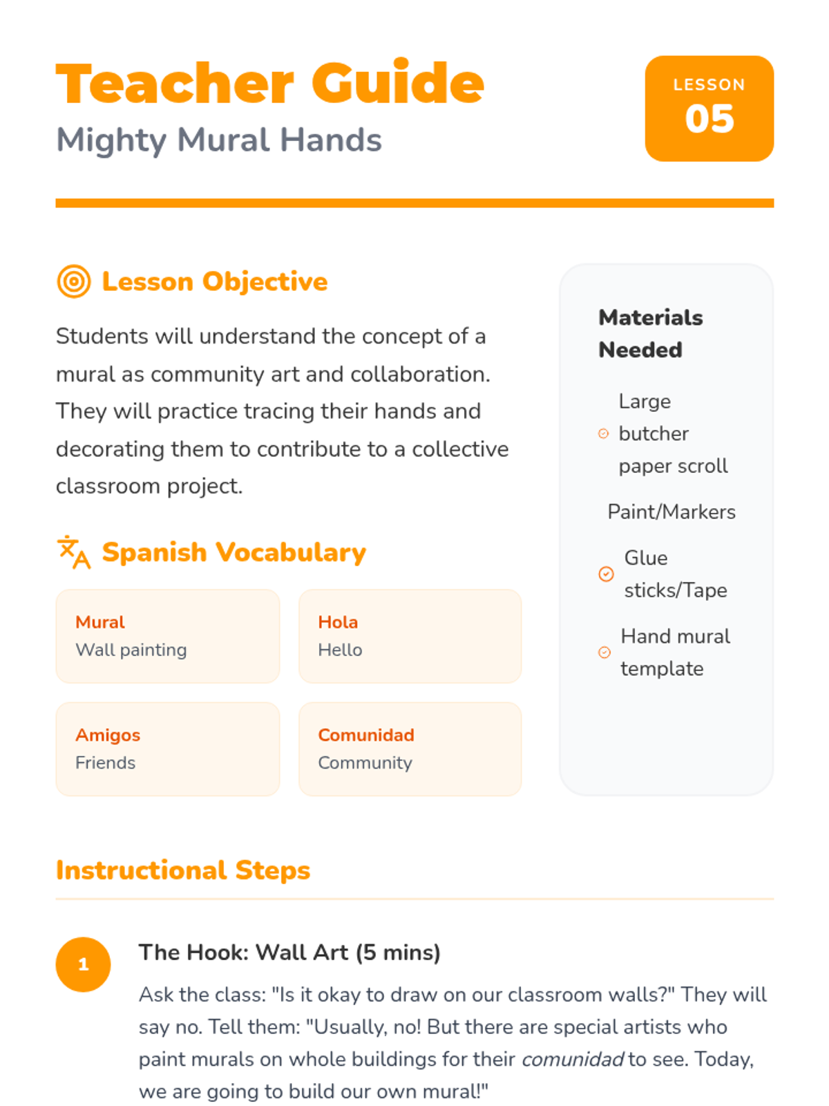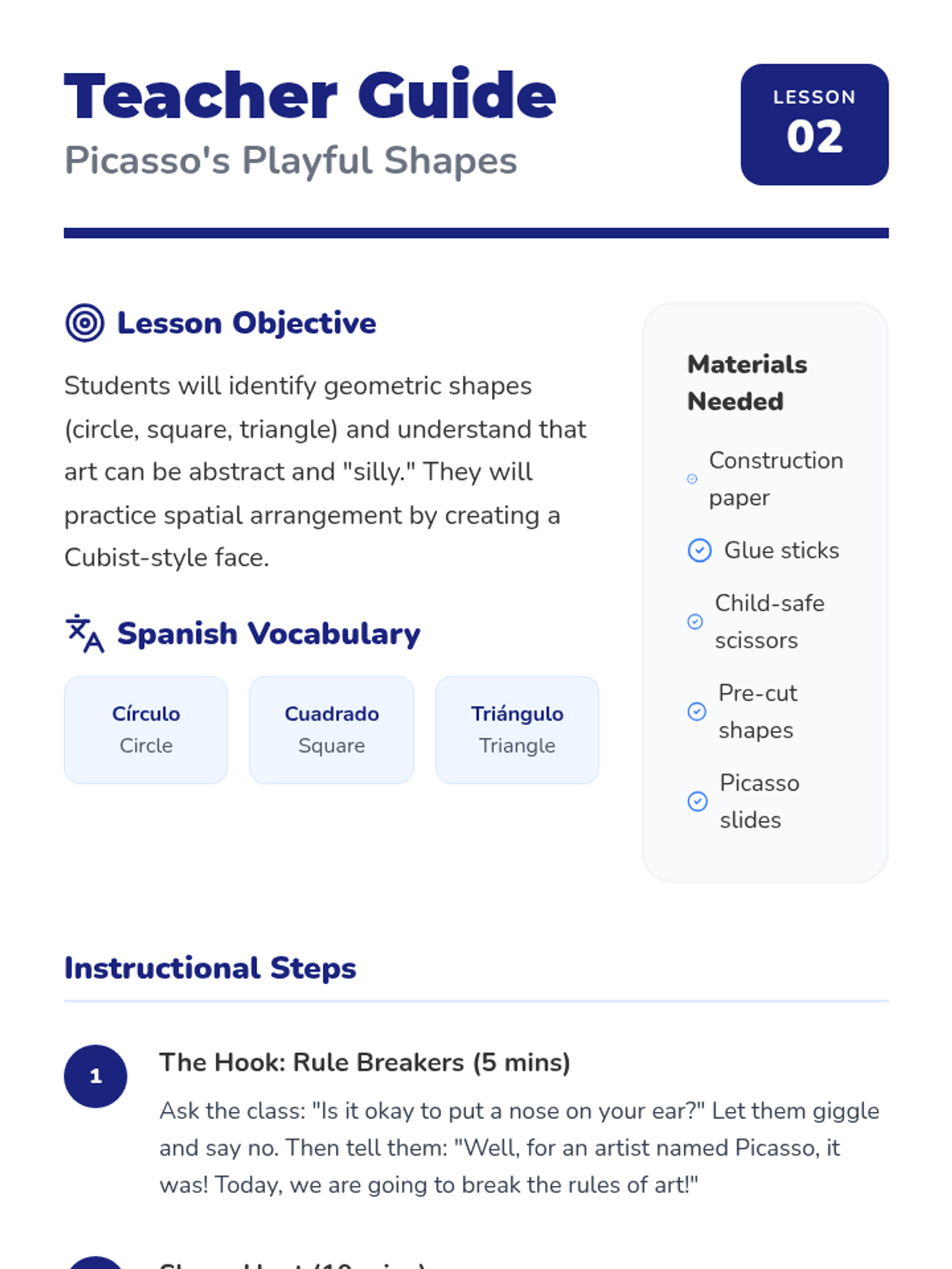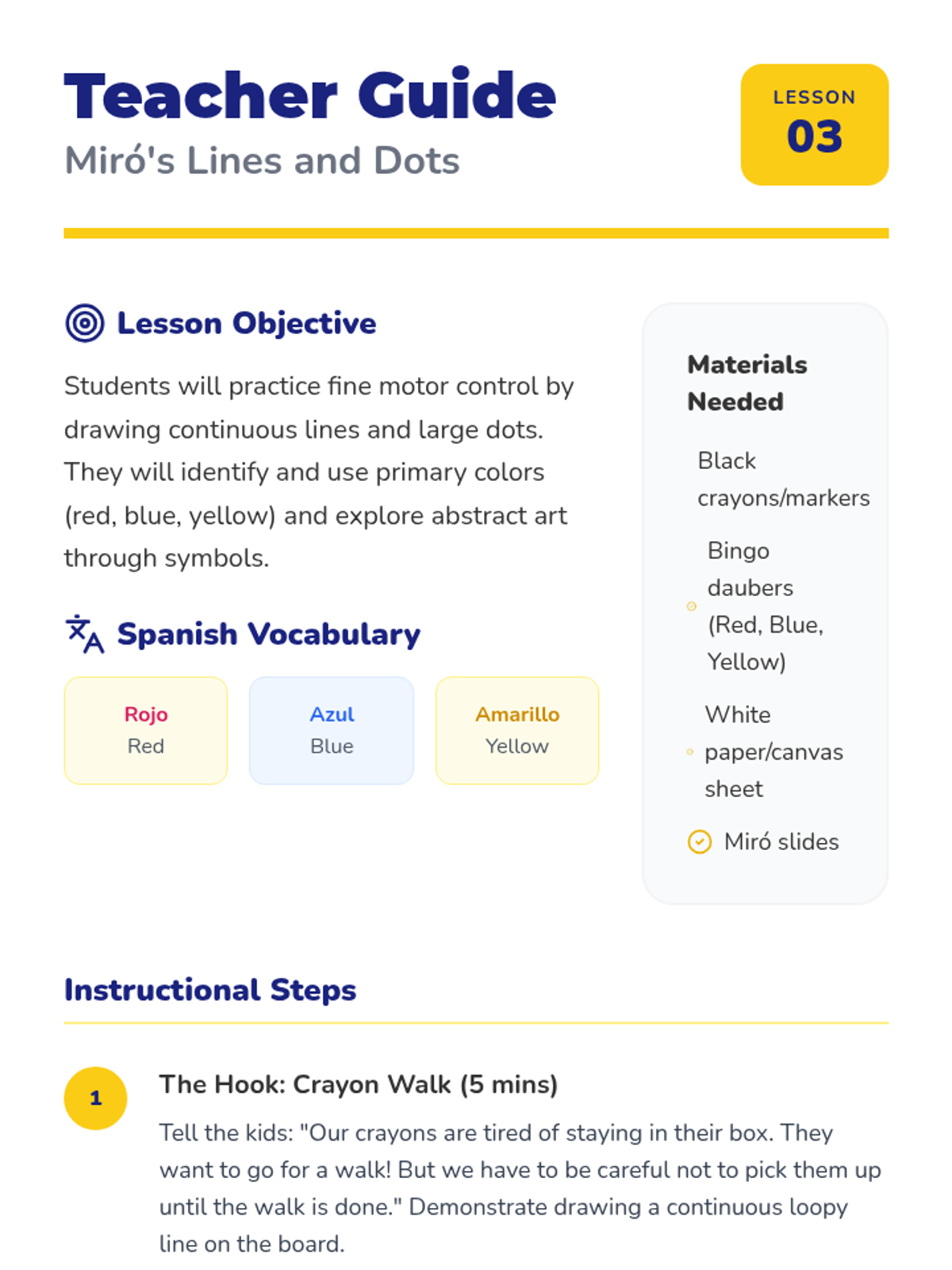 A vibrant, hands-on introduction to Spanish and Latin American art masters for Pre-K students. Children explore self-expression, shapes, lines, and community through the works of Kahlo, Picasso, Miró, Rivera, and Mexican folk art.