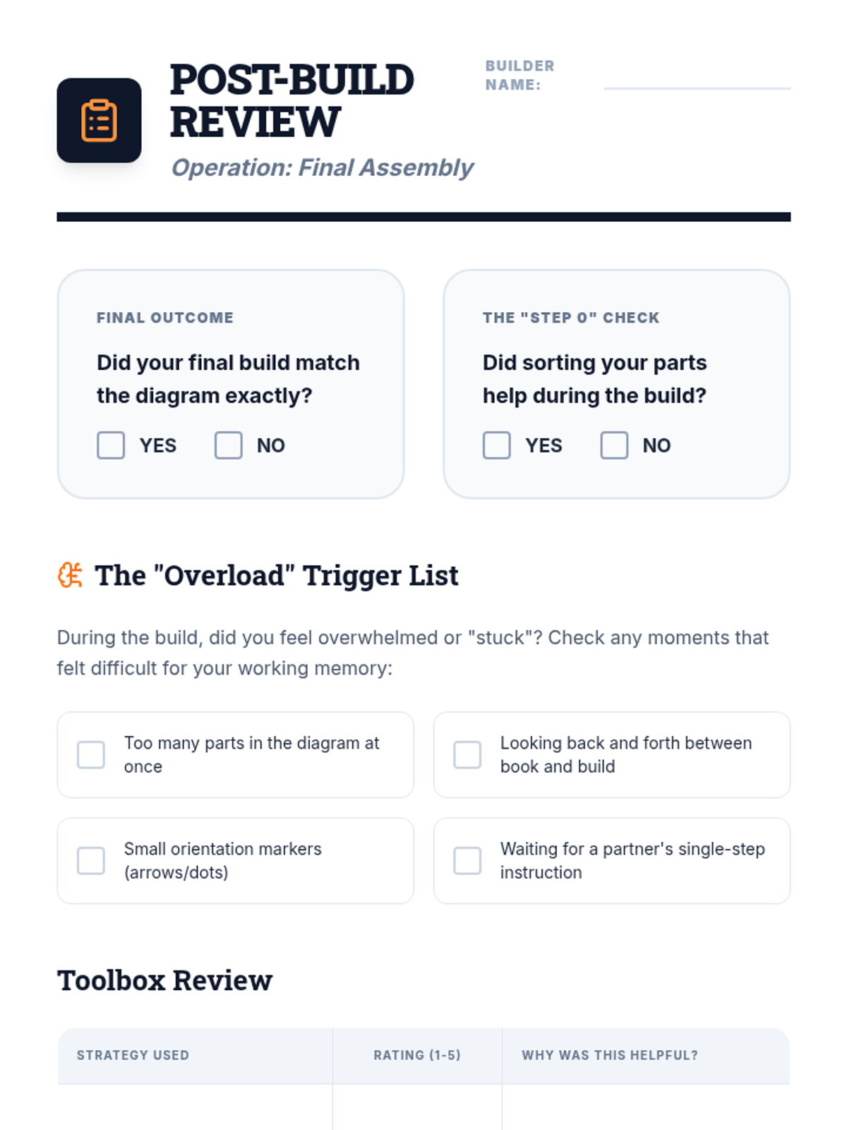 A project-based sequence for 11th-grade special education students focusing on working memory through procedural assembly. Students learn to manage cognitive load by isolating single-step instructions and verifying their work during fabrication tasks.