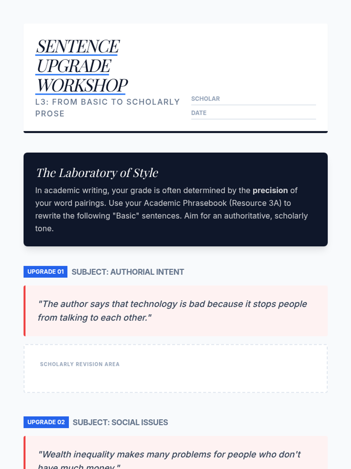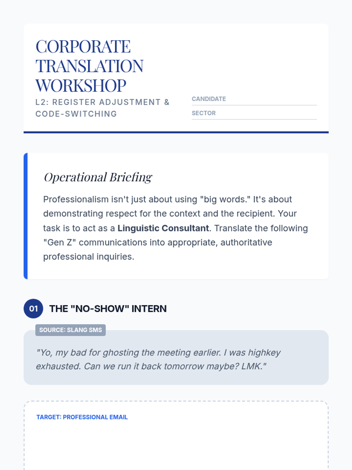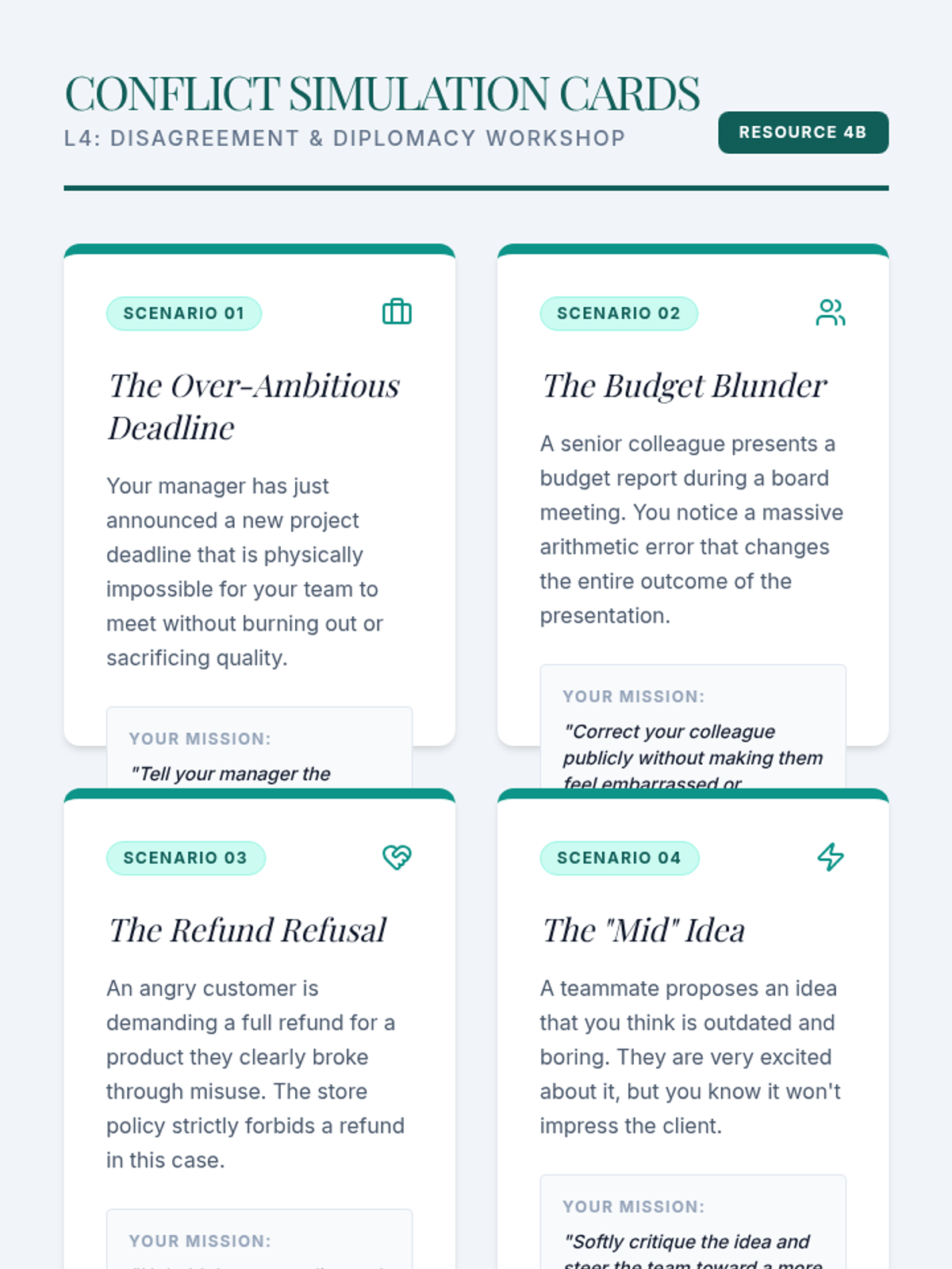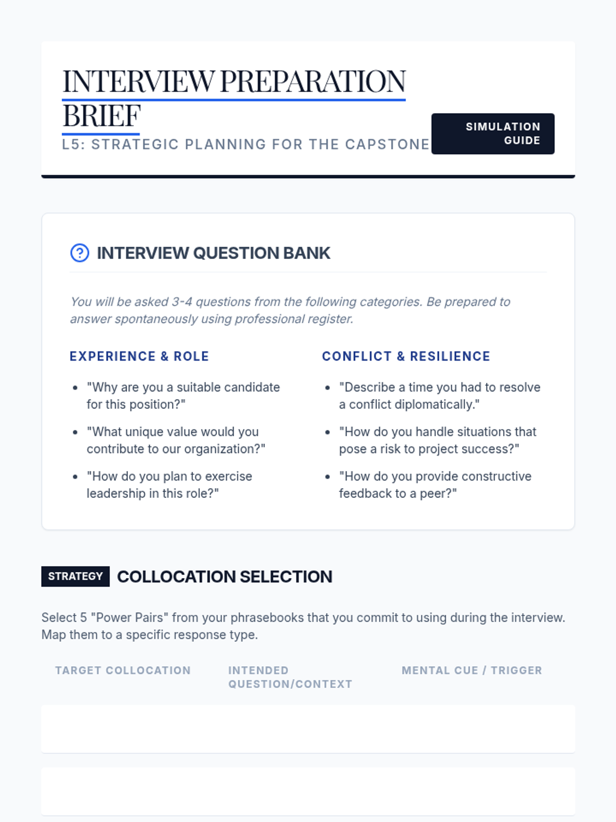 A 5-lesson sequence for 9th Grade Advanced English students focusing on academic collocations, professional register, and diplomatic language to enhance professional credibility and fluency.