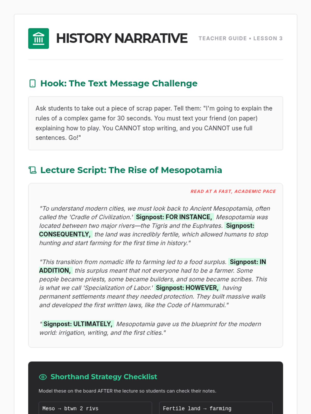 This sequence equips intermediate ESL students with the linguistic and cognitive tools needed to navigate university lectures. It covers discourse markers, hierarchy of information, identifying tangents, note-taking systems, and synthesizing long-form academic speech.