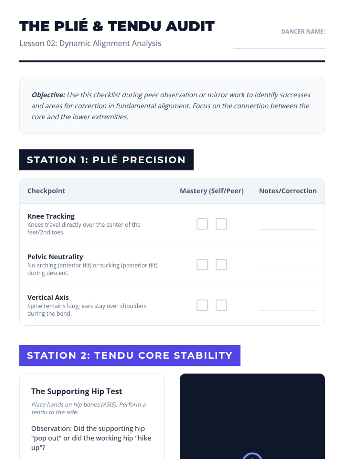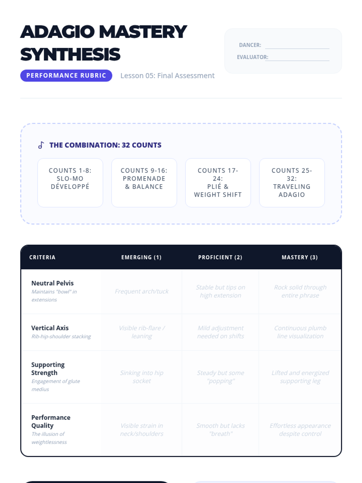 A comprehensive 5-lesson sequence for 10th-grade dance students exploring anatomical alignment, core stability, and their application across various dance genres to improve technique and prevent injury.