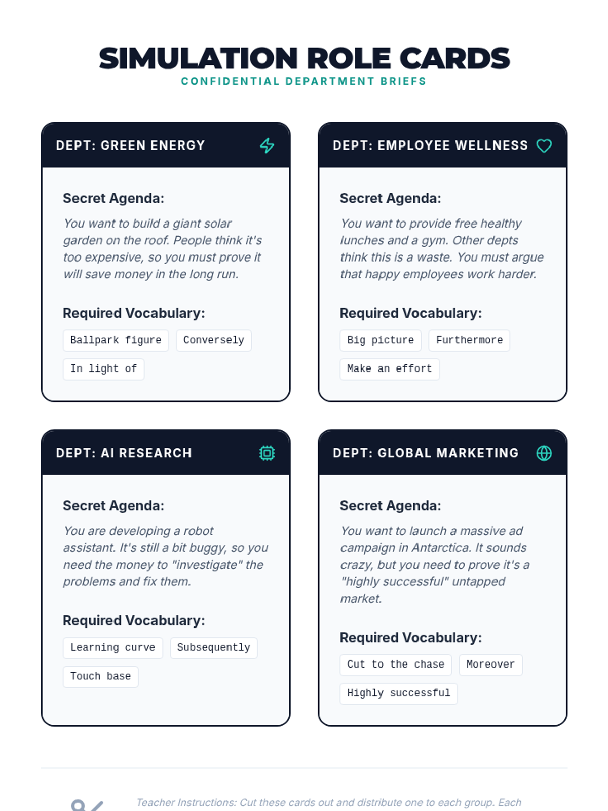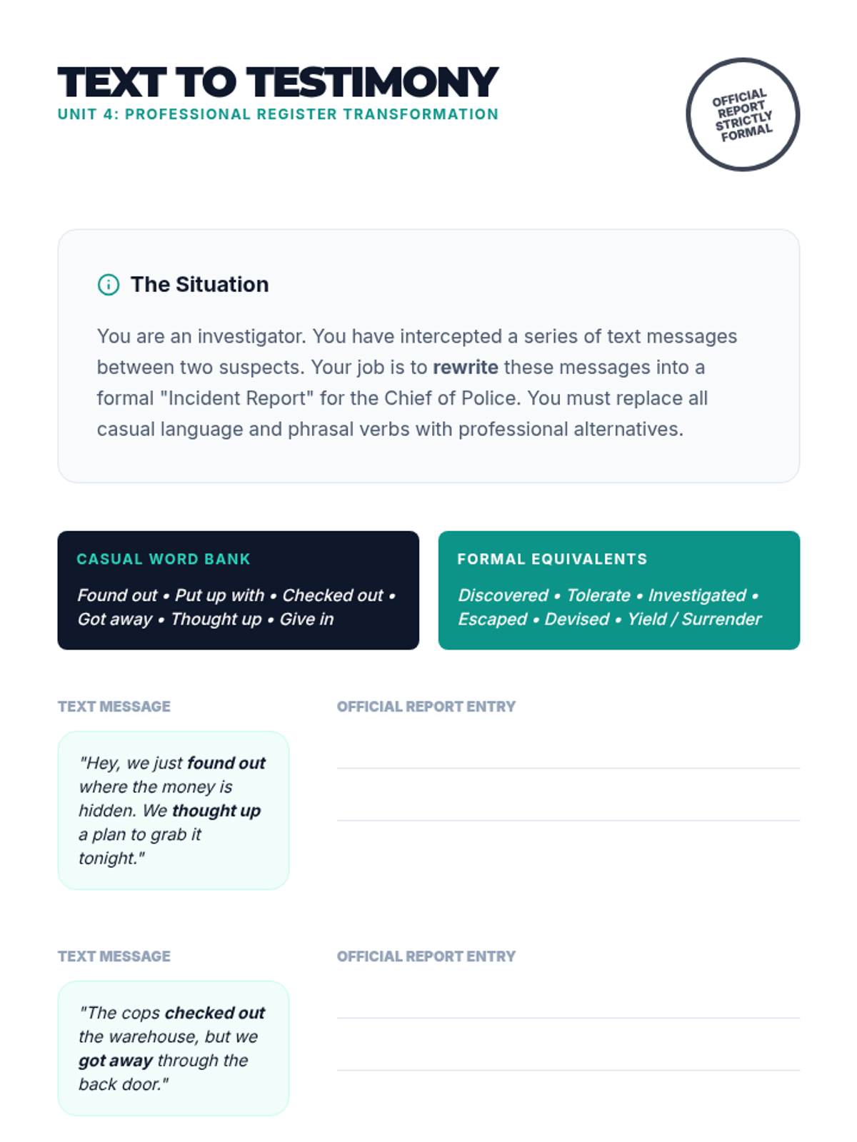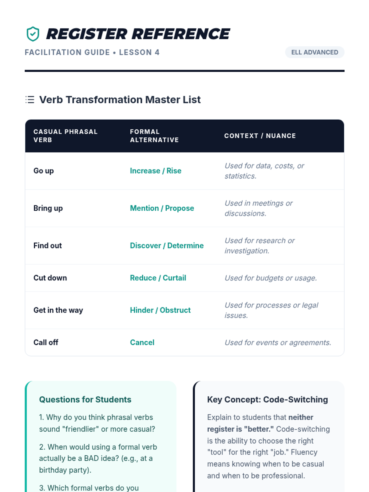 A 5-lesson sequence for graduate students to master idiomatic language, phrasal verbs, and cultural nuances in professional and academic networking environments. Students move from decoding literal meaning to applying figurative language in a high-stakes networking simulation.