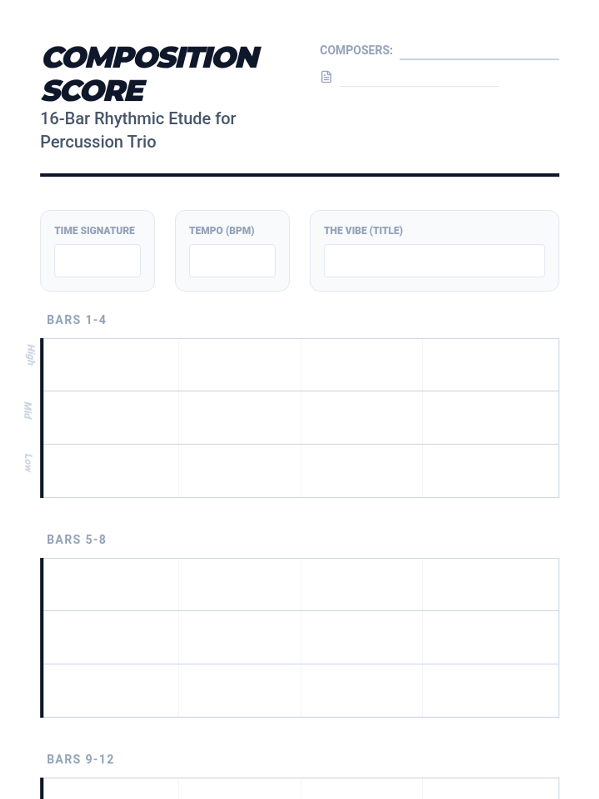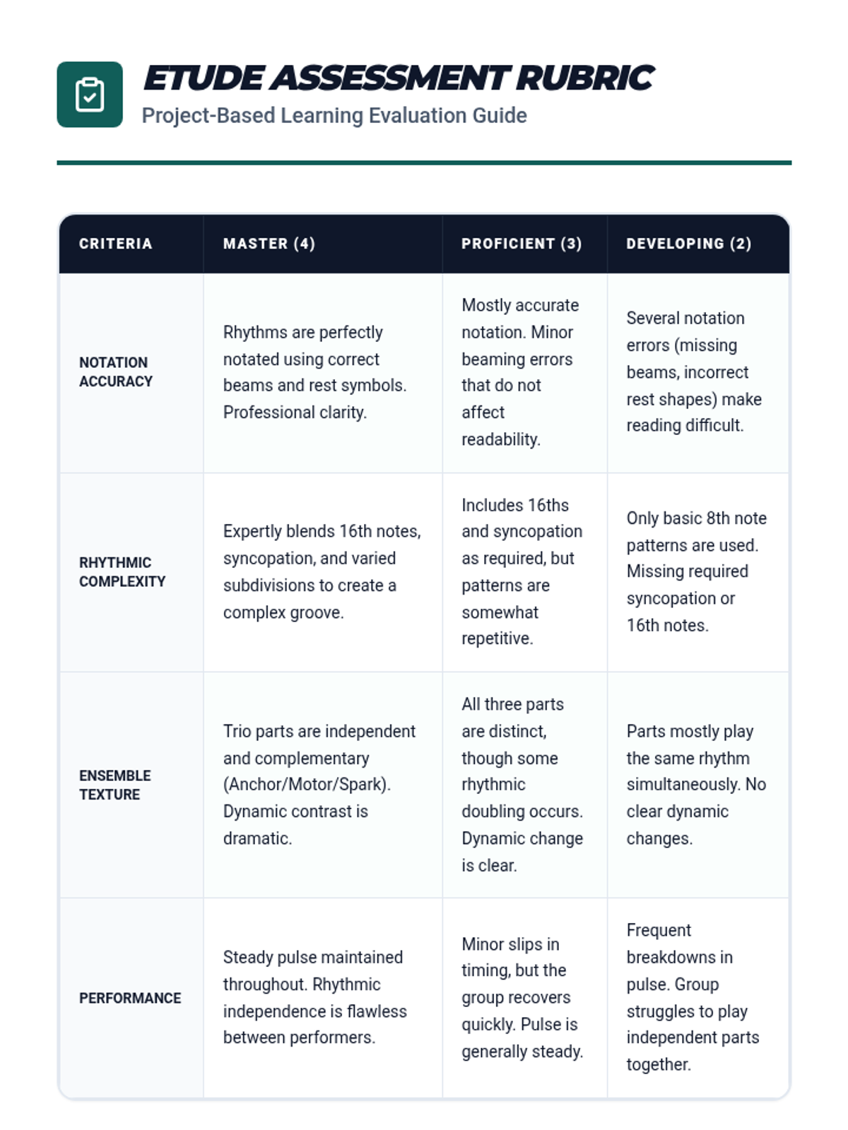 This sequence guides 8th-grade students through the complexities of musical time, covering simple and compound meters, sixteenth note subdivisions, syncopation, and polyrhythms, culminating in a rhythmic composition project. Students will develop skills in rhythmic analysis, notation, and performance to understand how time organization shapes musical genre and emotion.