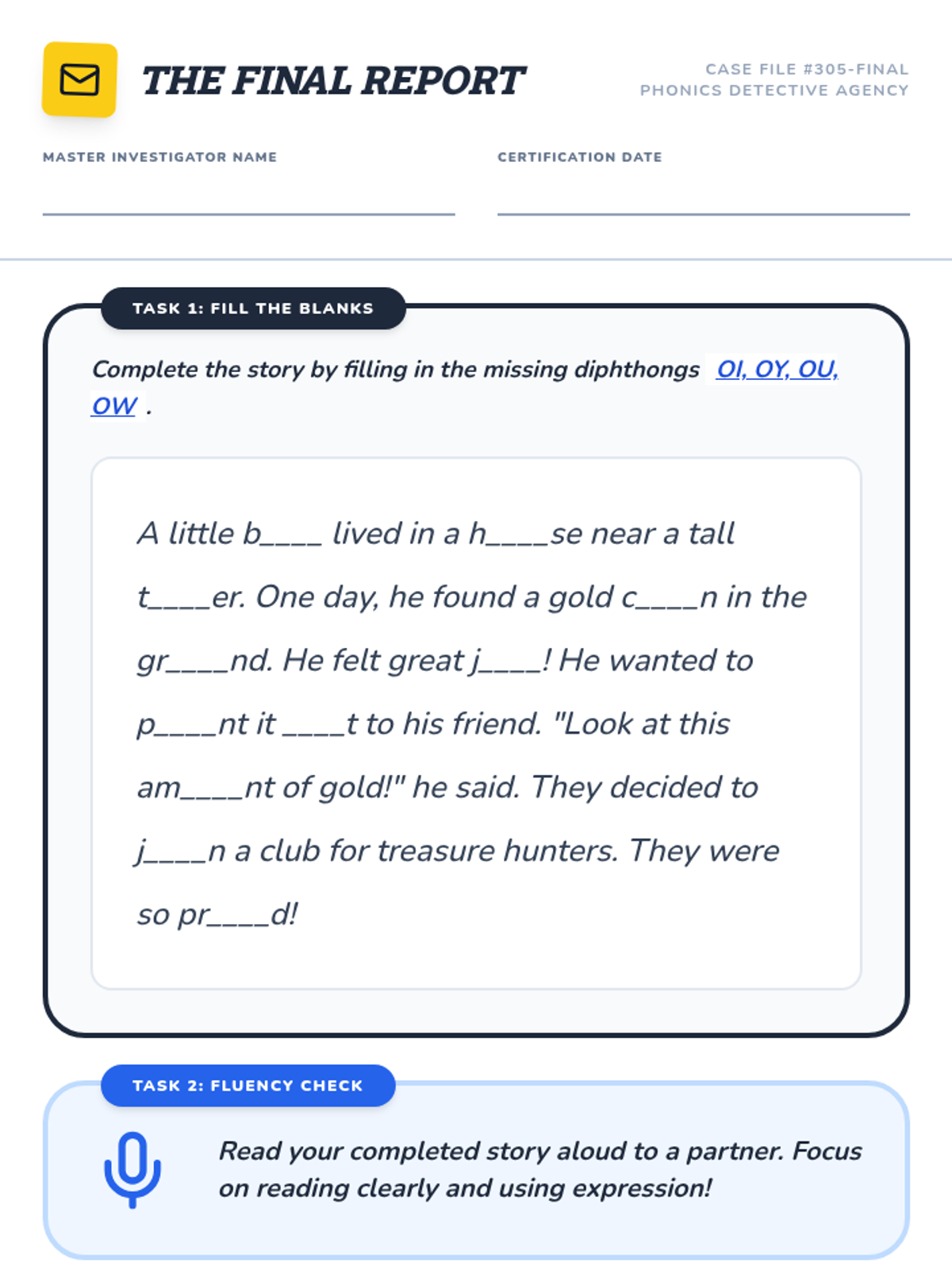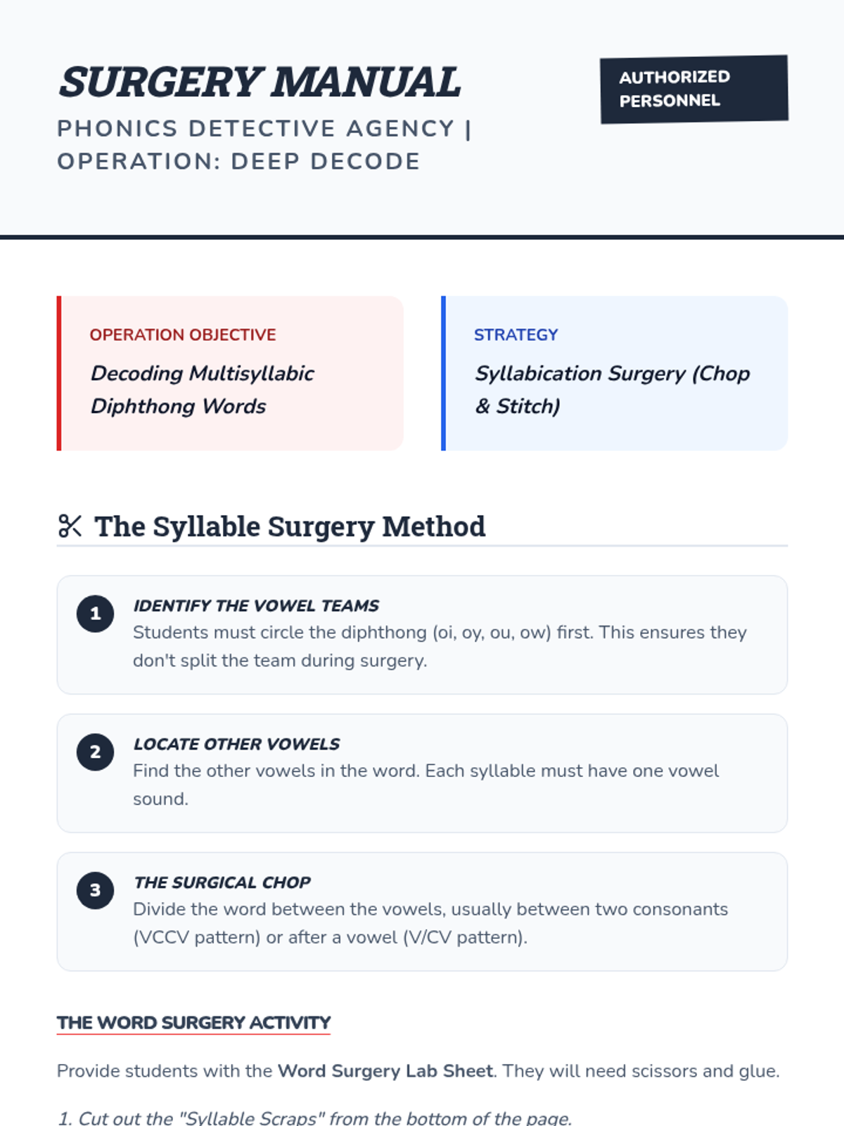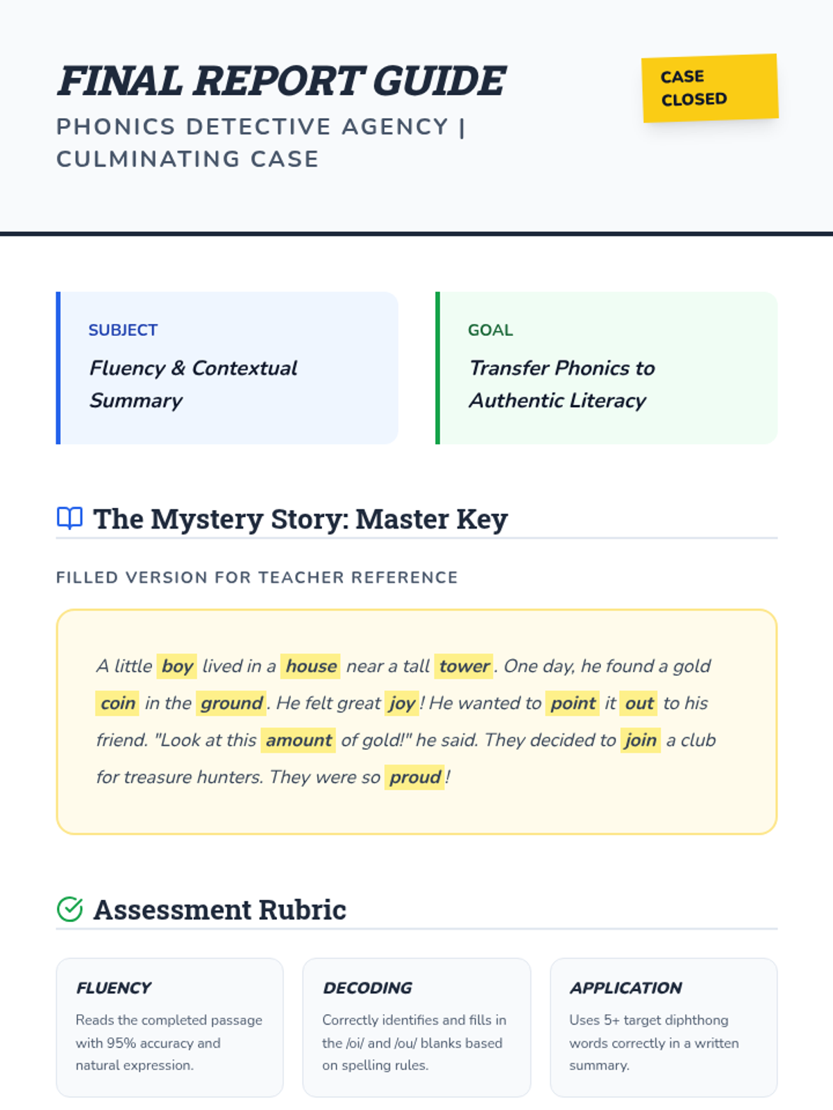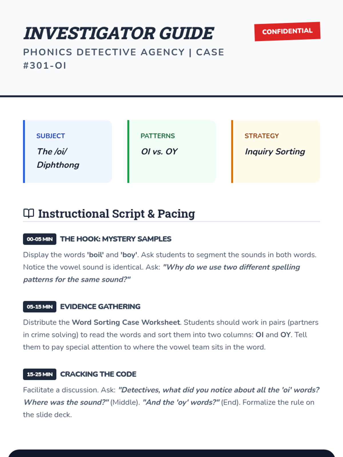 A comprehensive 3rd Grade phonics sequence focusing on the mastery of /oi/ (oi, oy) and /ou/ (ou, ow) diphthongs through inquiry, decoding multisyllabic words, and encoding application.