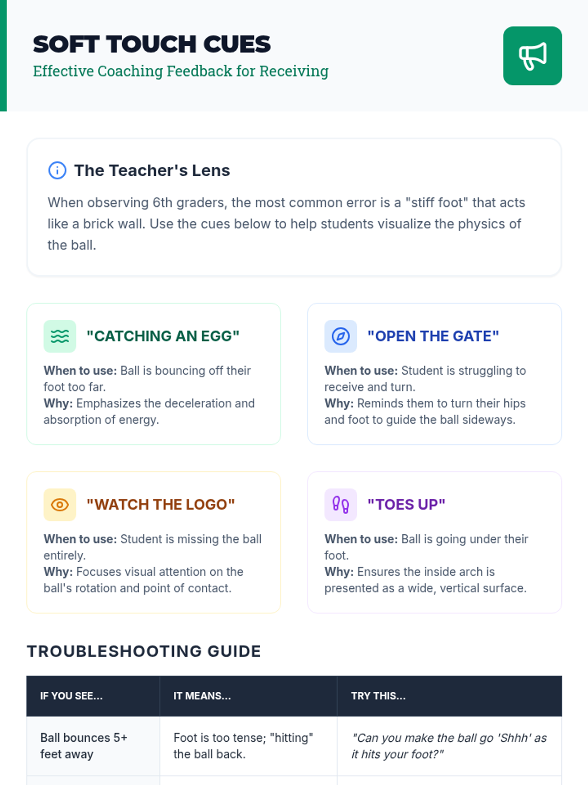 A comprehensive 6th-grade physical education unit focused on the technical and tactical aspects of soccer passing and receiving, emphasizing teamwork, accuracy, and spatial awareness.