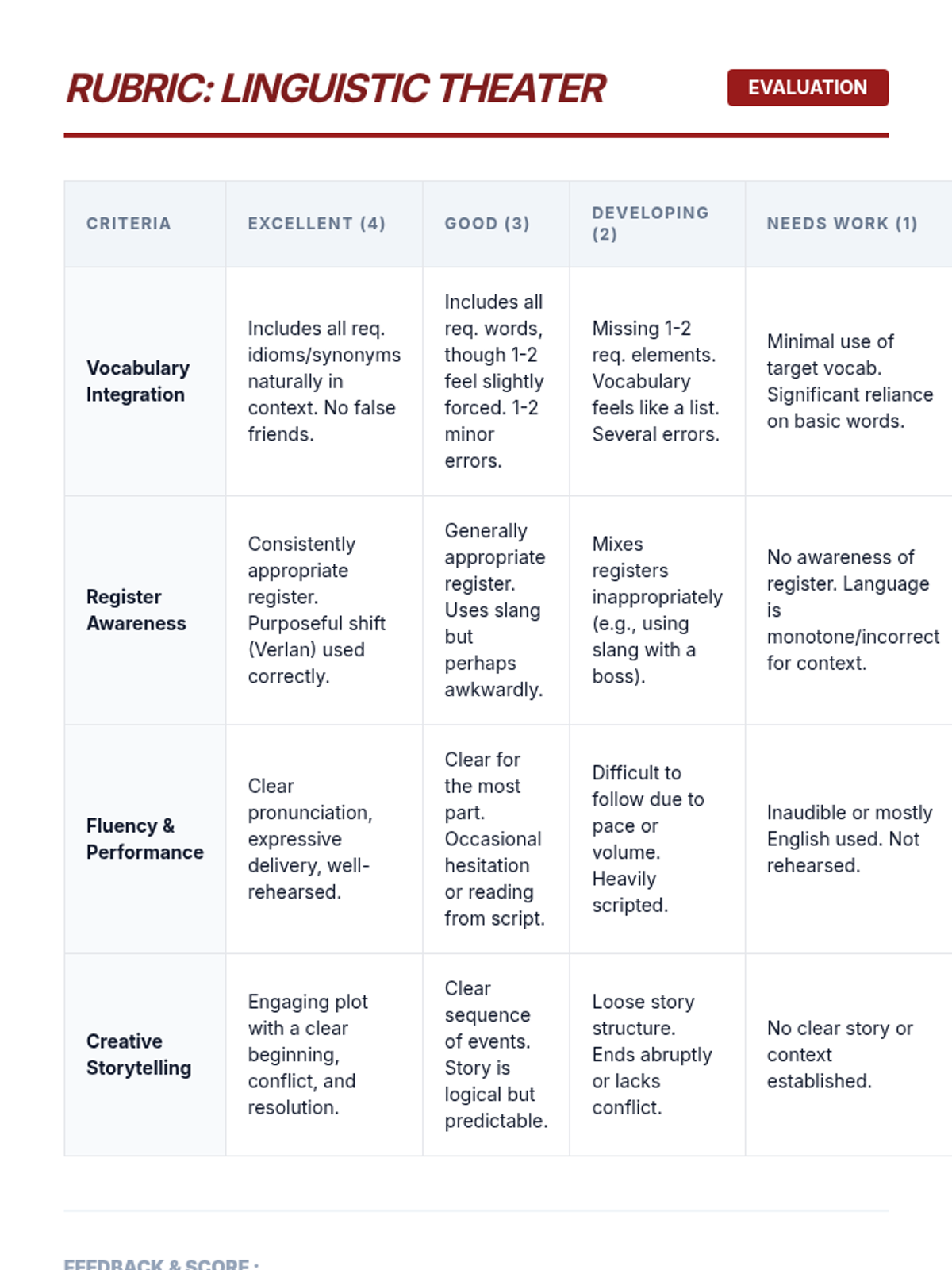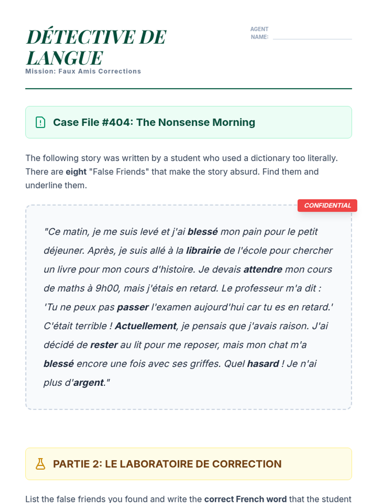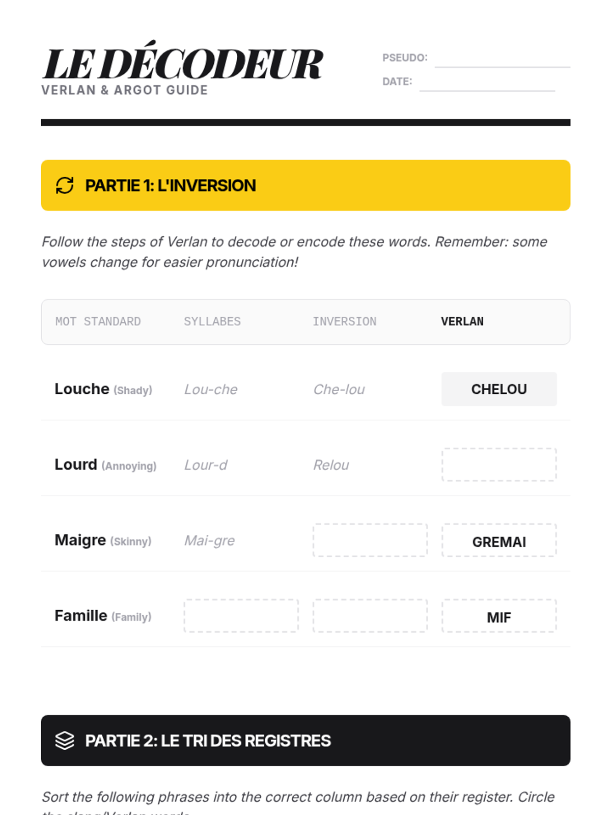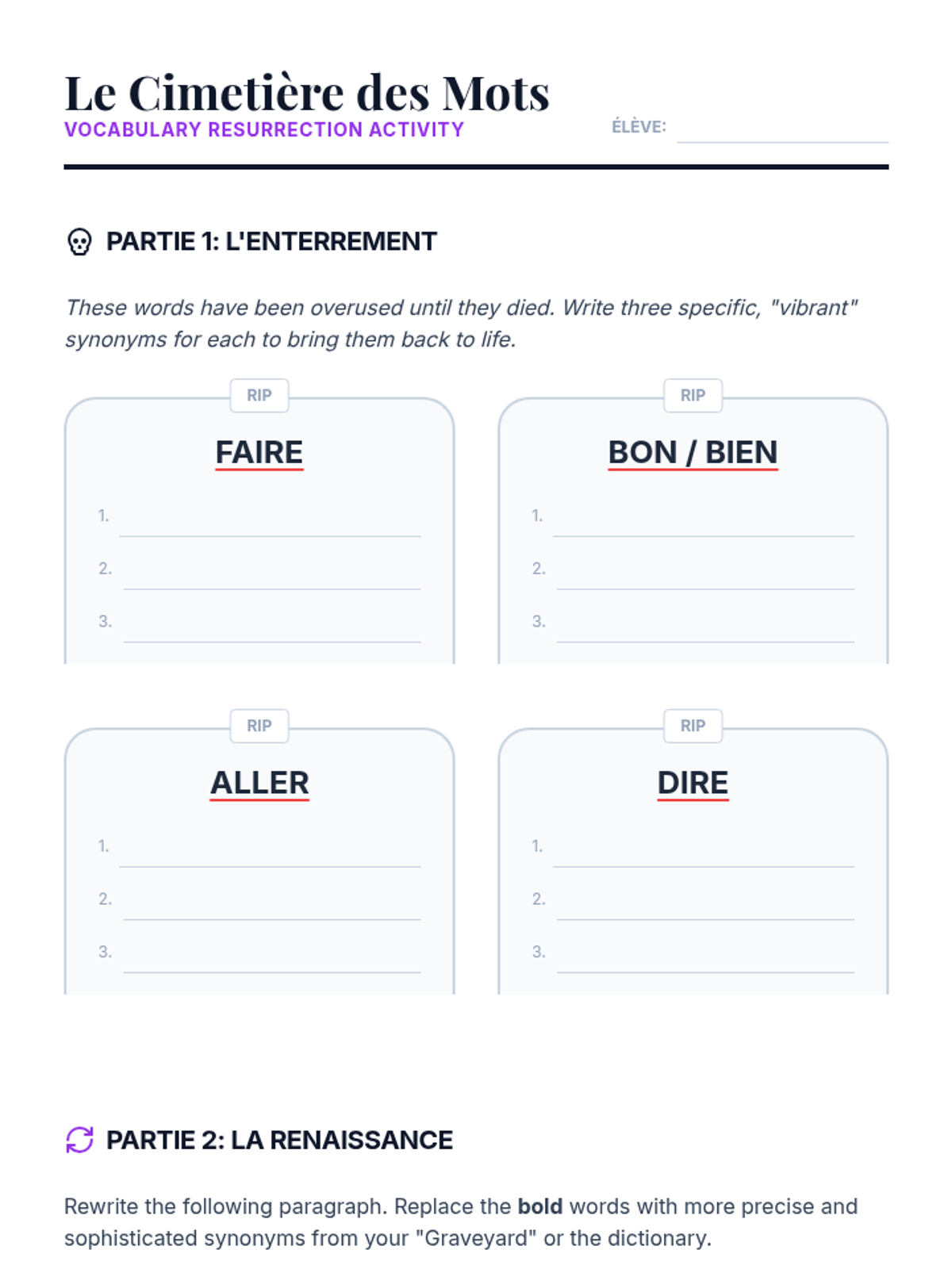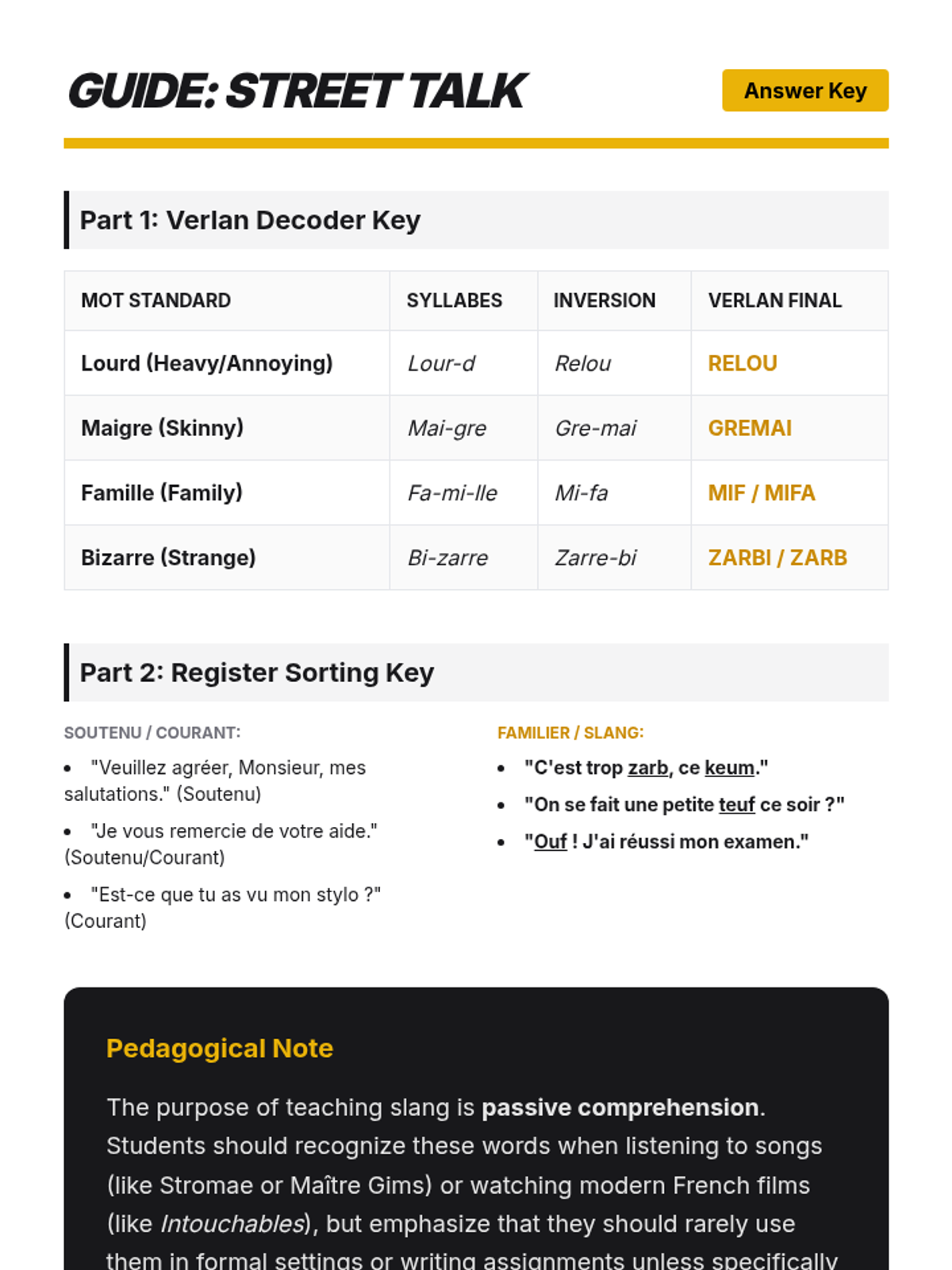A comprehensive 5-lesson unit for 8th-grade French students focused on moving beyond literal translation. Students explore idiomatic expressions, precise synonyms, register and slang (Verlan), and common 'faux amis' to achieve a more natural and nuanced level of communication.