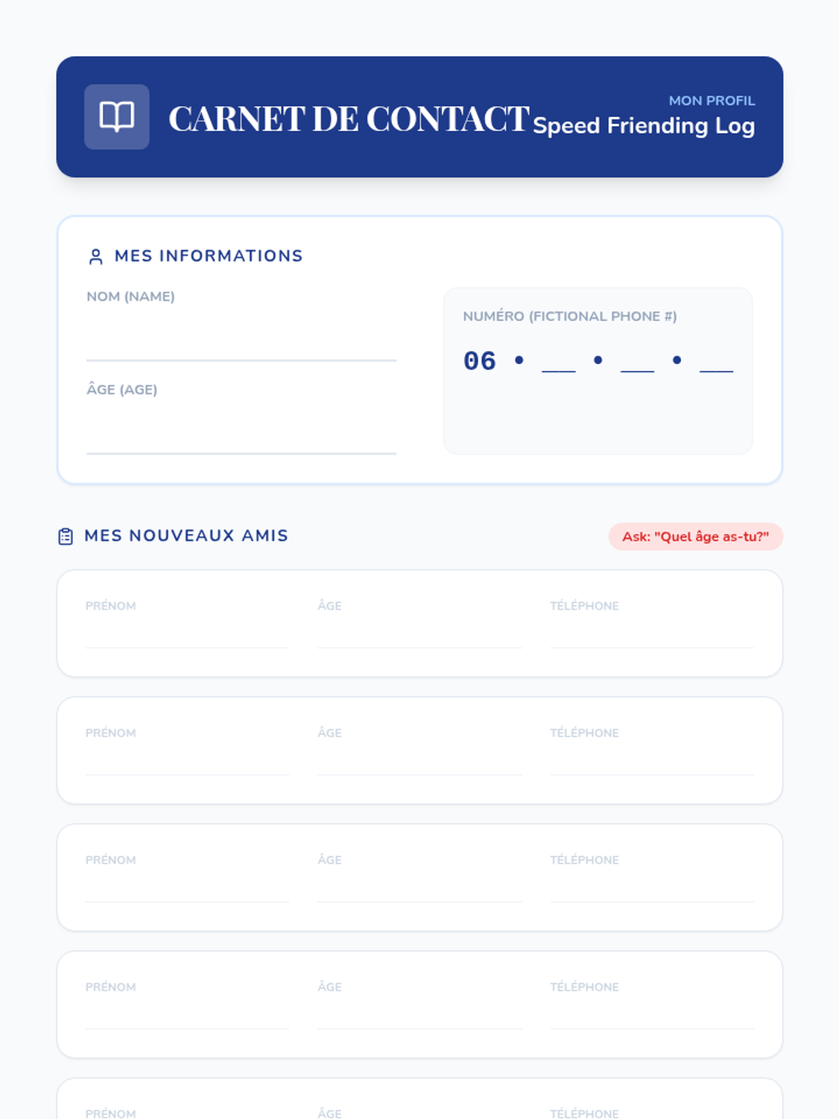 This sequence introduces 3rd-grade students to basic French communication centered on emotions and physical states. Students progress from simple greetings to expressing specific needs and sensations, culminating in a class-wide survey project.