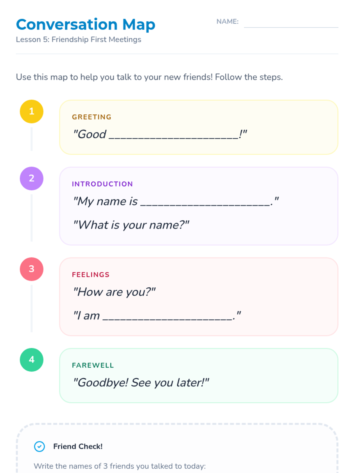 This beginner ELL sequence for 3rd graders covers essential social greetings, self-introductions, expressing emotions, and polite phrases. Through interactive games and simulations, students build the confidence to navigate first-time encounters in English.