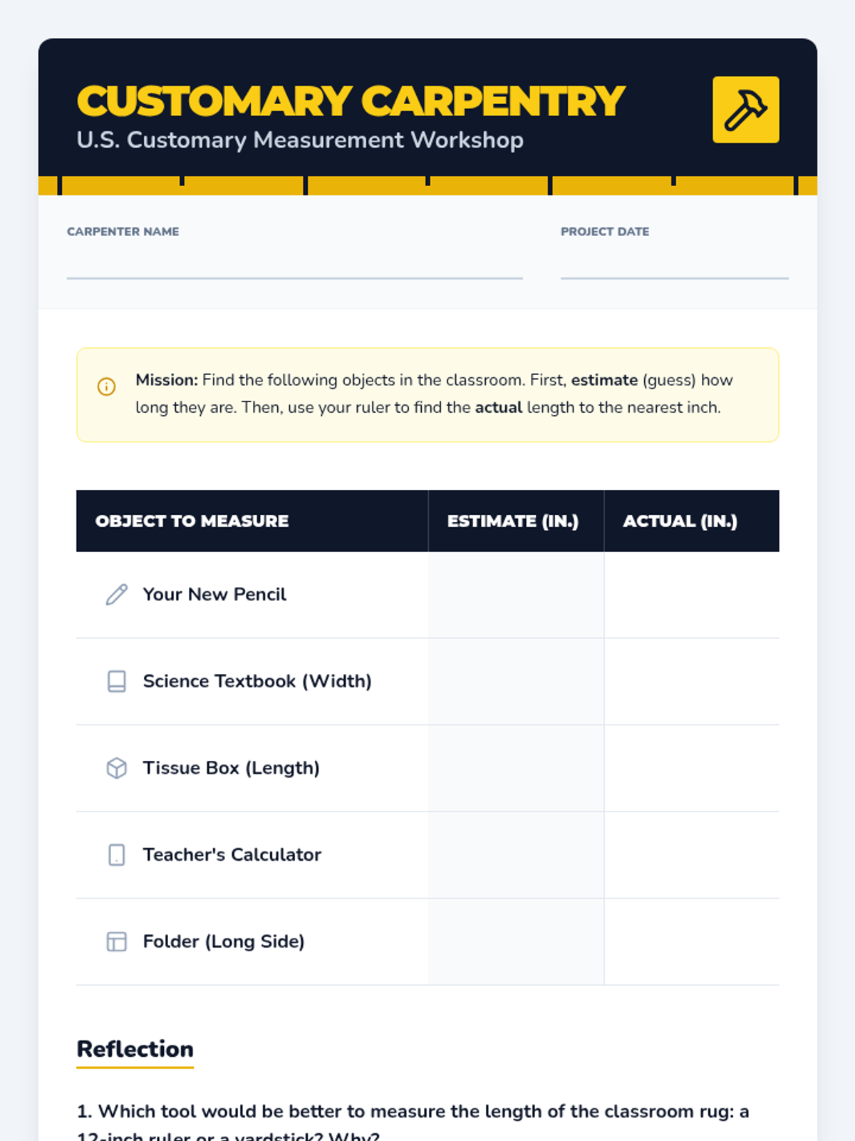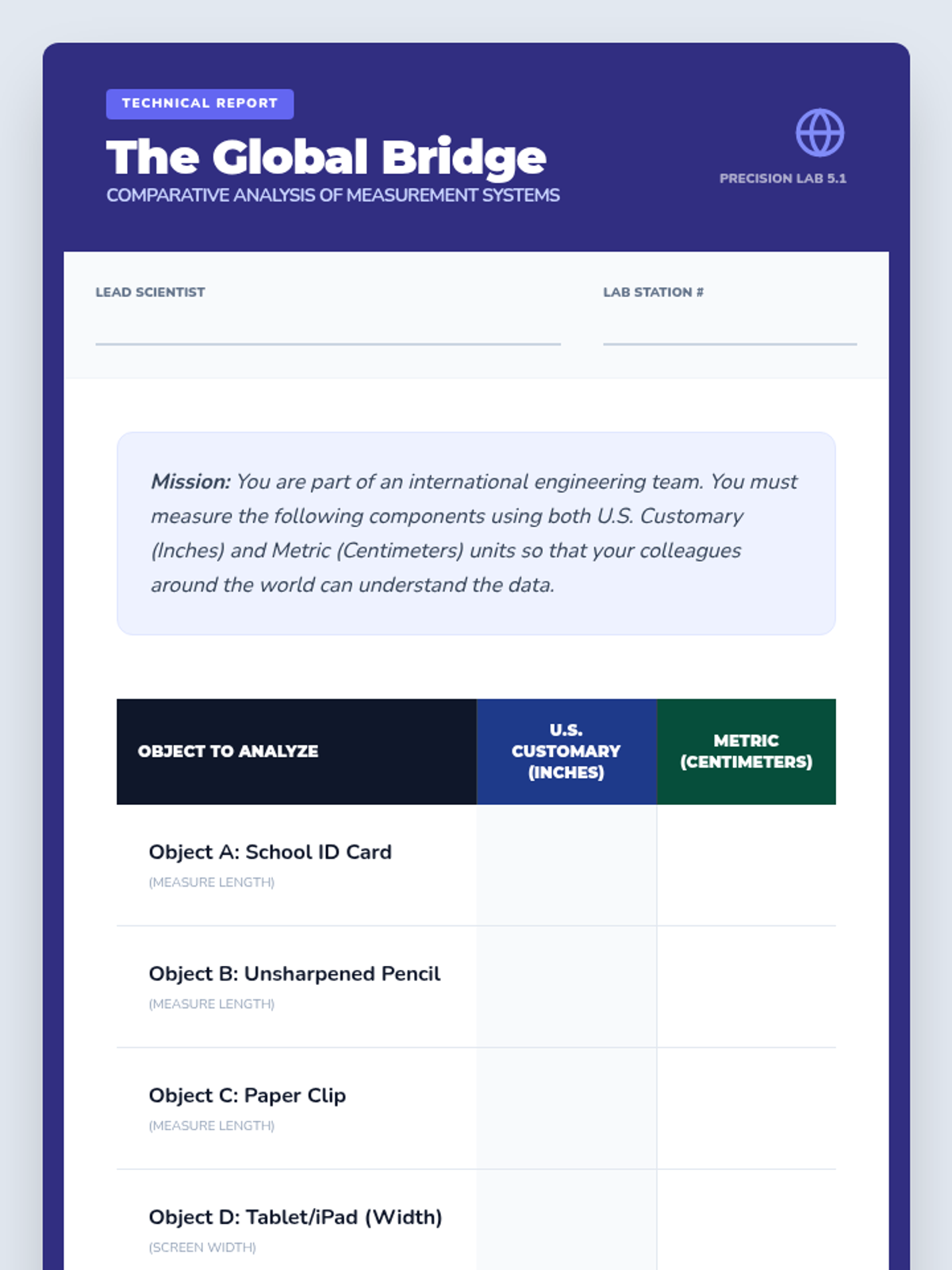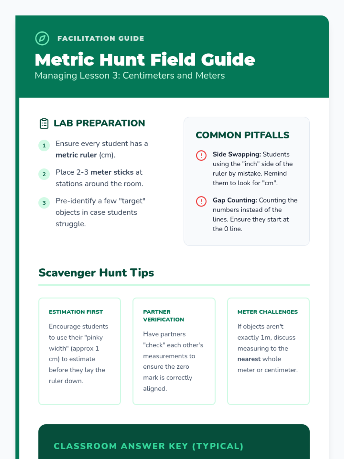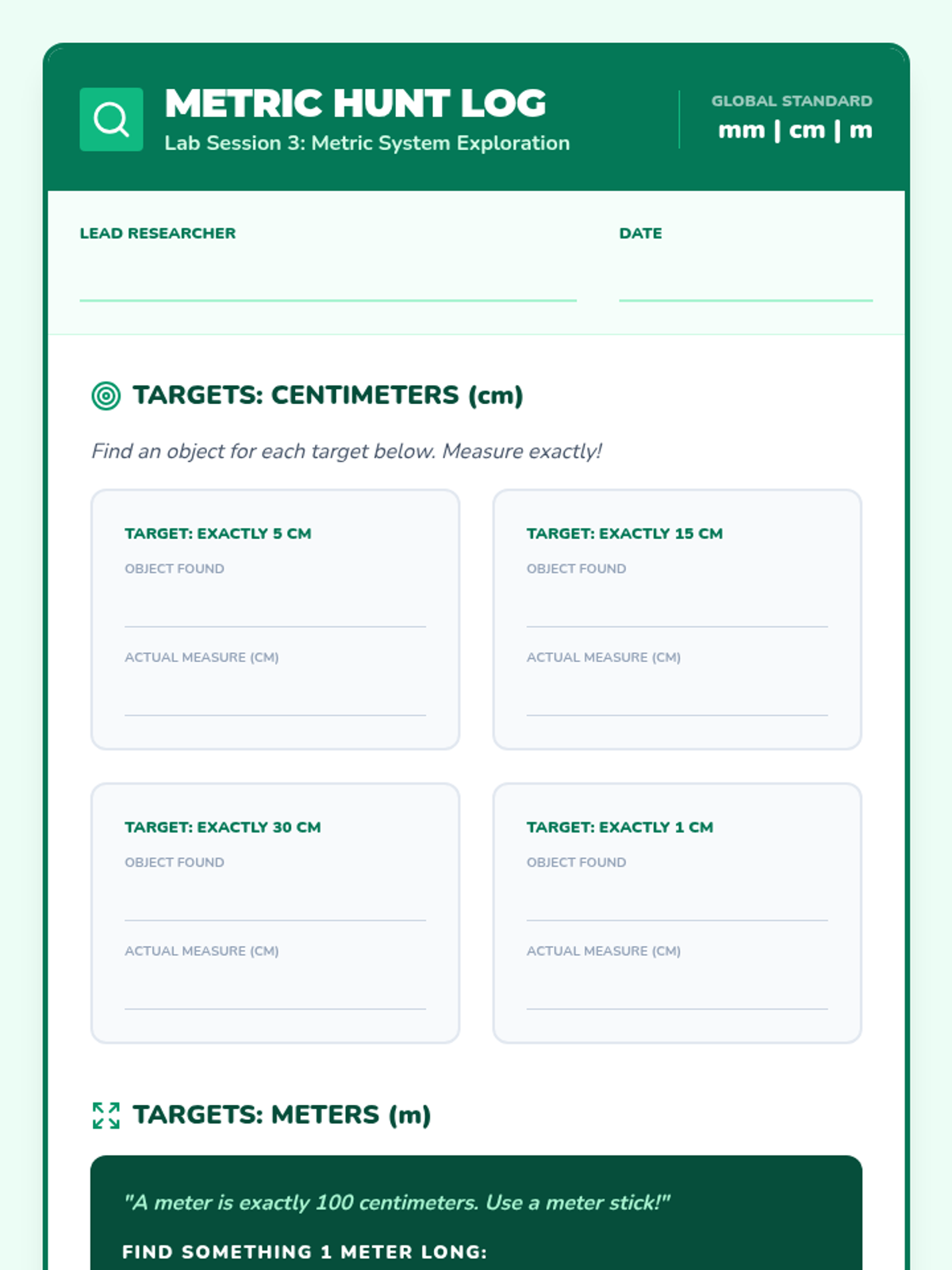 A comprehensive 3rd-grade sequence introducing students to the fundamental skills of linear measurement using both U.S. Customary and Metric systems, moving from non-standard units to fractional precision.