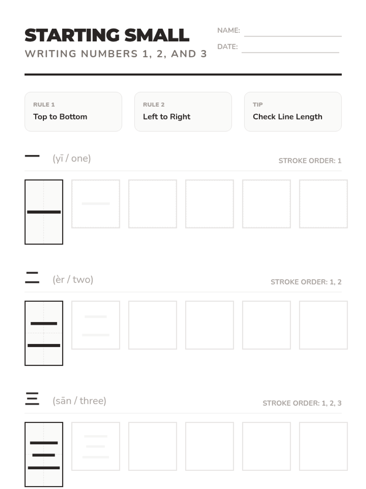 A comprehensive introduction to Mandarin Chinese writing for 3rd graders, focusing on the eight fundamental strokes, essential stroke order rules, and writing numbers 1-10 with proper form and balance.