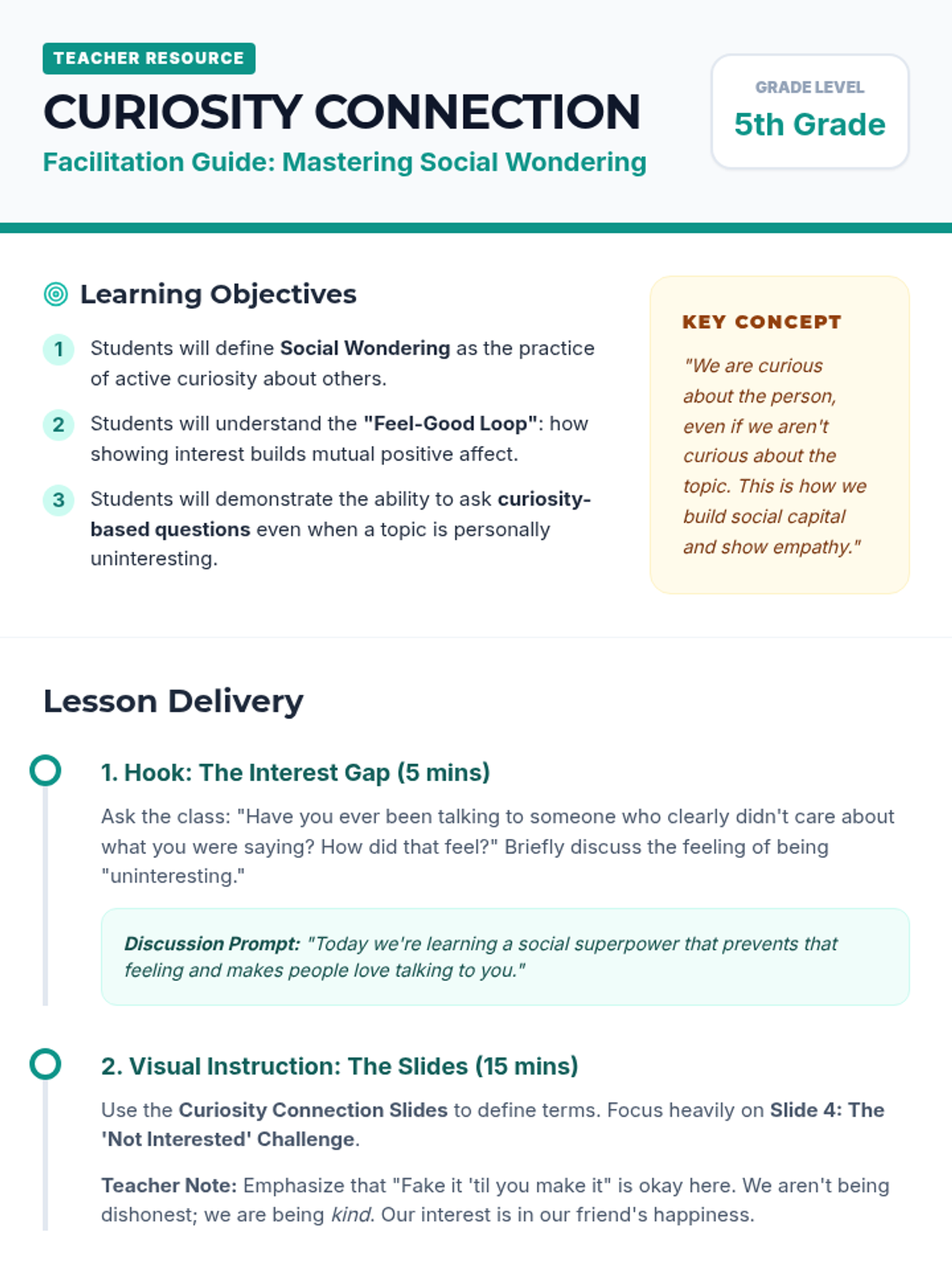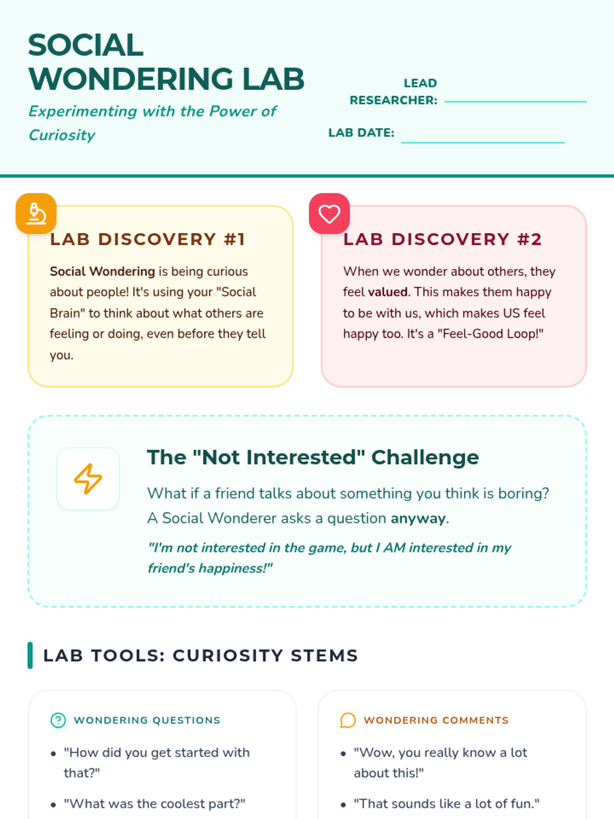 A series of lessons designed to build social-emotional skills, focusing on perspective-taking, conversational skills, and empathy.