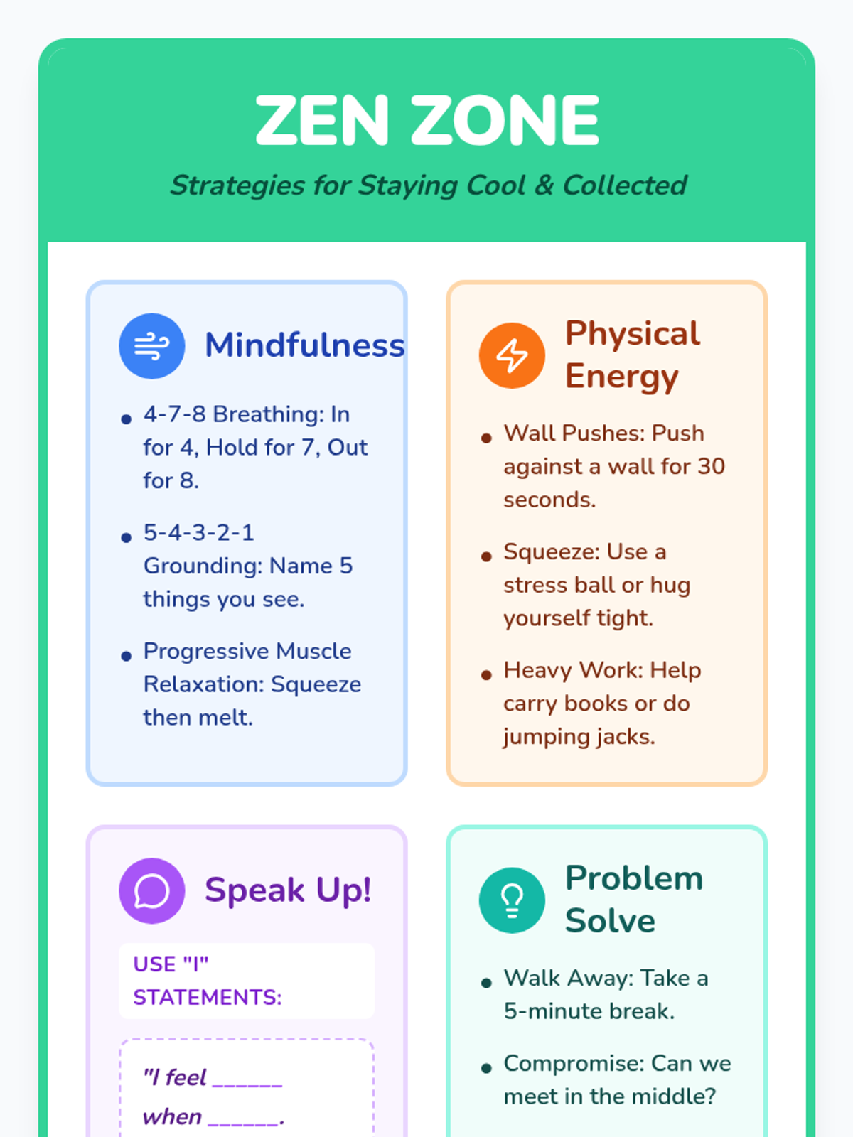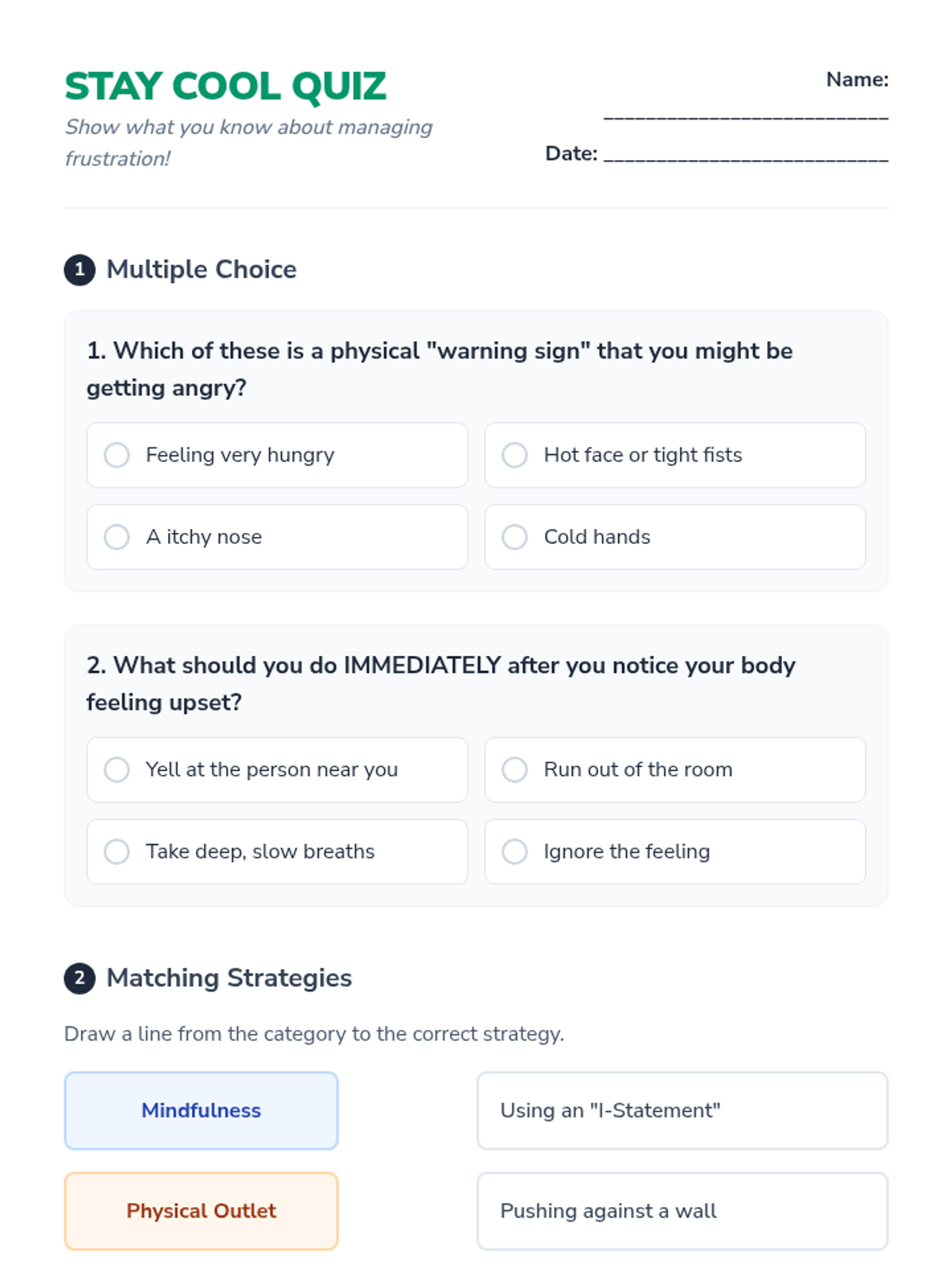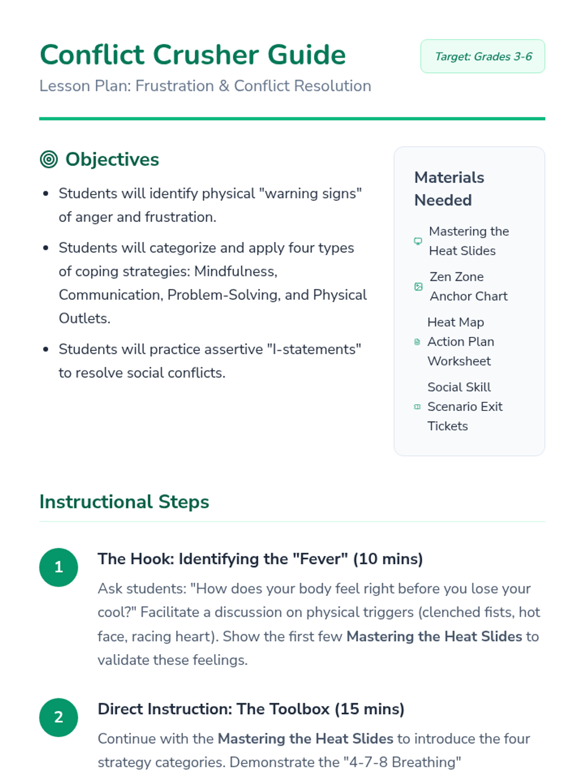 A comprehensive unit designed to help students identify triggers, manage frustration, and navigate social conflicts using assertive communication and self-regulation techniques.