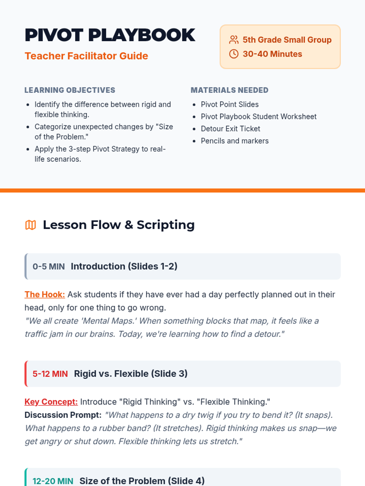 A sequence focused on social-emotional learning skills, specifically emotional regulation and flexible thinking when plans change.