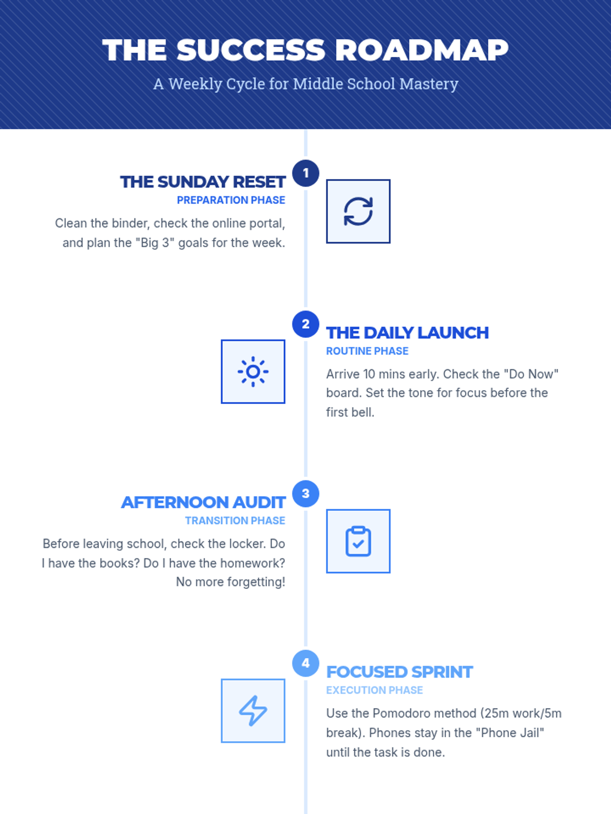 A comprehensive set of resources for middle school parents to support their children with academic success, organization, and time management.