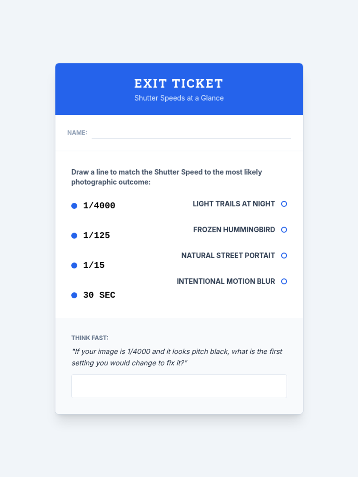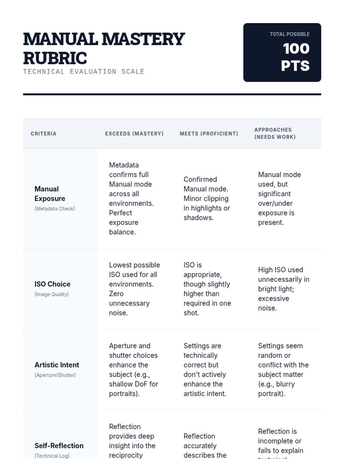 This comprehensive sequence guides 11th-grade students through the technical mechanics of photography, focusing on the 'Exposure Triangle'—ISO, aperture, and shutter speed. Students move from automatic settings to full manual control, learning how technical choices drive artistic expression.