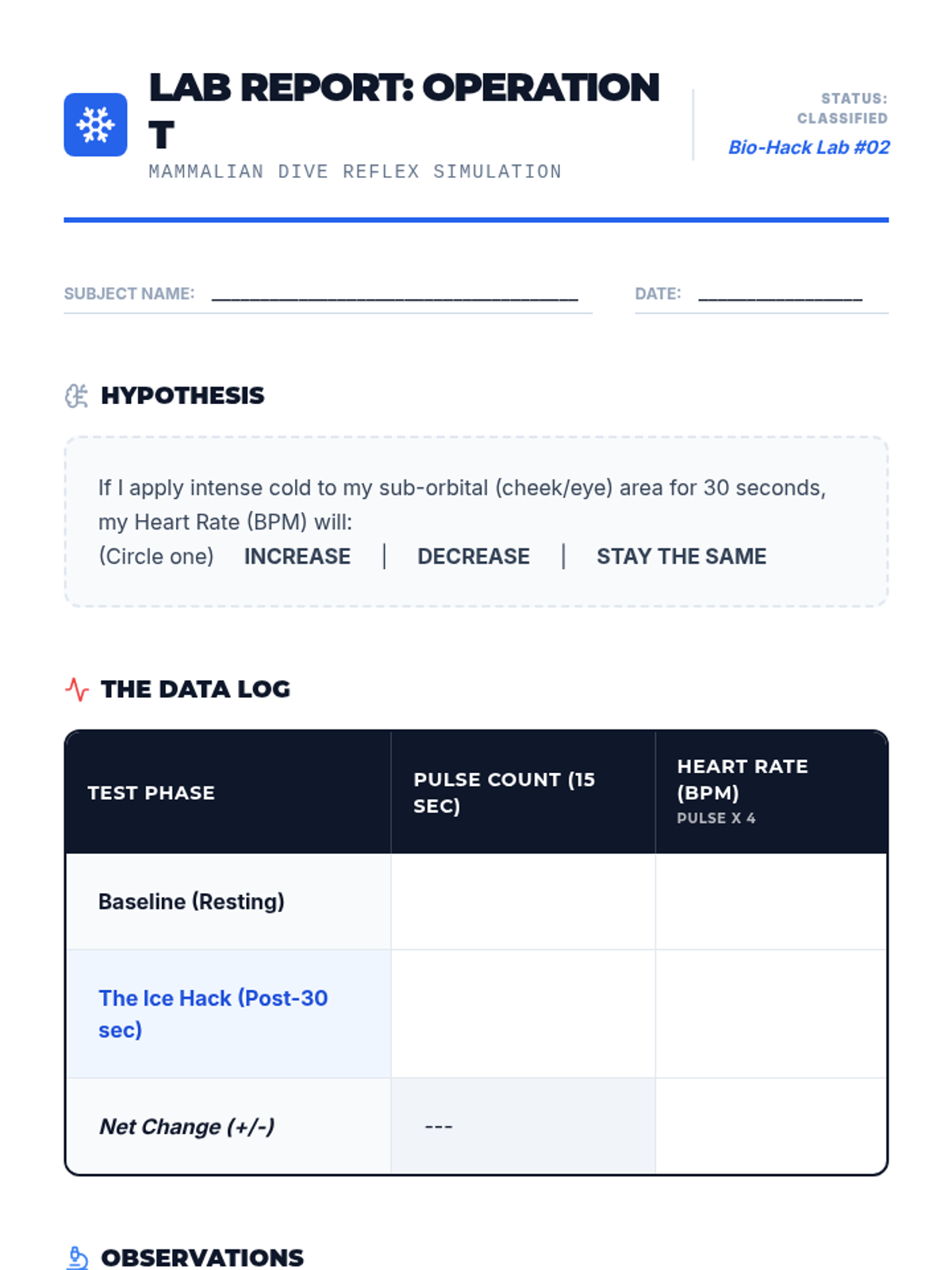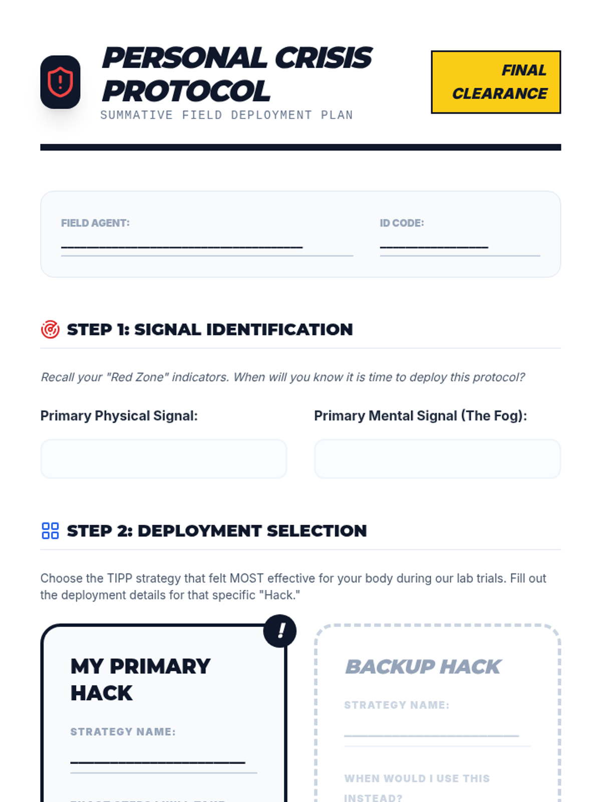 A comprehensive sequence for 9th-grade students on TIPP crisis survival skills, focusing on physiological regulation to manage acute emotional distress. Students learn the biological mechanics of the mammalian dive reflex, intense exercise, paced breathing, and paired muscle relaxation.