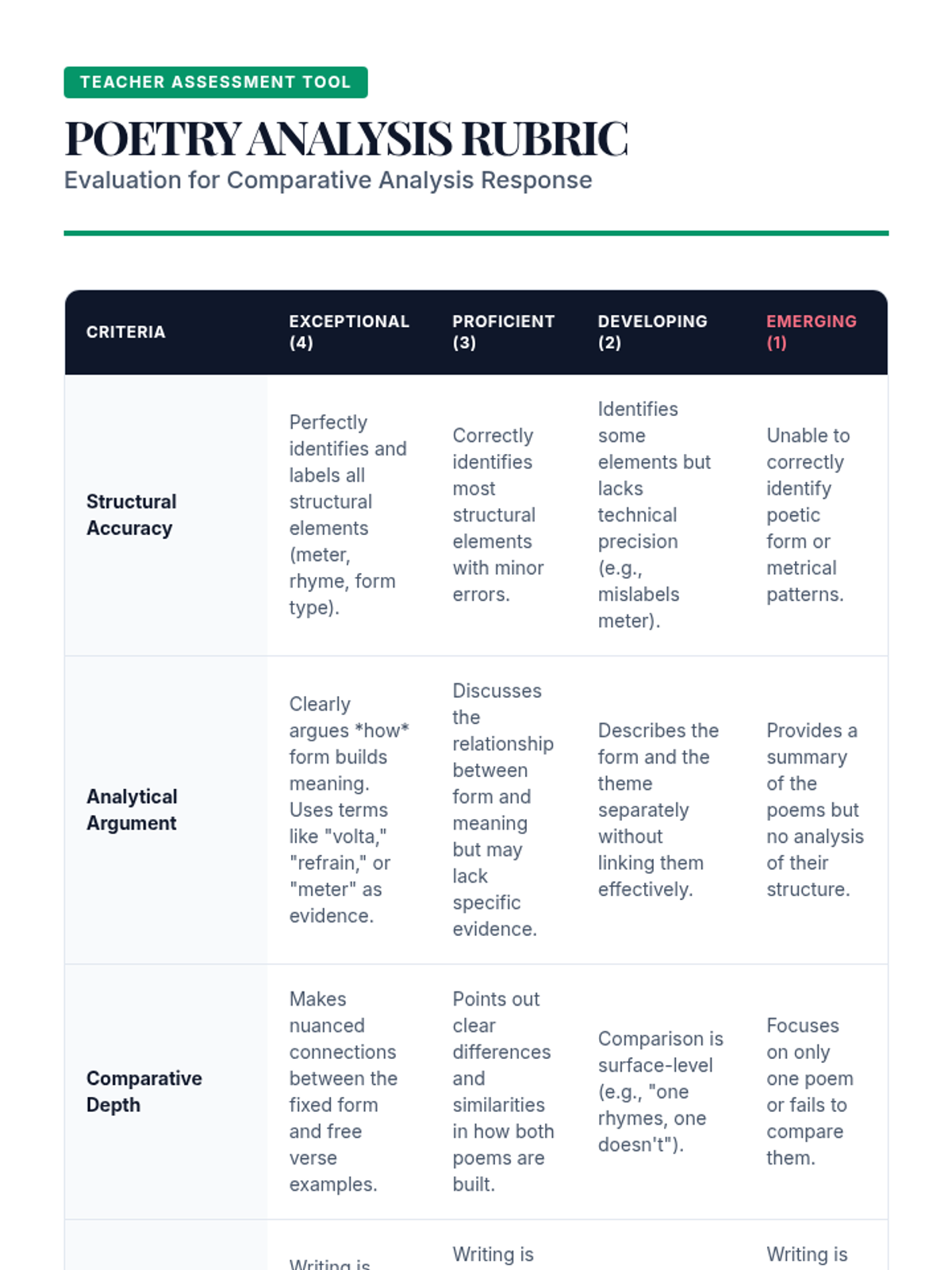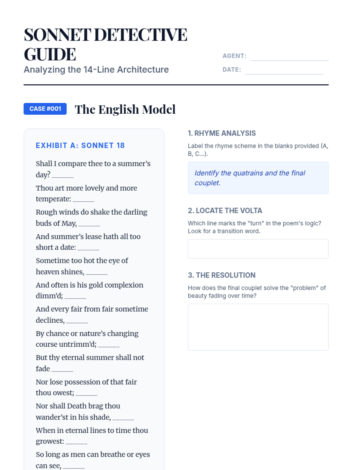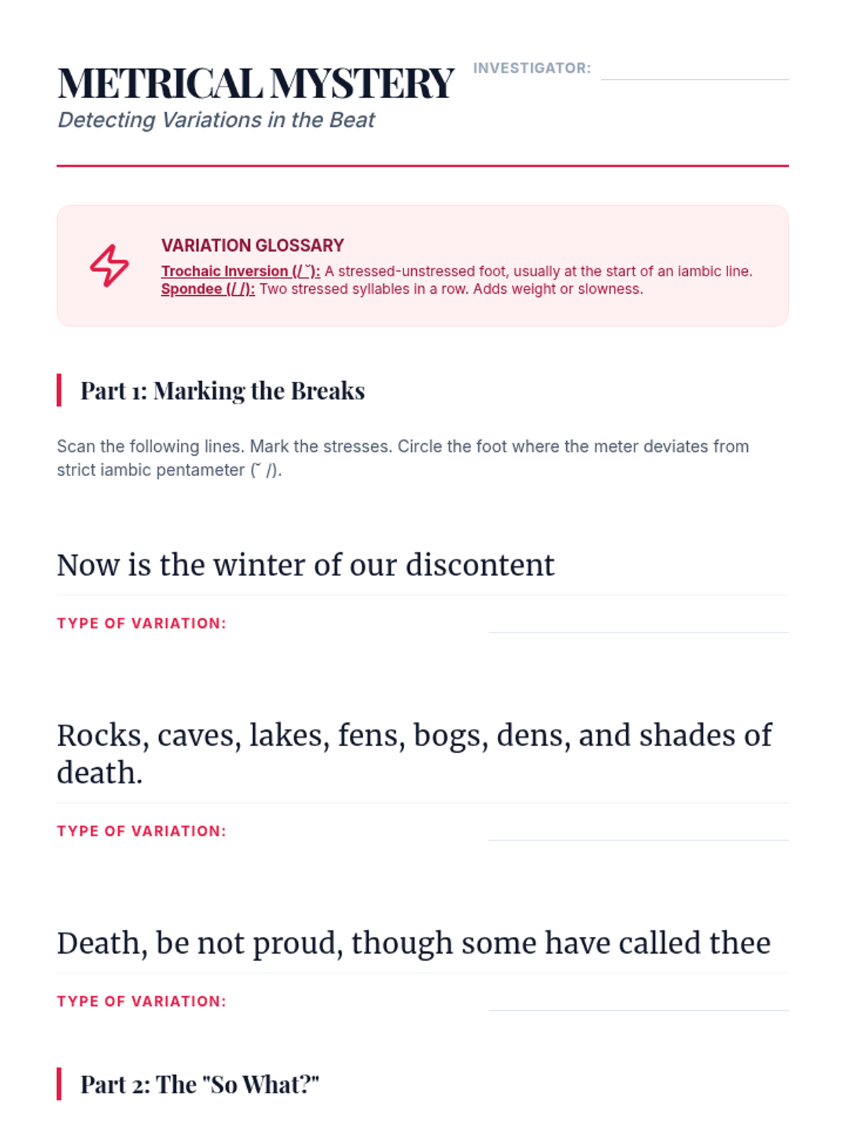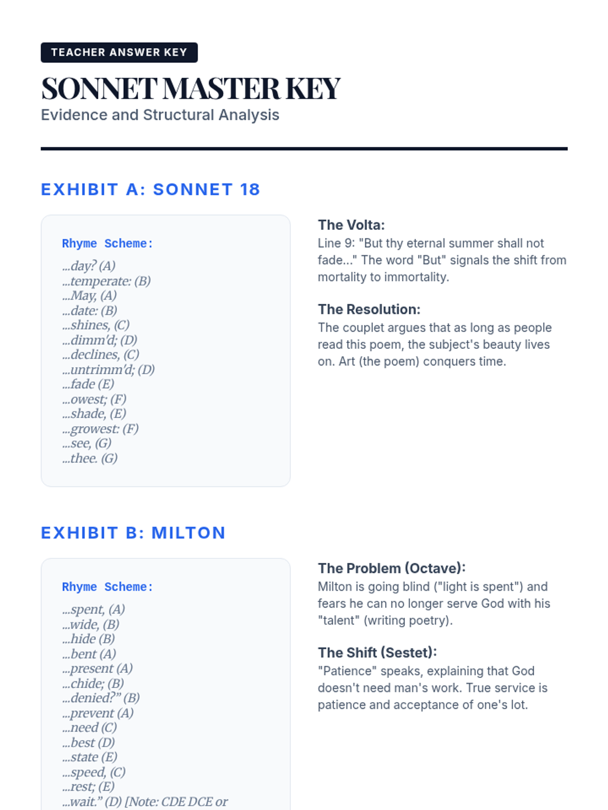 A comprehensive unit on the structural foundations of poetry, focusing on scansion, iambic pentameter, sonnets, and villanelles. Students analyze how rigid poetic forms like the sonnet and villanelle use constraint to build meaning and how metrical variations signal thematic shifts.
