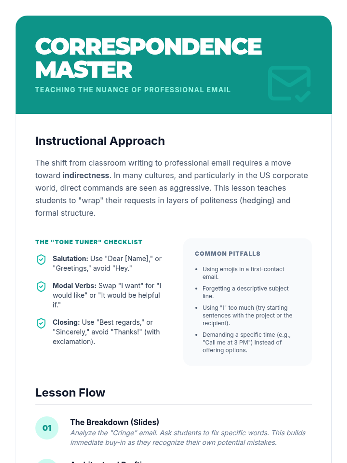 This sequence for graduate ESL students explores the nuances of English beyond literal meaning. Students will master the ability to detect sarcasm, bias, contrastive stress, and professional register, equipping them for complex academic and professional communication.
