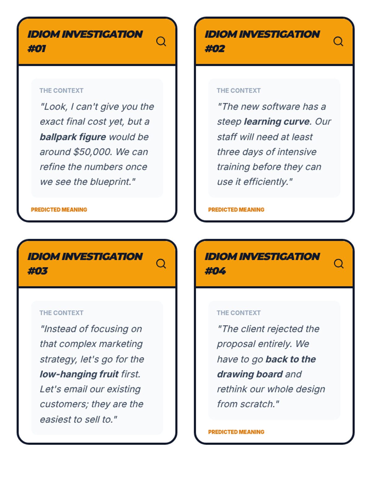 An intermediate ESL sequence where students act as 'communication detectives' to analyze tone, idioms, exaggeration, and speaker intent in spoken English. The sequence culminates in a mystery simulation requiring students to synthesize all listening skills to solve a case.