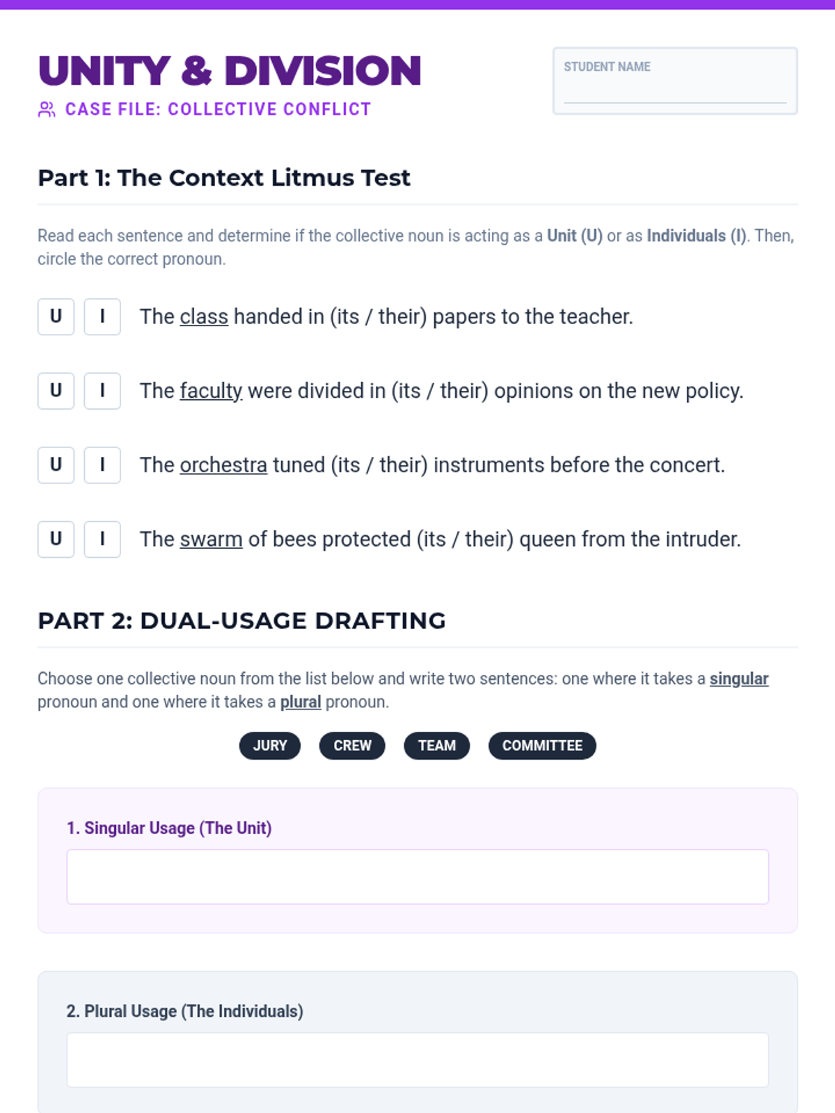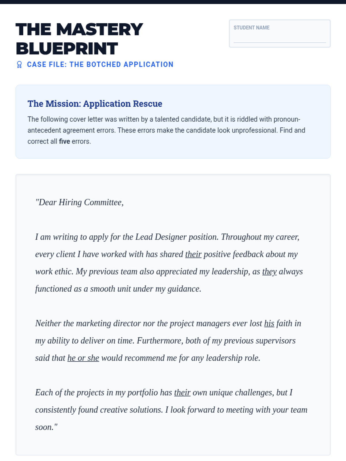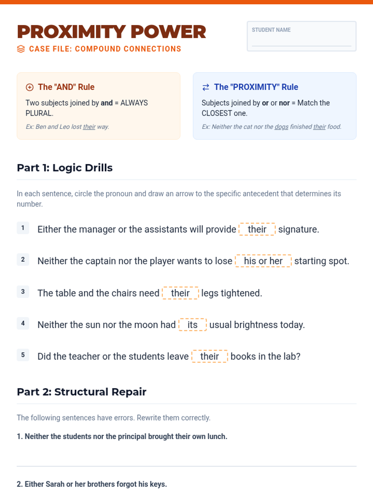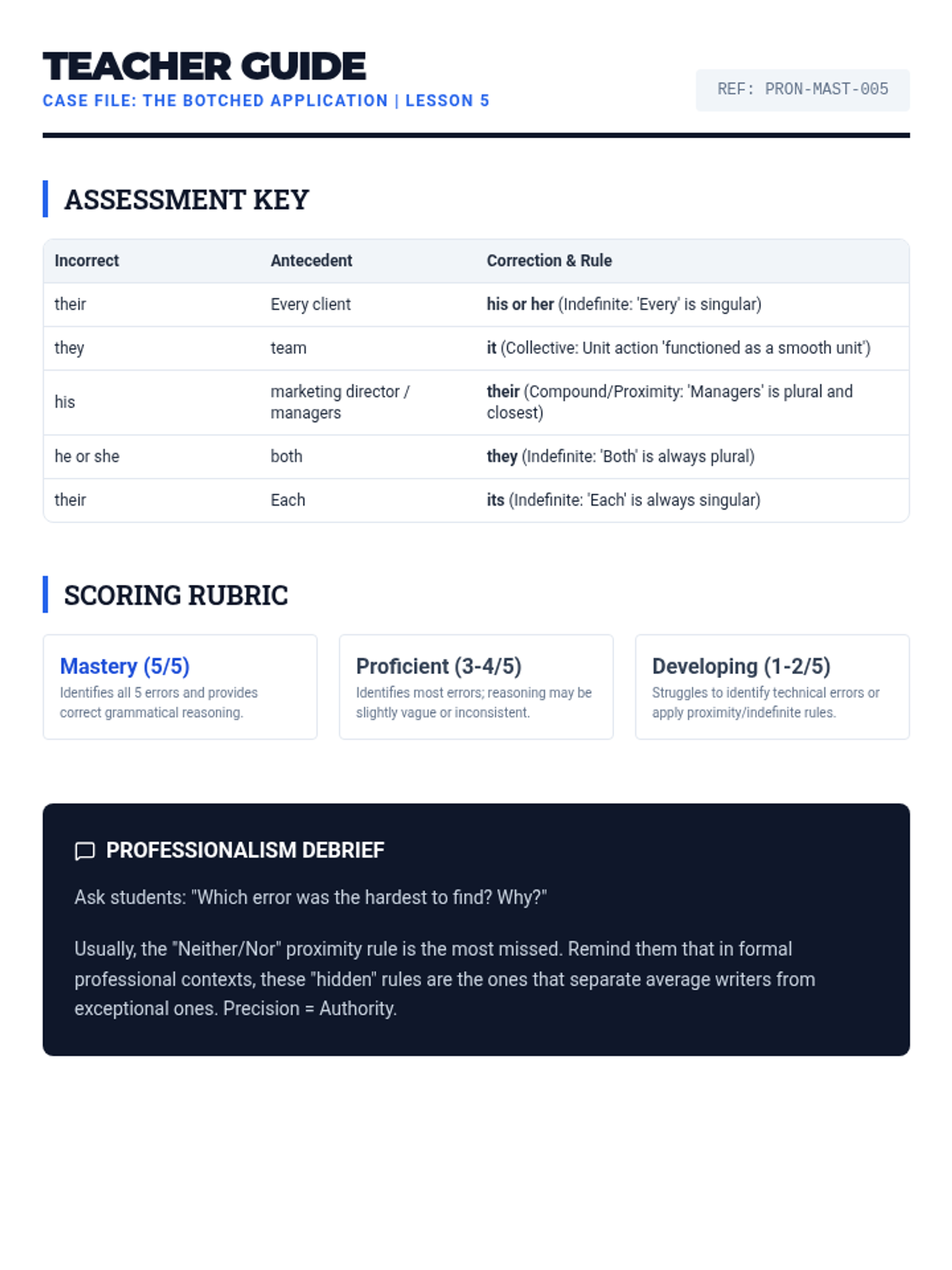 A comprehensive 9th-grade grammar sequence focusing on the complexities of pronoun-antecedent agreement, from basic number and gender to challenging cases with indefinite pronouns, compound subjects, and collective nouns.