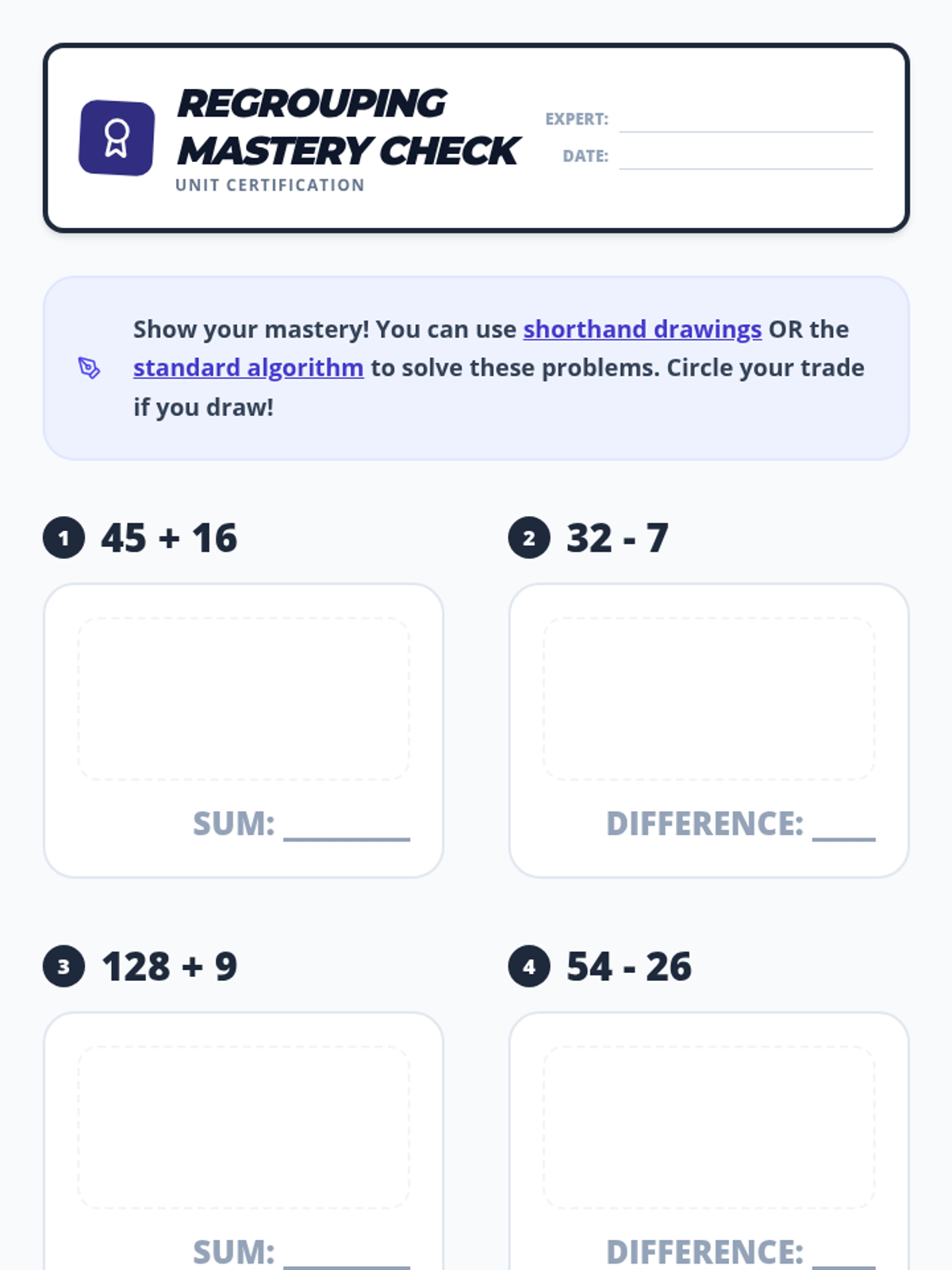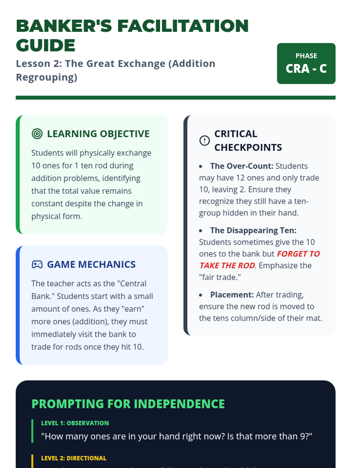 This sequence uses a Concrete-Representational-Abstract (CRA) approach to help 3rd-grade students in special education master multi-digit addition and subtraction. It moves from physical base-ten blocks to shorthand drawings and finally to the standard numeric algorithm, emphasizing the conceptual 'why' behind regrouping.