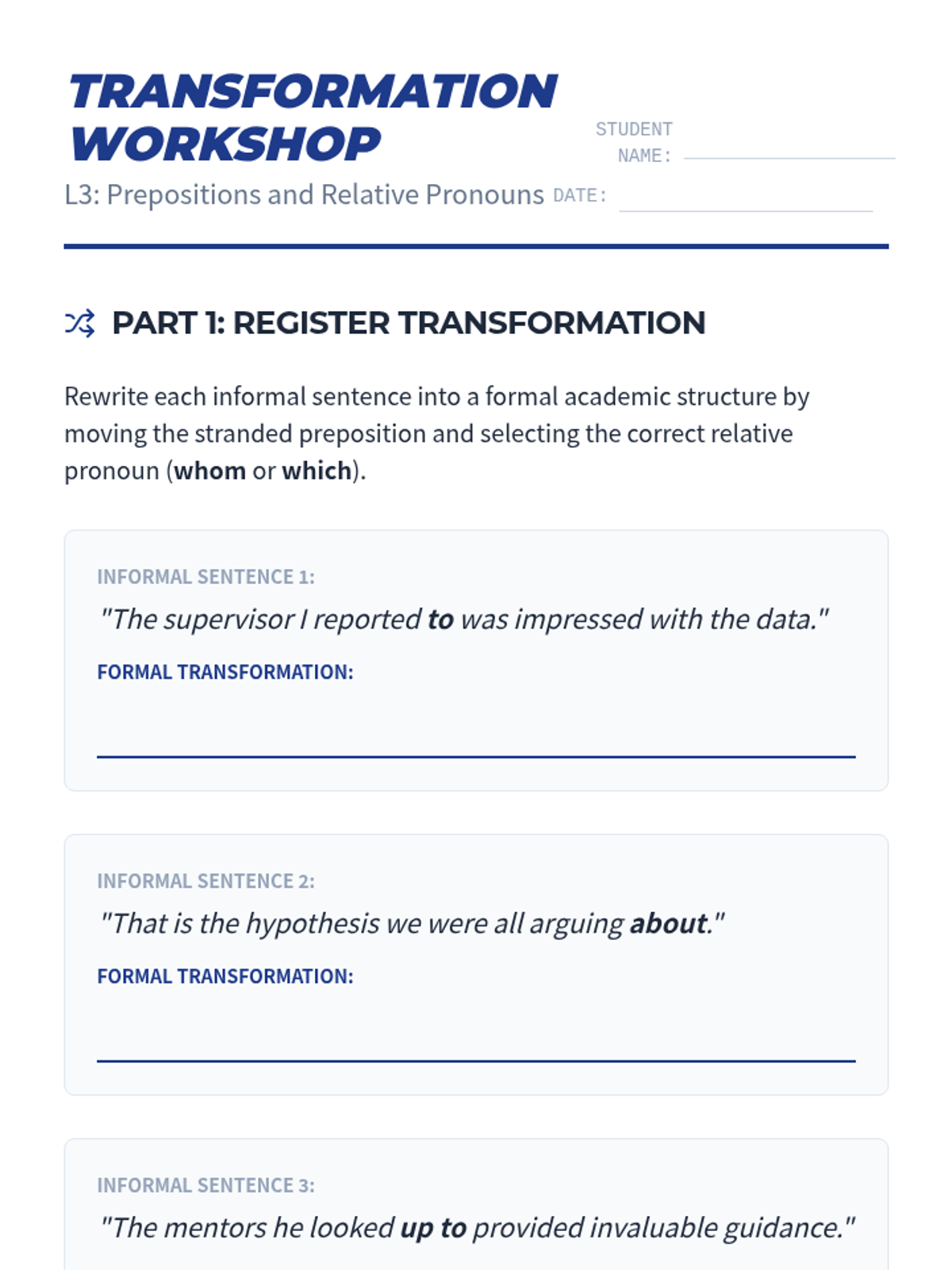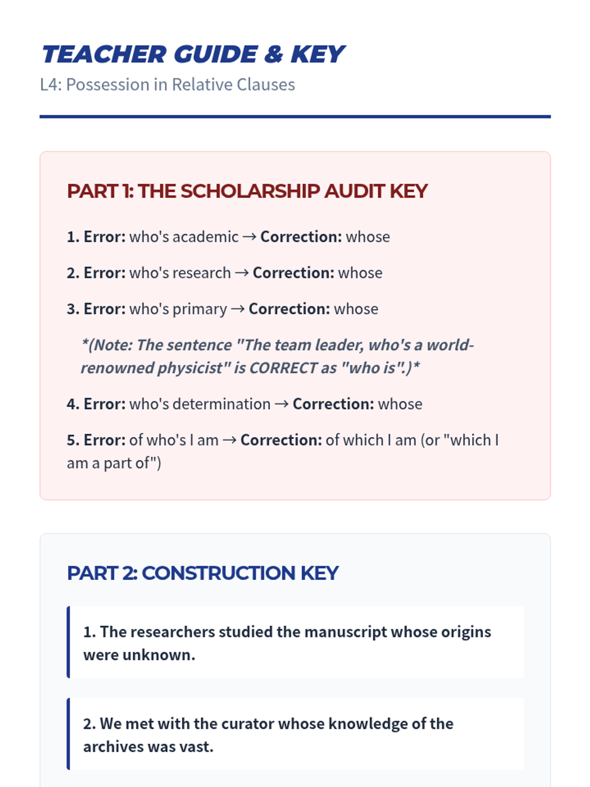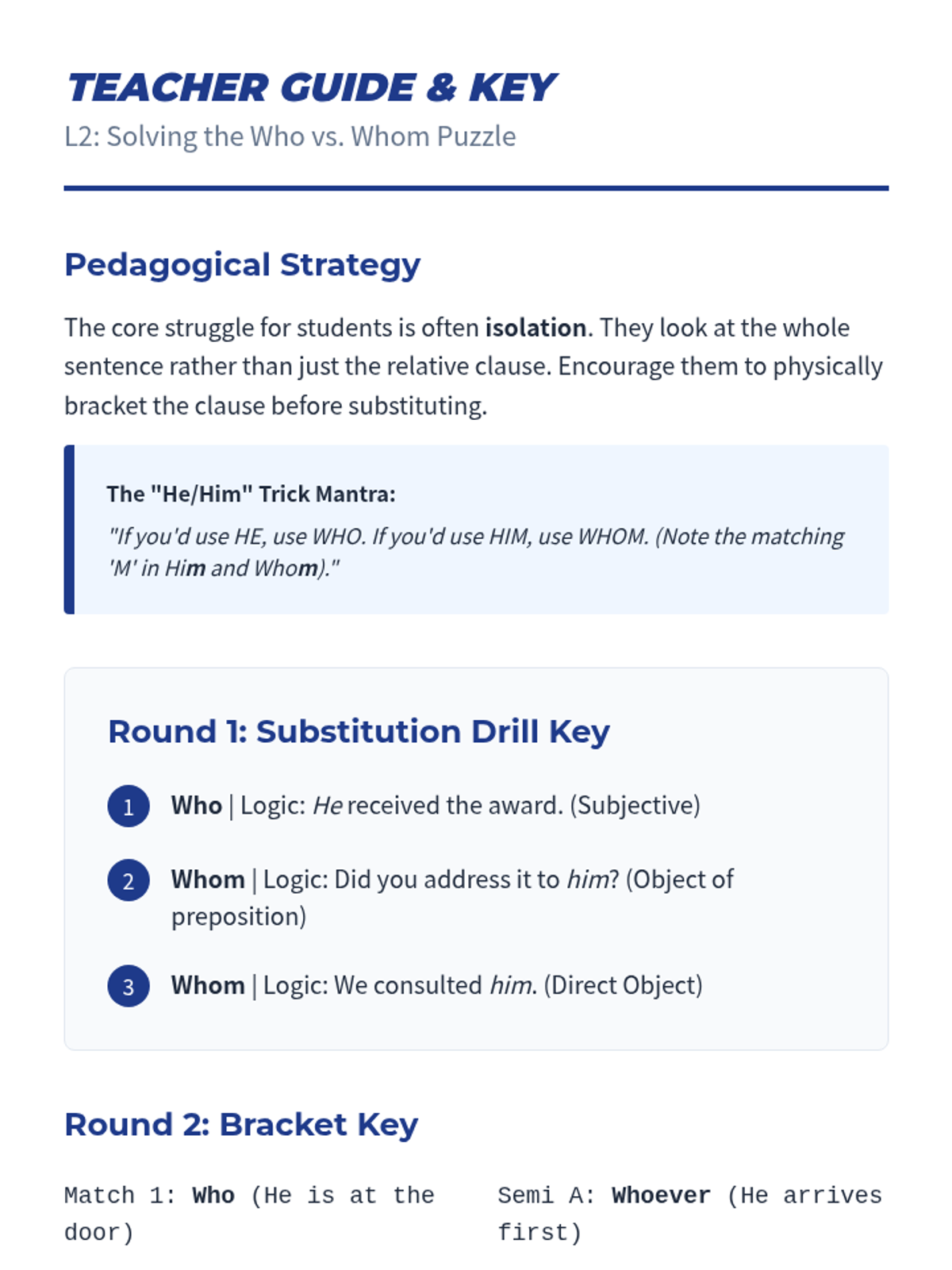 This sequence explores the mechanics and stylistic implications of relative pronouns in complex syntax for undergraduate students. It covers restrictive/non-restrictive clauses, the who/whom distinction, prepositional integration, possessive relative clauses, and stylistic omission to improve sentence variety and academic tone.