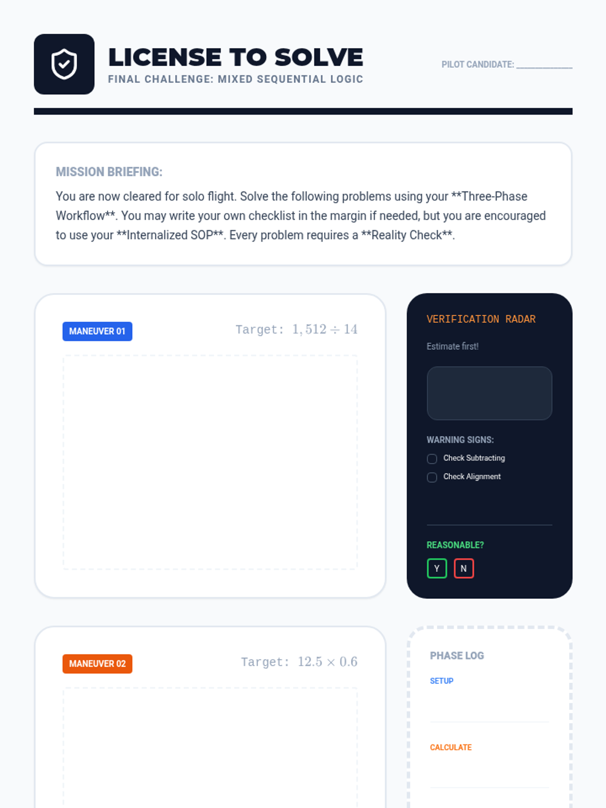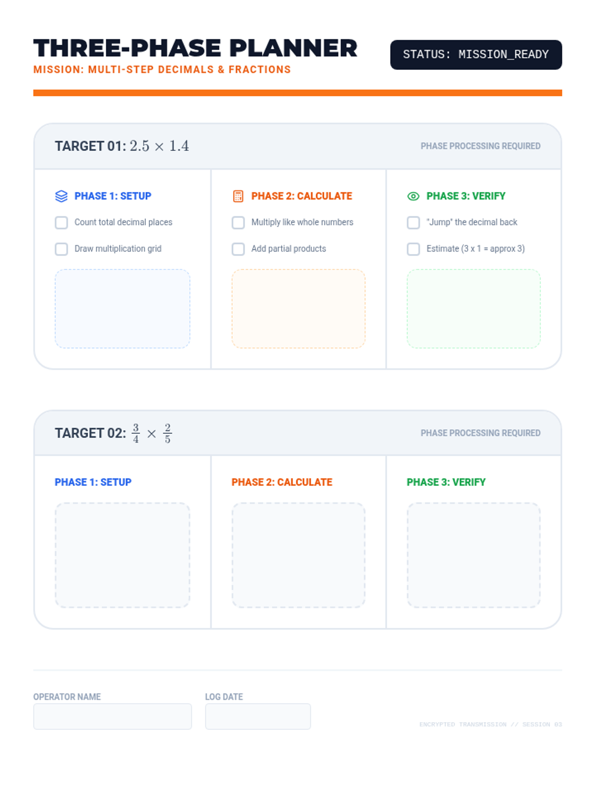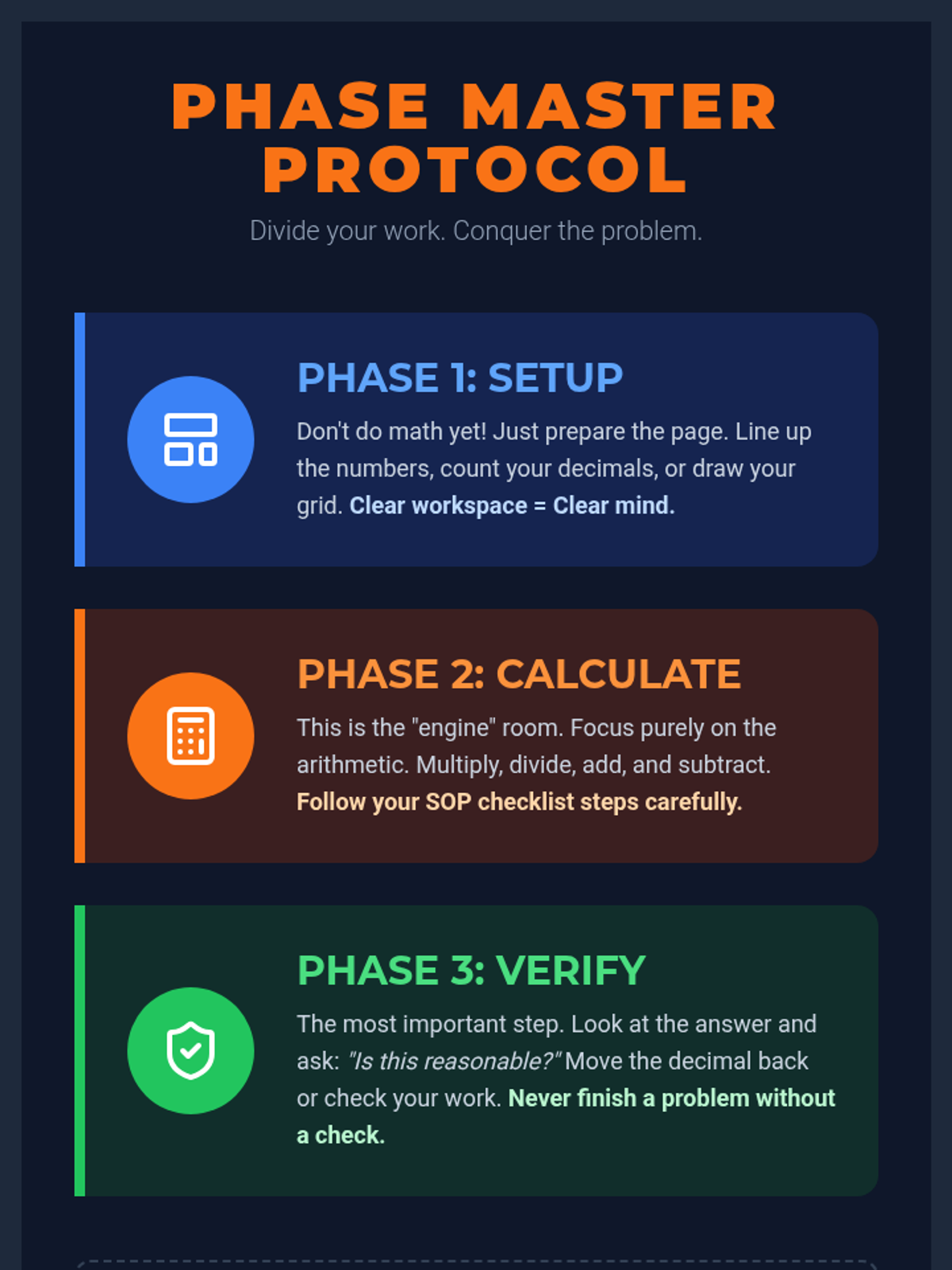 This sequence focuses on executive function support by teaching 5th-grade students to use and create personalized checklists for mathematical operations. Students will learn to manage complex workflows like long division and multi-digit multiplication by treating them as 'Standard Operating Procedures' (SOPs) to reduce cognitive load and improve accuracy.
