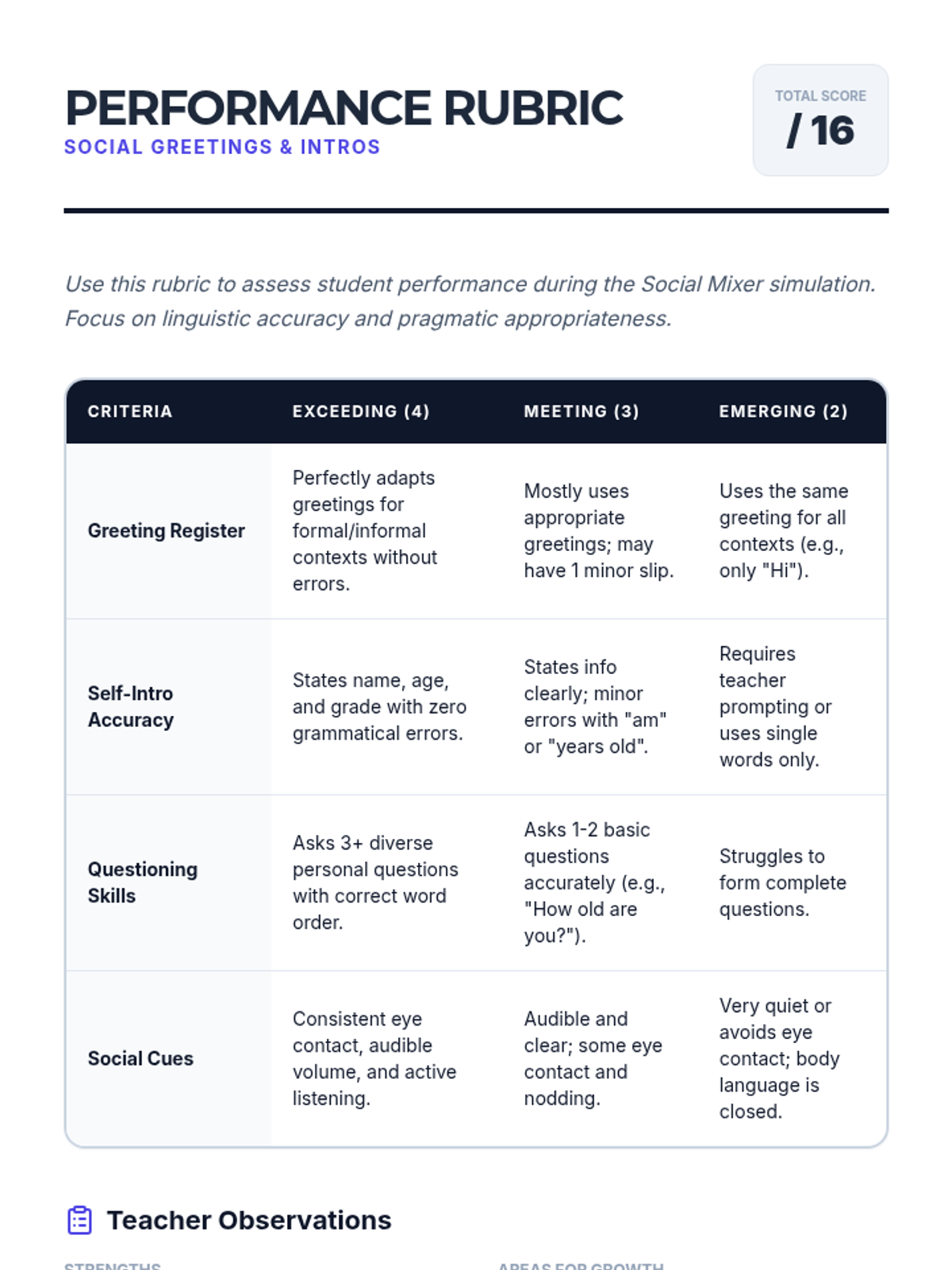 A comprehensive unit for beginner 8th-grade ELL students focused on mastering social greetings, personal introductions, and basic personal information in both formal and informal contexts.