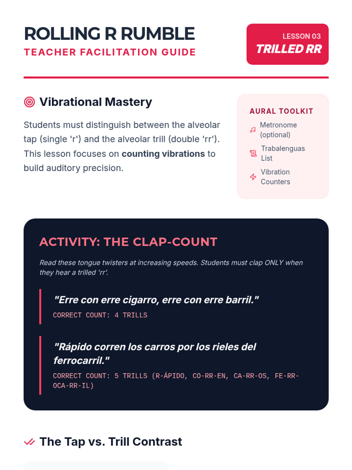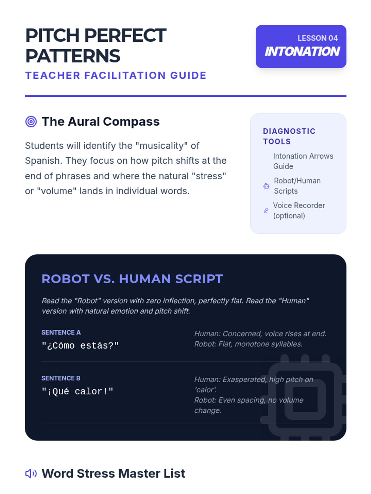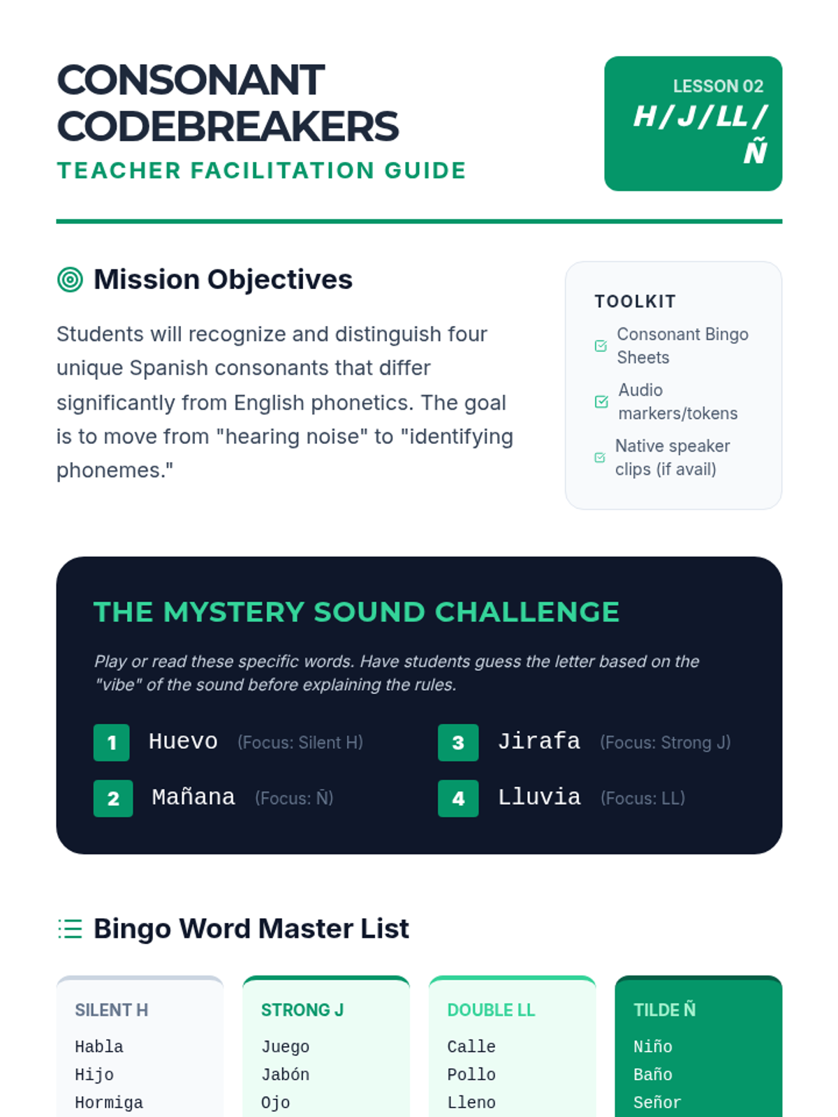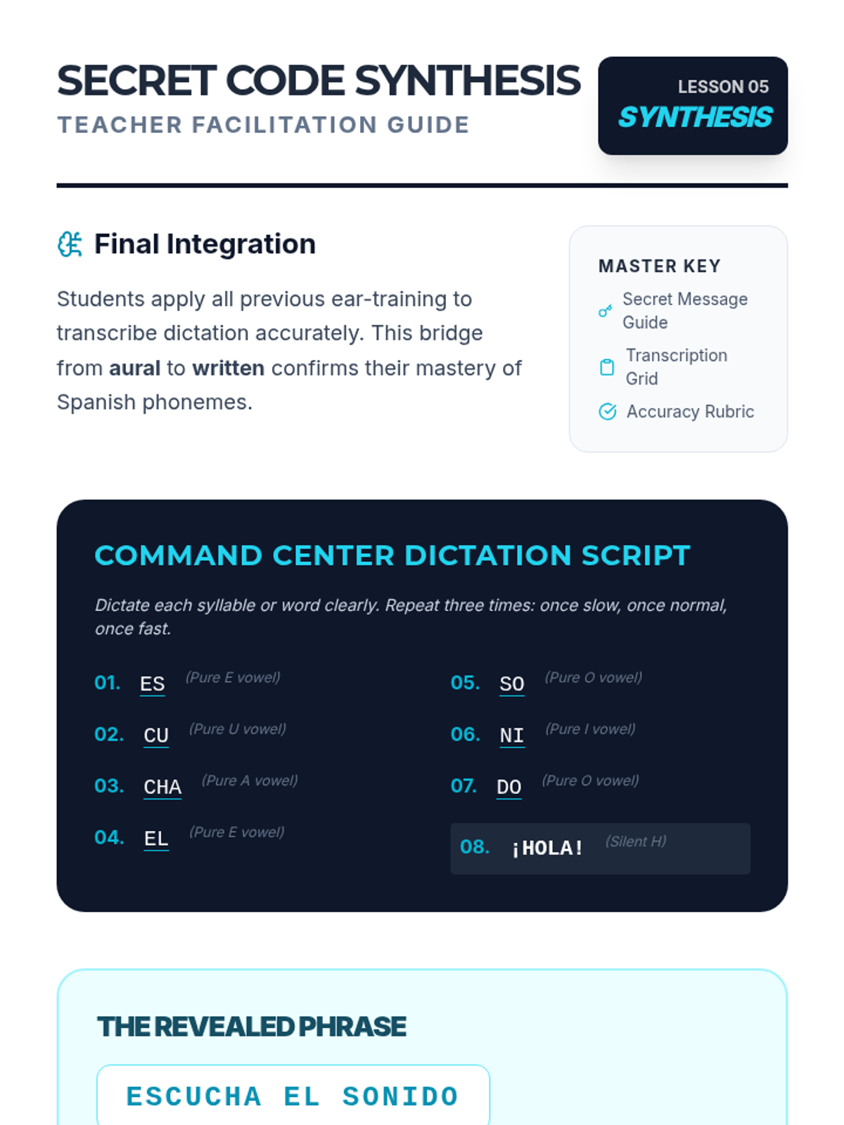 This sequence immerses 6th-grade students in the fundamental sounds of Spanish, focusing on vowels, unique consonants, the rolled 'r', and intonation patterns to build strong auditory discrimination skills.
