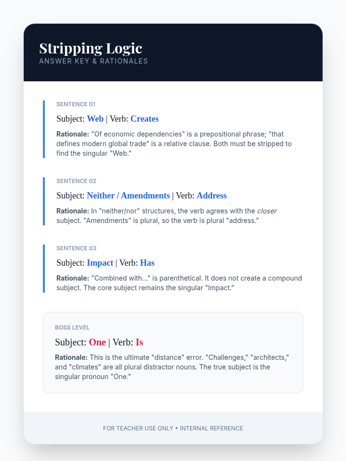 A rigorous exploration of subject-verb agreement for undergraduate writers, focusing on complex syntactic structures, intervening modifiers, and rhetorical inversion to ensure grammatical precision in academic discourse.