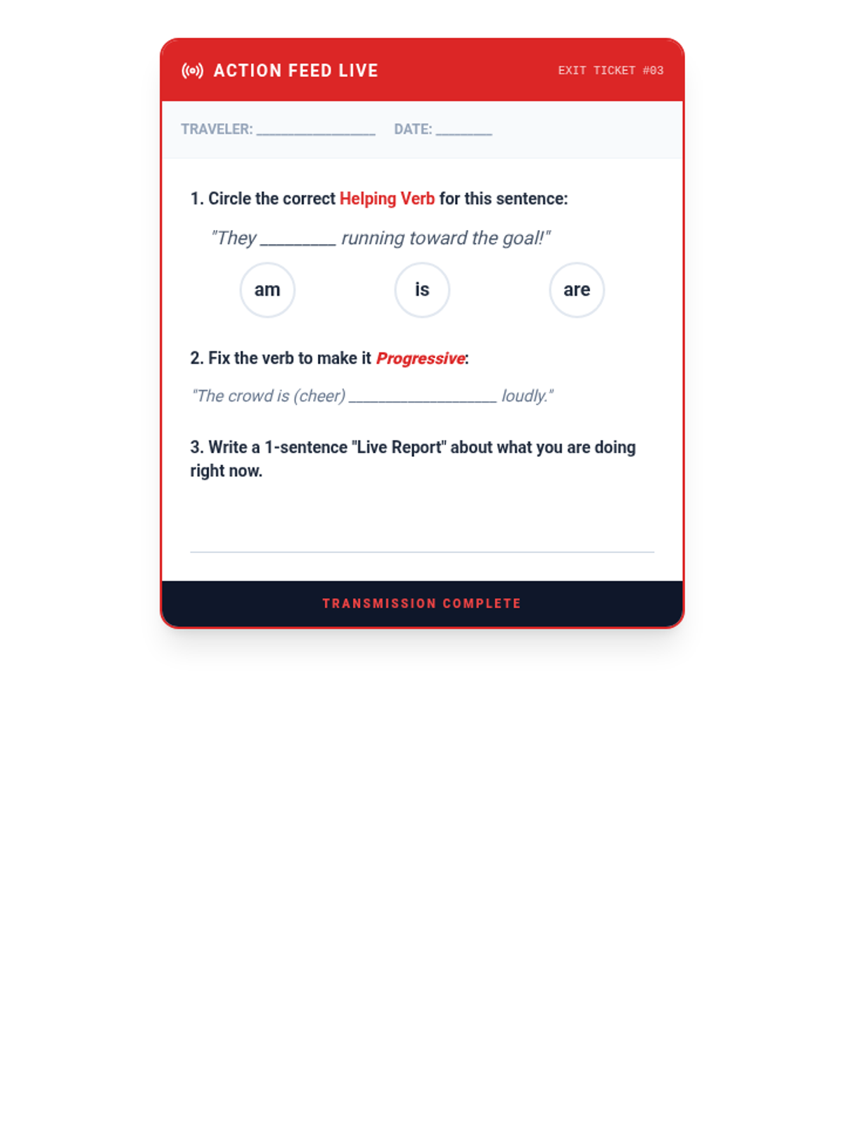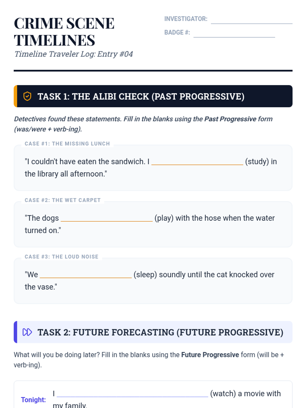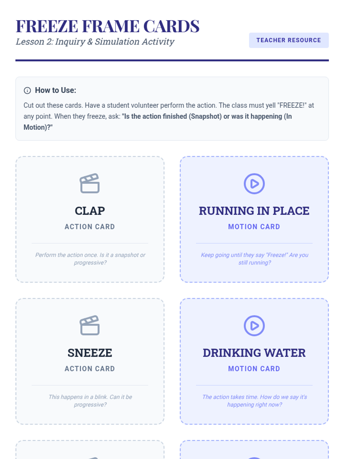 A comprehensive 4th Grade grammar sequence that explores simple and progressive verb tenses through the lens of a 'Timeline Traveler'. Students will master conjugating regular and irregular verbs across past, present, and future timelines, while understanding the nuances of ongoing actions.