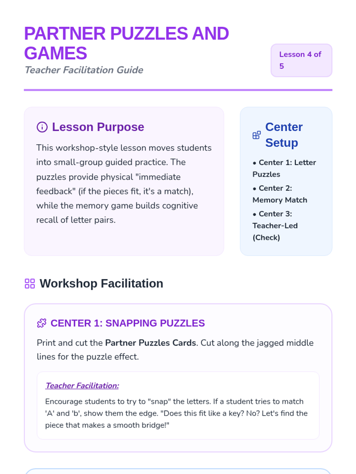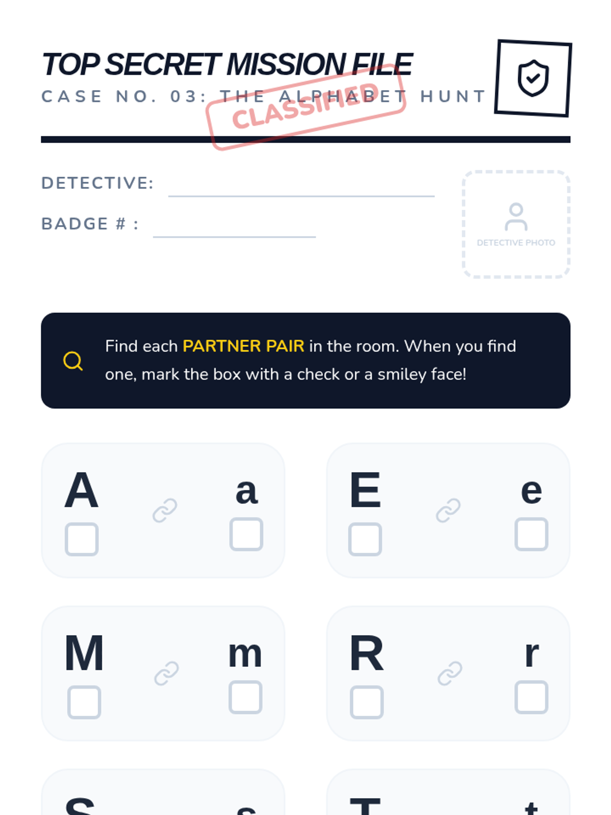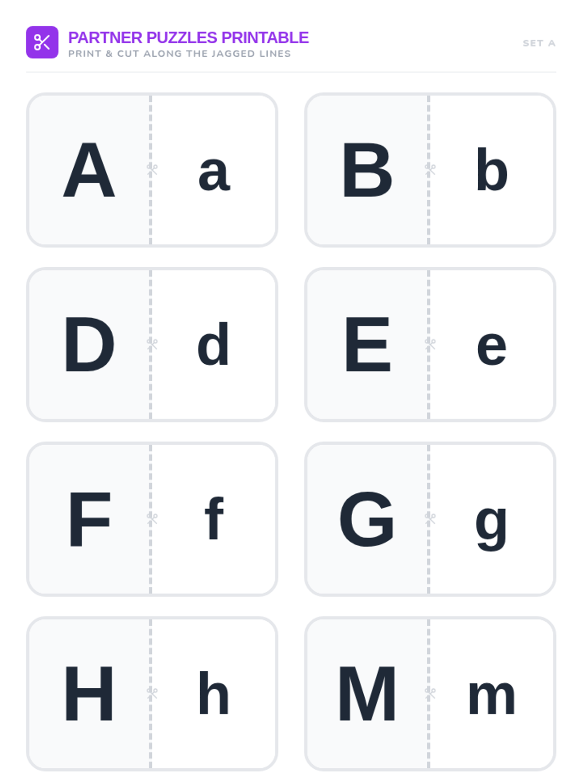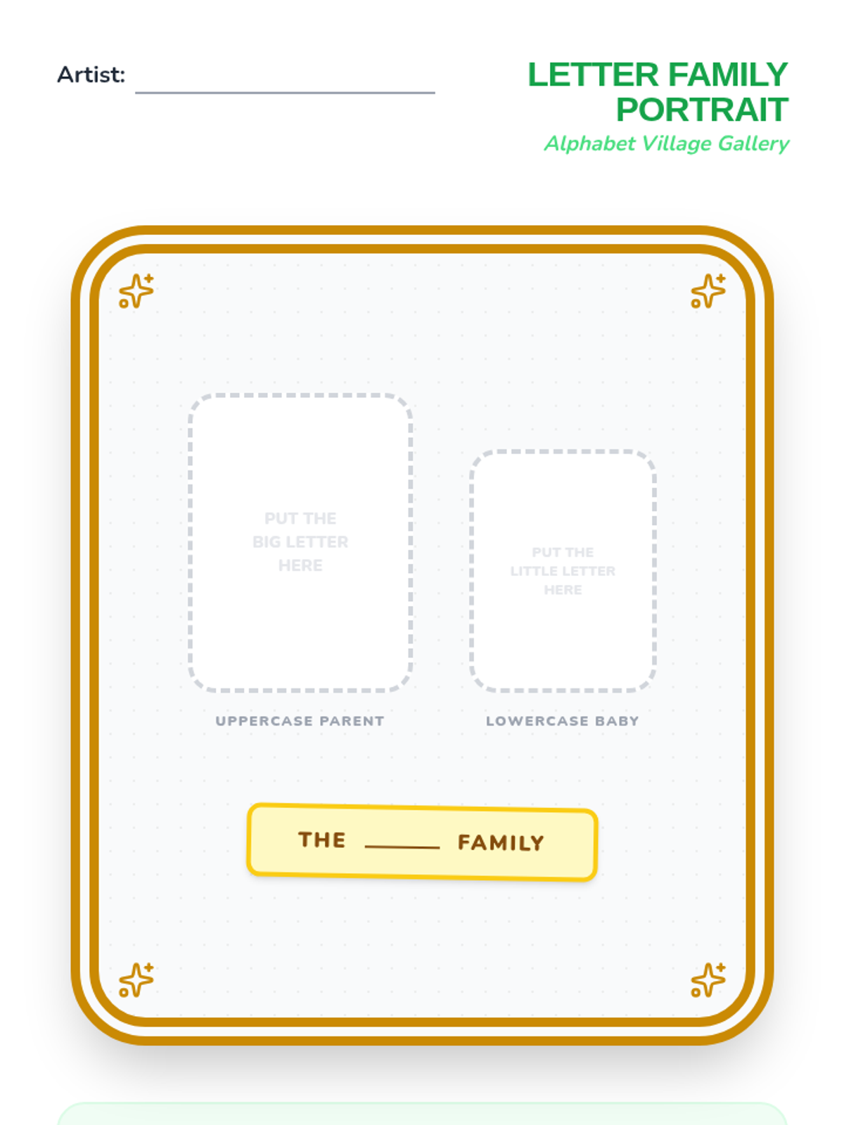 A Pre-K phonics sequence that introduces uppercase and lowercase letter pairs through playful, hands-on activities. Students progress from general big/small concepts to specific letter matching using laundry sorting, scavenger hunts, and art projects.