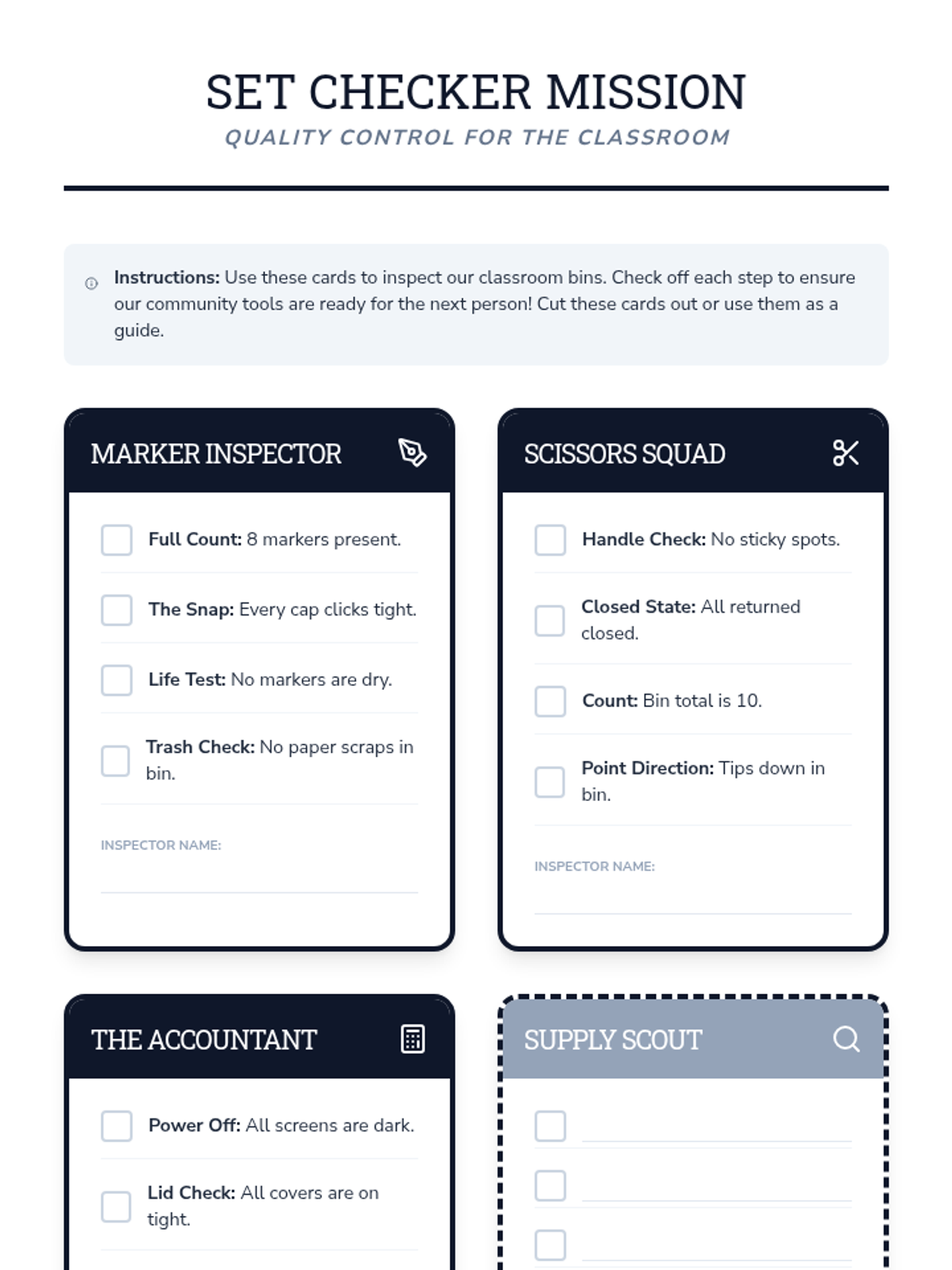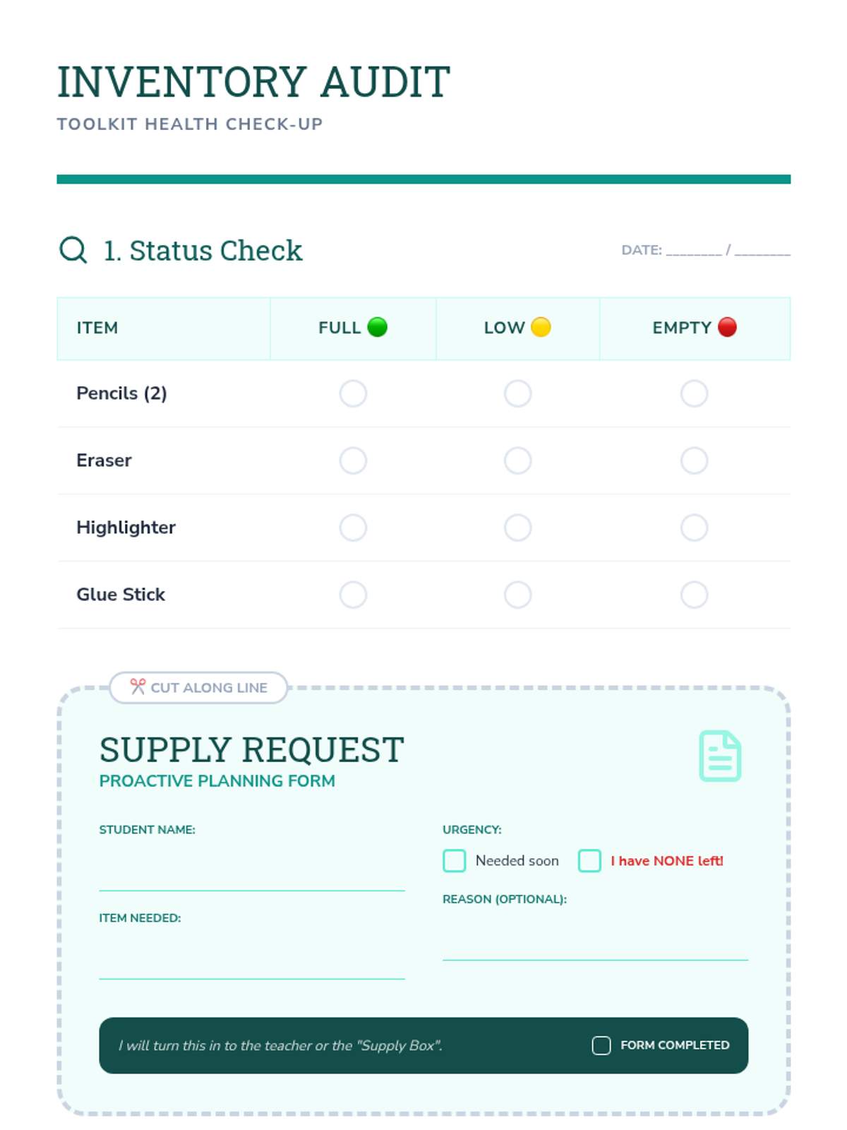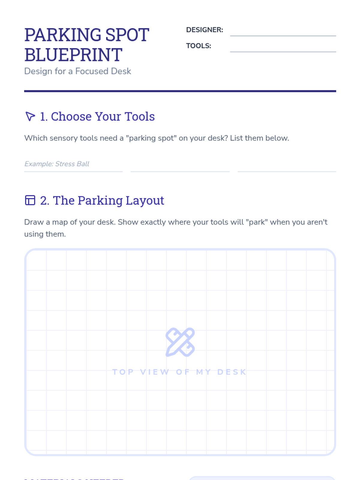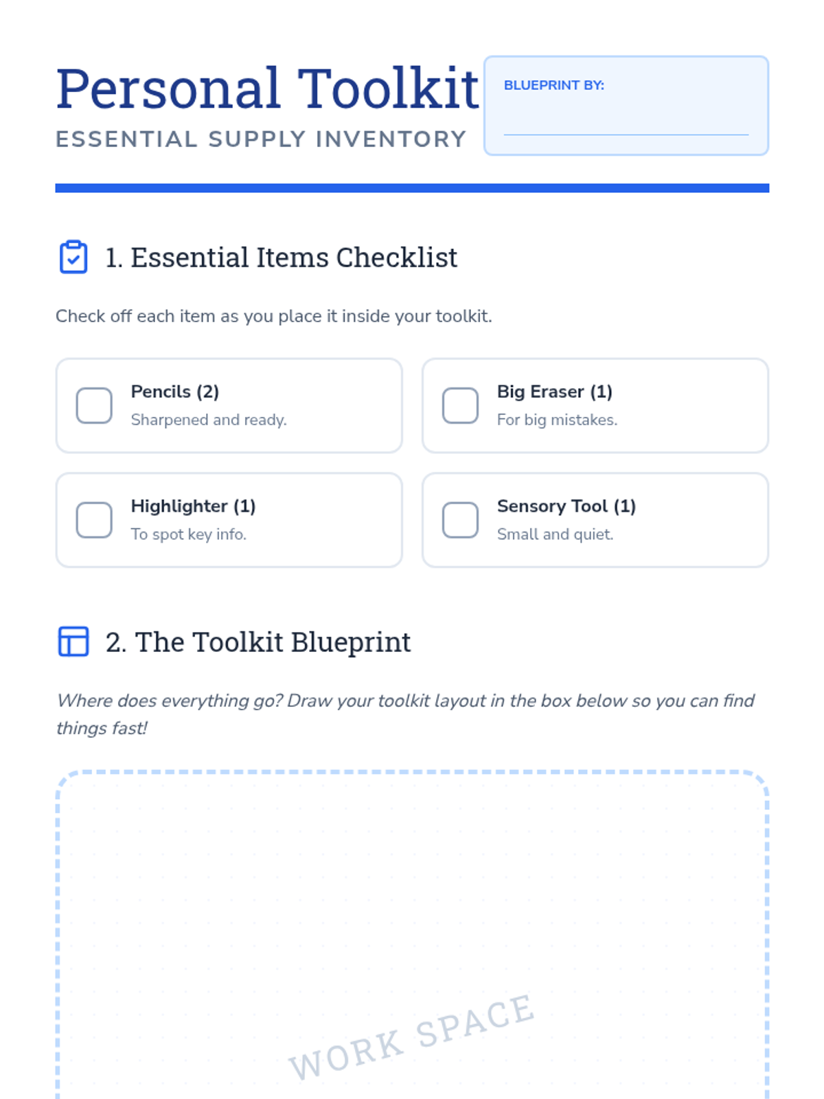 A sequence focused on teaching 5th-grade students with special needs how to manage sensory tools, personal supplies, and community materials effectively. Students move from identifying the purpose of tools to maintaining personal and shared organizational systems.